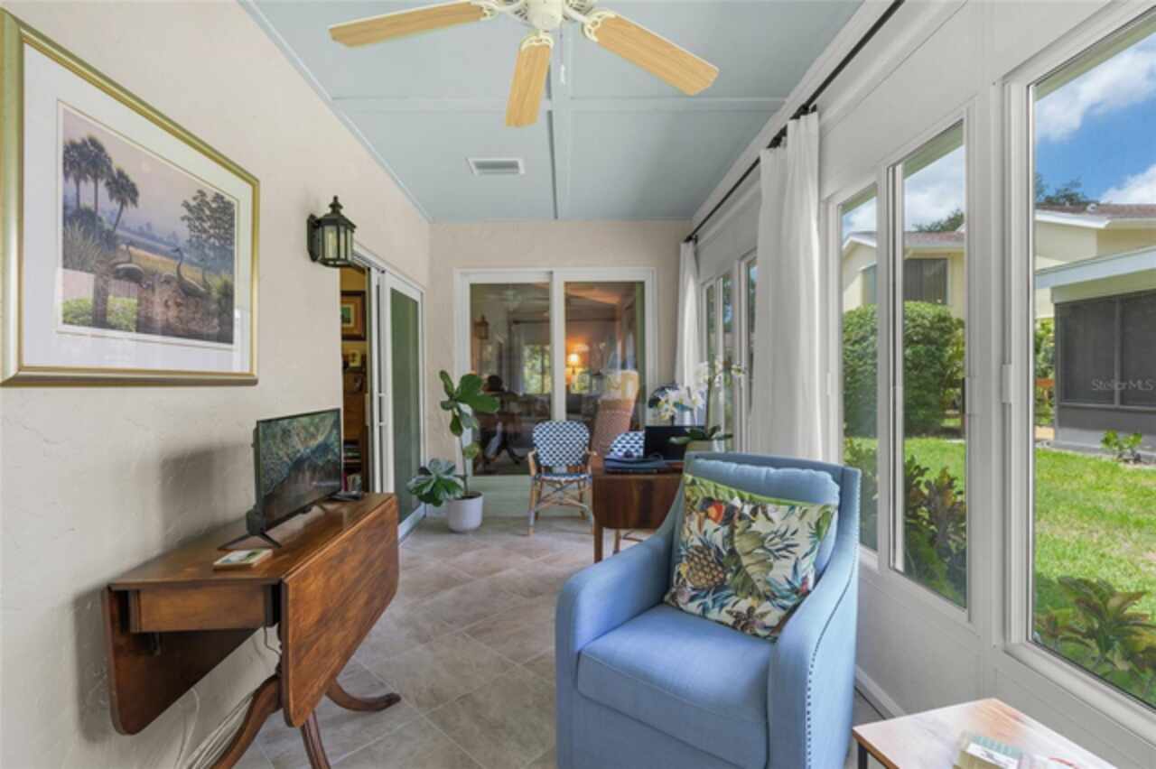 "Buy the Location, We'll Include the Villa!" Tucked away on a private cul-de-sac in the sought-after Knolls of Bent Tree, this beautifully updated and impeccably maintained 2-bedroom, 2-bath villa offers the best of peaceful Florida living. Enjoy serene views of an expansive greenbelt and gentle stream from your enclosed, air-conditioned lanai—your own private sanctuary frequented by cranes, deer, and other friendly wildlife. Inside, you’ll find a formal living and dining room, an updated eat-in kitchen, and two spacious bedrooms, including a primary suite with ensuite bath and skylight. The villa also features an attached 2-car garage and sits within a quiet, well-kept community of just 52 freestanding villas and townhomes. This is one property you truly must see to appreciate. Superb setting, thoughtful updates, and move-in ready comfort—all in one rare find. Home has PGT Impact Windows, house water lines repipe (2019), ceiling insulation upgraded to R36, new A/C (2025), new water heater (2025), exterior painted (2025), roof (2013) And MORE GREAT NEWS, the association has just reduced the quarterly fee by $150.00