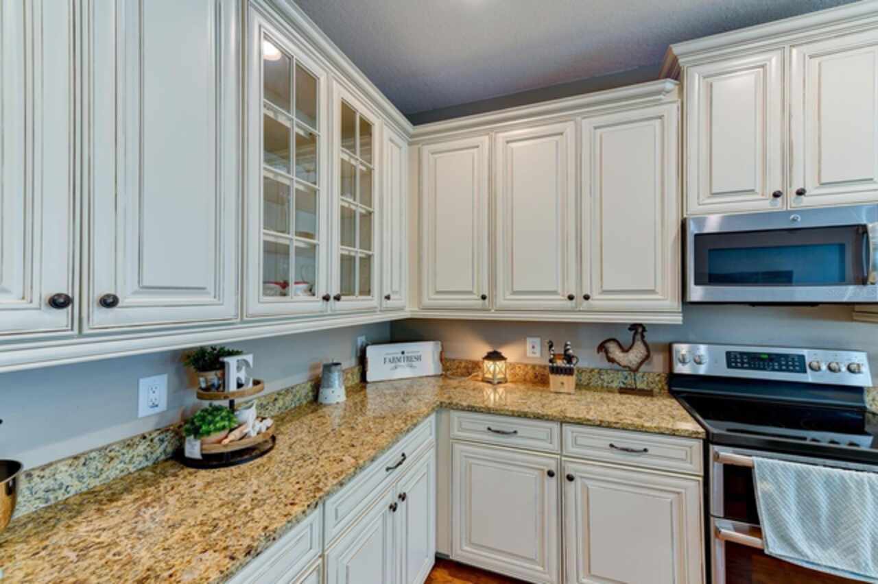 Eat-in Kitchen, High Ceilings, In Wall Pest System, Kitchen/Family Room Combo, Open Floorplan, Primary Bedroom Main Floor, Solid Surface Counters, Solid Wood Cabinets, Split Bedroom, Walk-In Closet(s)
