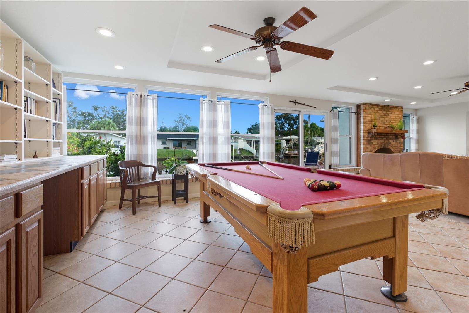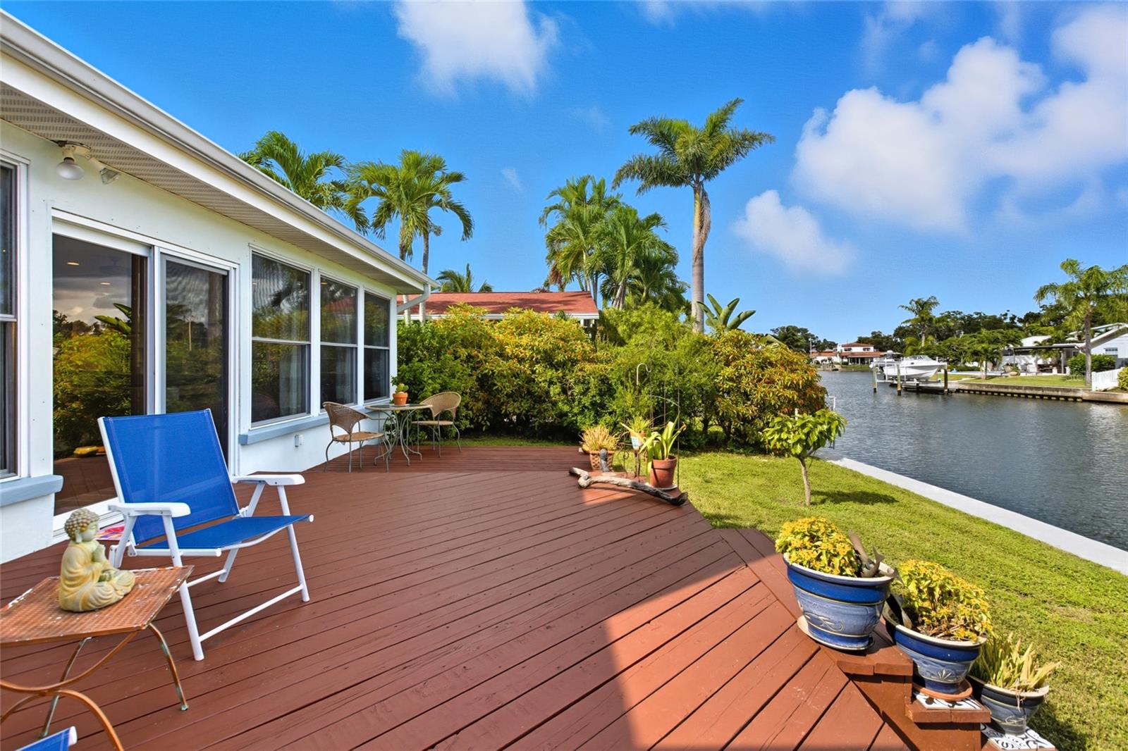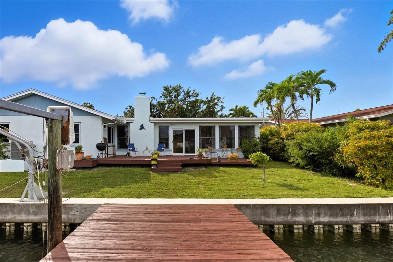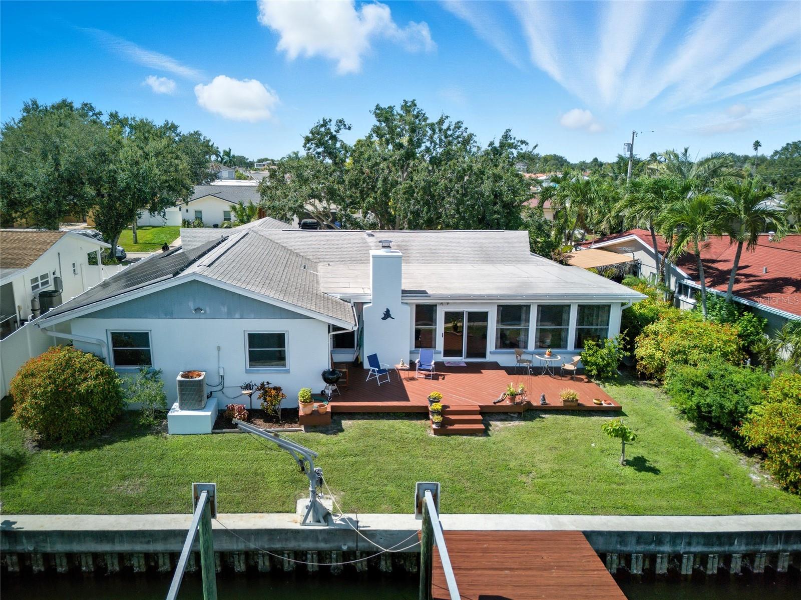 Waterfront Living in Patrician Point — Ready for Its Next Chapter Situated in the highly sought-after Patrician Point neighborhood of Northeast St. Pete, this solid block waterfront home offers 75 feet of seawall, a private dock with boat lift, and no low bridges between you and open water — bring the big boat. For over 30 years, this property has been lovingly cared for by one family and is now ready for its next owners to make it their own. Step inside to a bright, open layout with porcelain tile flooring and original terrazzo preserved underneath — still visible in one of the bedrooms and ready to be refinished to its former mid-century glory. The split floor plan includes a spacious primary suite with walk-in closets and ensuite bath, plus a guest suite with its own bath — ideal for visitors, a nanny, or extended stays. A large family room with wood-burning fireplace anchors the back of the home, opening to a generous deck overlooking the canal. And yes — the pool table conveys. Tesla solar panels are fully paid off, keeping average monthly power bills around $30. Mature landscaping and established trees add privacy and charm, and unlike many nearby waterfront pockets, the streets leading to the home don’t flood during heavy rains or high tides — a major advantage in this area. Waterfront block homes in Patrician Point under $1M are increasingly rare. This is a standout opportunity to bring your vision to life in one of St. Pete’s most desirable boating communities.