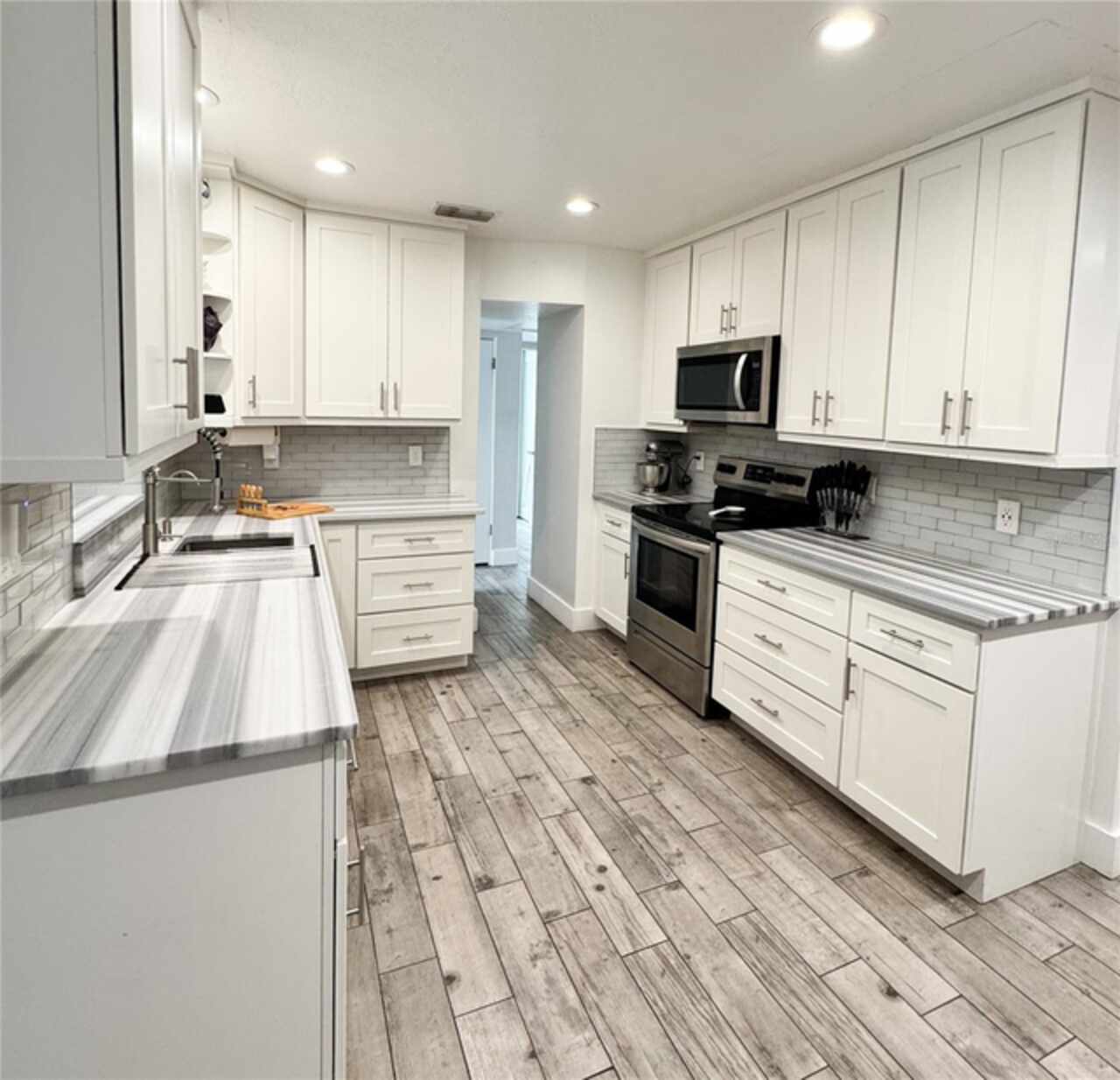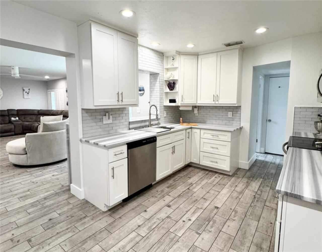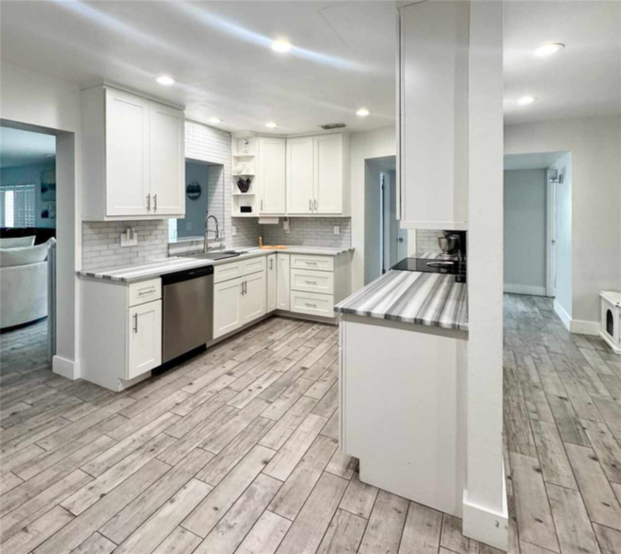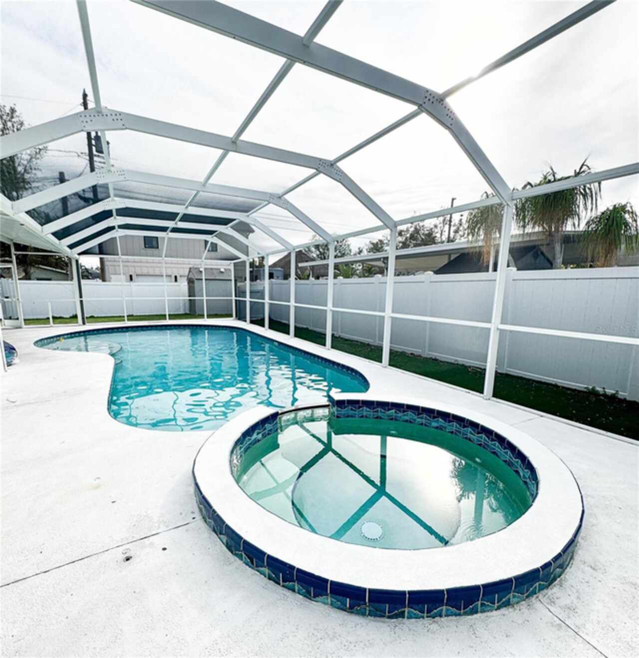 Stunning 4-Bedroom, 3-Bathroom Home with Outdoor Oasis in St. Petersburg Welcome to 428 45th Ave N, a beautifully finished 4-bedroom, 3-bathroom home situated on one of the largest lots in the neighborhood. No storm damage from the 2024 hurricanes. NEVER FLOODED. This property offers luxurious living with spacious rooms and high-end finishes throughout. The large kitchen is a standout feature, boasting stunning marble countertops, top-tier appliances, and a built-in wine fridge. Two of the bedrooms come with their own attached bathrooms for added privacy, while the hallway bathroom offers a relaxing jacuzzi tub with a built-in heater to keep the water warm during your bath. The master bathroom will take your breath away with its extra-large 5x5 shower, dual shower heads, and an oversized soaking tub — perfect for unwinding after a long day. Stylish sliding barn doors add a touch of charm to the interior, frequently complimented by guests. Step outside into your private outdoor paradise! The screened-in lanai, which has been completely rescreened and secured with new bolts, features a large heated swimming pool with an attached spa and a waterfall feature, creating a tranquil, resort-style atmosphere. The outdoor living space is already set up for entertainment, with space for a TV and ample seating, while the built-in outdoor kitchen with grill makes al fresco dining a breeze. The low-maintenance turf yard, palm trees, and shed complete the perfect backyard retreat. Inside, the living room and master bedroom have recessed lighting with voice-controlled dimming and color-changing features for the ultimate convenience and ambiance. The smart thermostat and tankless water heater are also controllable wirelessly, offering ease of use and peace of mind. Additional highlights include newer roof (2021) with hurricane clips and straps, recently rescreened and resecured lanai, and no damages from major hurricanes — including NO Flooding or Power Outages during Hurricanes. The location is prime, with easy access to shopping, dining, and entertainment options all within walking distance. This home truly combines modern luxury with outdoor living at its finest. Don’t miss the chance to make this beautiful property yours!
