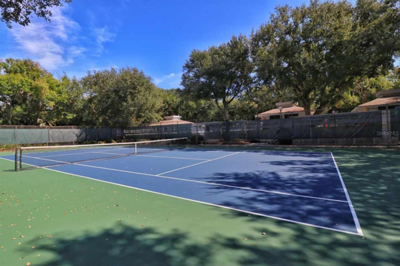 Pickleball court, three community pools, tennis, clubhouse, fitness center with sauna.