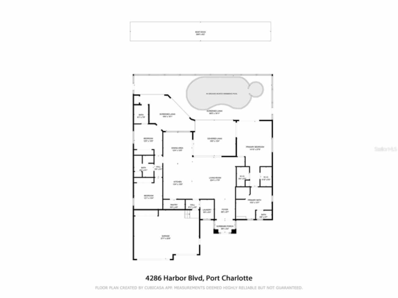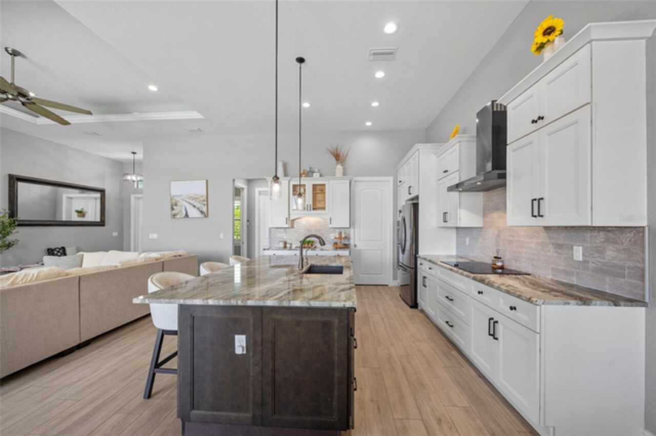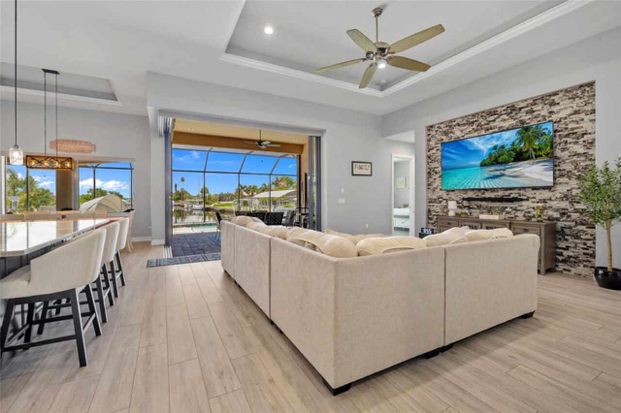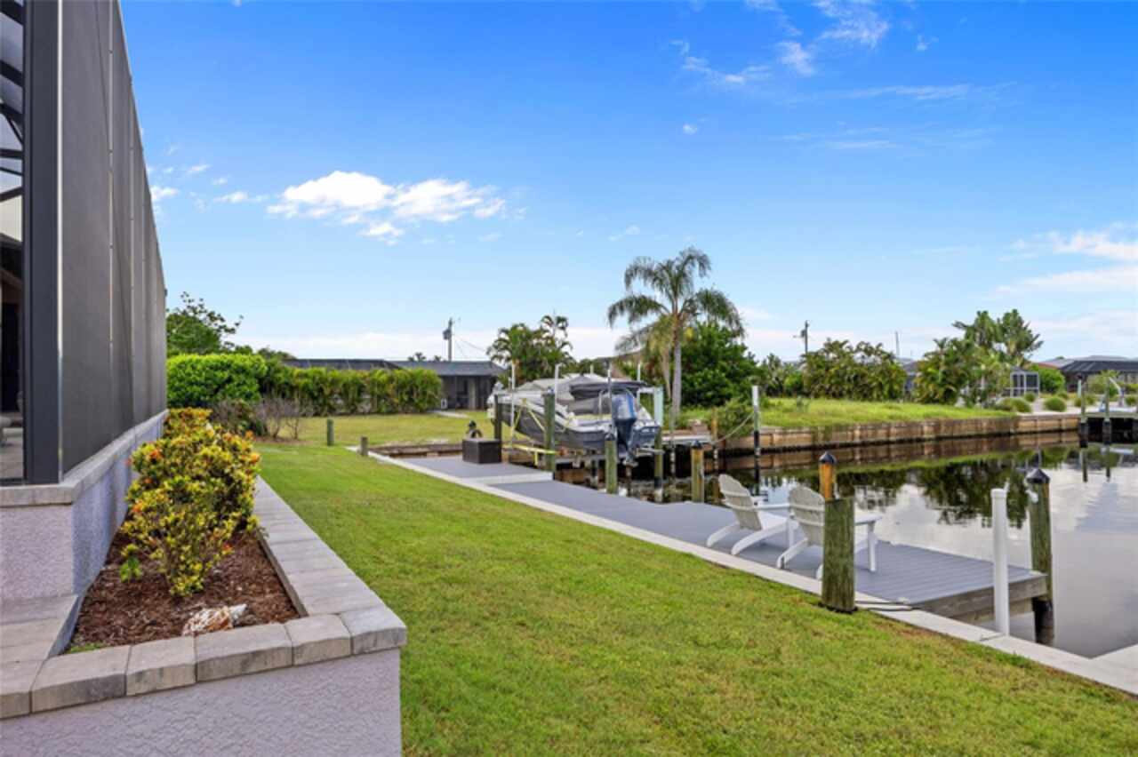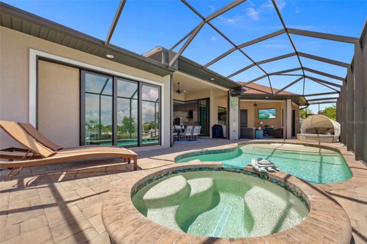 QUICK SAILBOAT ACCESS! Exceptional 3-bedroom, 2.5-bath, 3-car garage waterfront pool home with 10-minute access to Charlotte Harbor, leading to the Gulf! Boating enthusiasts will appreciate the oversized lot offering 120 ft of waterfrontage with an extended 60' composite dock equipped with water and electric, jet ski entry, 8, 000 lb. boat lift and new concrete seawall in 2016. This stunning home was built in 2021 and highlights an open floor plan adorned with contemporary décor and lighting, high ceilings with tray accents, and tile flooring throughout. A chef's dream, the kitchen is equipped with custom cabinetry, granite countertops, a stylish backsplash, stainless appliances, a cooktop with an exhaust hood, and a large breakfast bar perfect for casual dining. The spacious primary suite is a sanctuary of its own, featuring a pocket slider to the lanai, dual walk-in closets, and a luxurious private bath with dual sinks, a soaking tub, and a Roman shower with spa jets. The junior suite offers a private bath leading directly to the pool, ensuring convenience and privacy for guests. Indoor-outdoor living is at its finest with a zero slider that seamlessly connects to the covered lanai, showcasing breathtaking long water views. Your private outdoor space includes a screened heated pool and spa with beach entry, hookups for water and gas to add outdoor kitchen and southeastern exposure so guests from the north can enjoy an abundance of Florida sunshine. Additional features include plantation shutters, impact windows, an inside laundry room with Samsung front load washer and dryer, an oversized paver driveway, a generous fenced side yard, perfect for your furry friends to roam and lush tropical landscaping that enhances the home's curb appeal. Great location close to Port Charlotte Beach Park, Sunseeker Resort, and downtown historic Punta Gorda, you'll enjoy easy access to fine dining, shopping, beautiful parks, award-winning fishing and boating, community events, and entertainment. Don’t miss this opportunity! Schedule your private showing today!