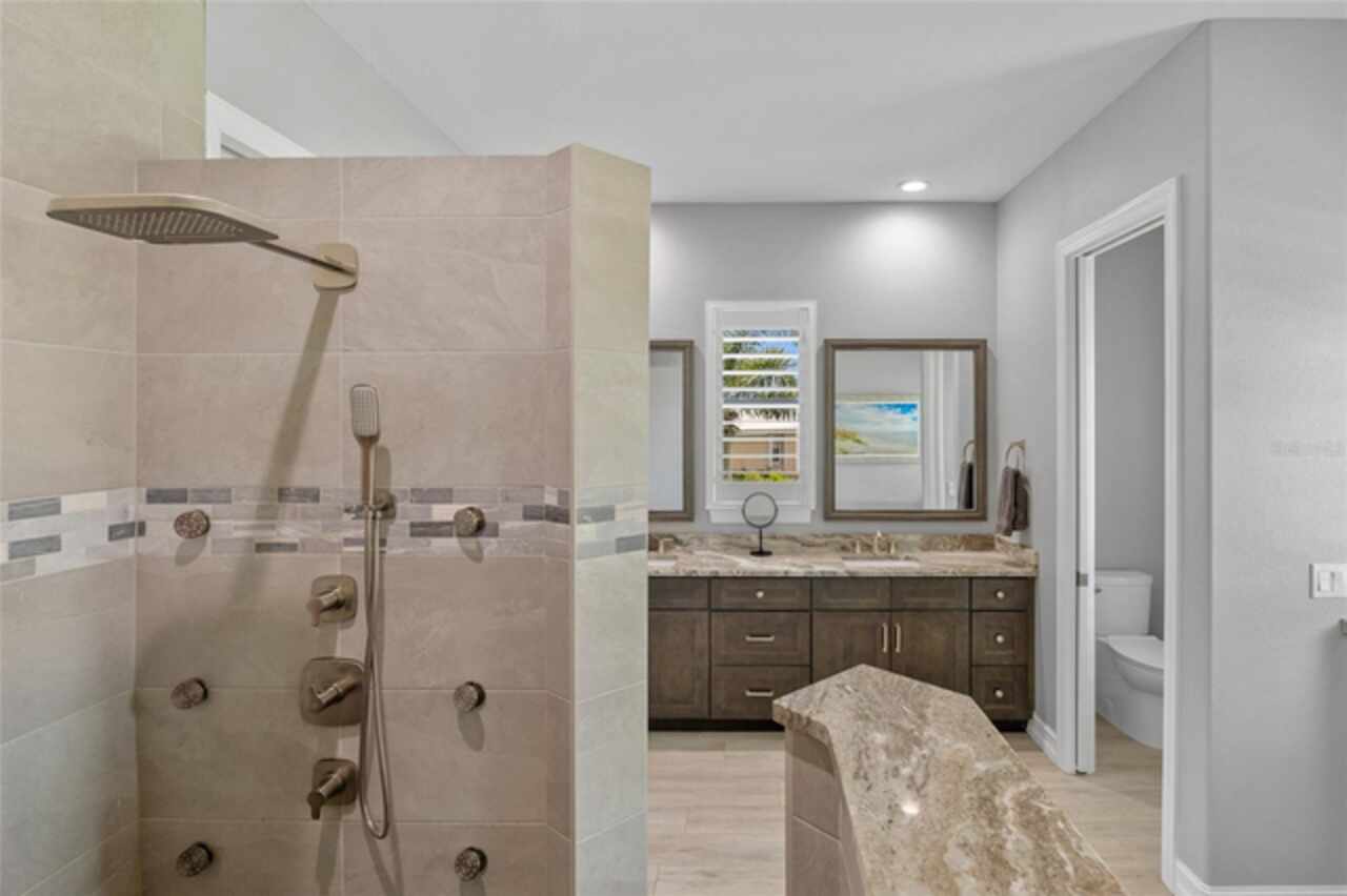 Ceiling Fans(s), High Ceilings, Kitchen/Family Room Combo, Open Floorplan, Solid Surface Counters, Split Bedroom, Stone Counters, Thermostat, Tray Ceiling(s), Walk-In Closet(s), Window Treatments