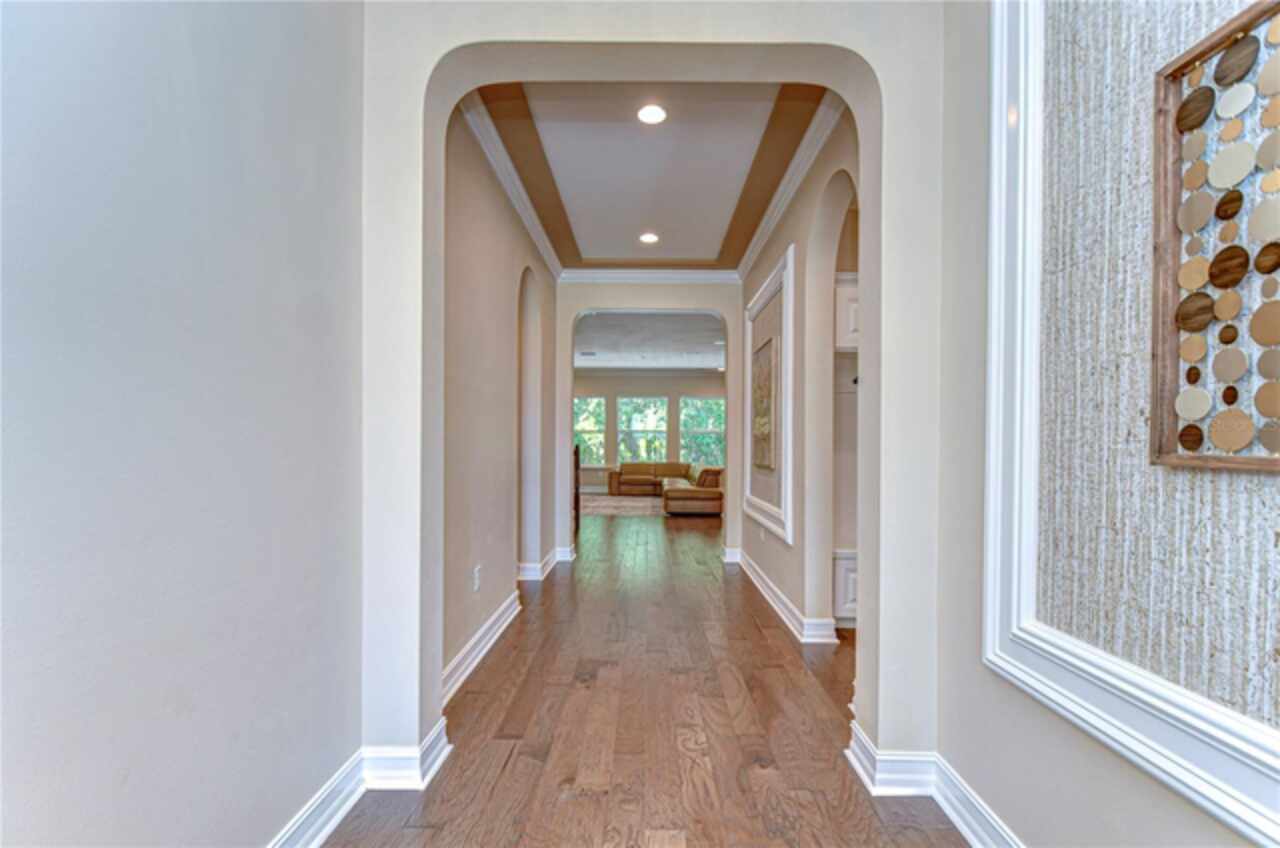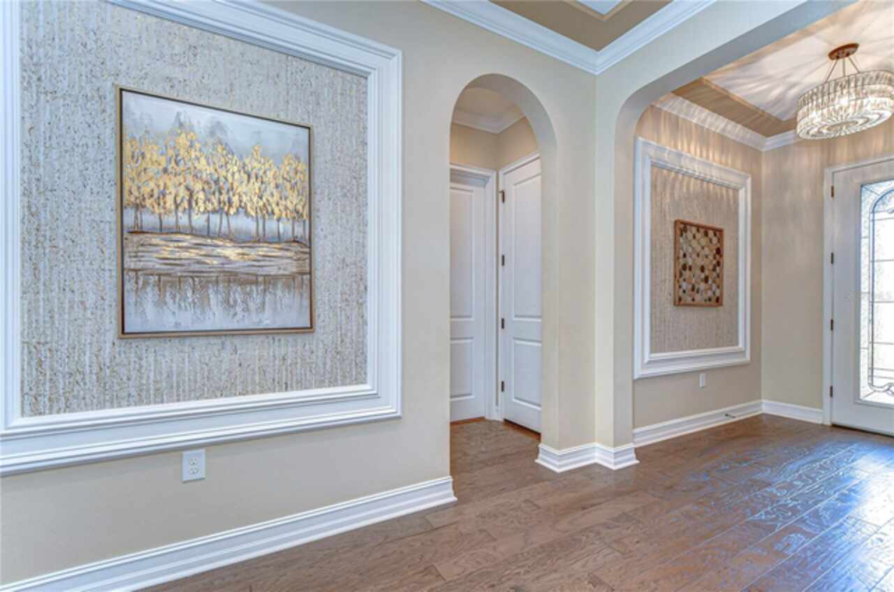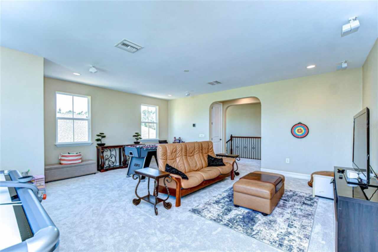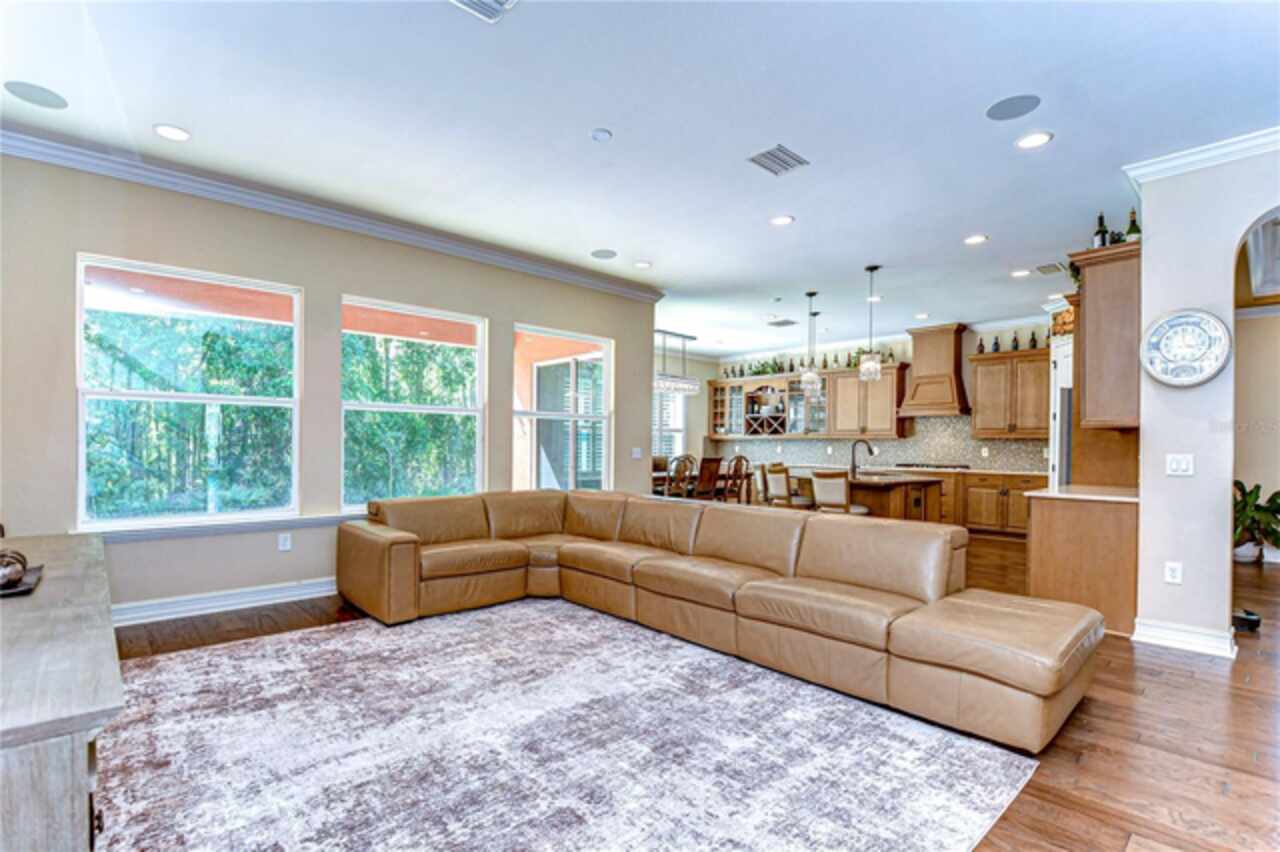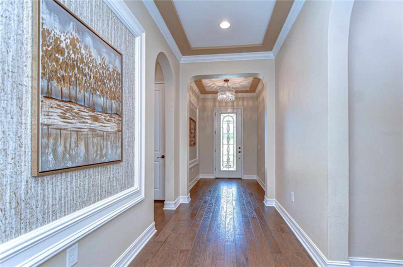 Exceptional Home in Estancia at Wiregrass Ranch – Upscale Living in the Gated Village of Tavira! Discover refined elegance in this exquisite Spanish/Mediterranean-style residence located in the highly sought-after GATED village of Tavira within Estancia at Wiregrass Ranch. Showcasing exceptional architectural details throughout, this beautifully upgraded two-story home offers 3, 274 heated sq ft of refined living space, featuring 4 bedrooms, 3 baths, and a thoughtfully designed 3-car split garage. Designed to be your private sanctuary, this home combines elegance, comfort, and modern convenience in one of Wesley Chapel’s premier communities. From the moment you arrive, the lush lawn and manicured landscaping set the tone for what’s inside. The home’s elegant elevation, complete with a maple ridge barrel tile roof, weathered brick caramel mountain accents, and stunning portico entrance creates striking curb appeal. Situated on a conservation lot, it offers both privacy and stunning natural views. The exterior features Clopay faux wood three-car garage doors, finished in Sierra Redwood with Rookwood Clay trim, beautifully matching the front entry door. Inside, a neutral two-tone color palette flows throughout. Step through the front door and be welcomed into a warm foyer, accented by two custom wood photo feature walls, which opens into a spacious great room with open-concept living, ideal for seamless indoor-outdoor entertaining. Plantation shutters grace the windows on the first floor, adding elegance and light control. A formal dining room features custom ceiling woodwork, elevating the space with architectural interest. The chef’s kitchen is the heart of the home, designed for both style and function. It boasts a striking half-moon quartz island, three designer pendant lights, and high-end stainless appliances, including a 5-burner gas cooktop and built-in oven. A walk-in pantry, extended cabinetry, and a beautifully tiled backsplash complete this culinary space. The great room is wired for 5.1 surround sound and opens through sliding glass doors to an extended brick paver lanai—ideal for outdoor relaxation and entertaining. The primary bedroom suite is a tranquil retreat with tray ceilings, recessed lighting, and serene views of the conservation area. The luxurious primary bath offers a Royal Whirlpool bathtub, double vanities, and a frameless glass shower with an upgraded rain shower head—a true spa-like experience. Upstairs, a generous bonus room provides flexible living space—perfect for a media room, playroom, or home gym—and includes a designated walk in storage closet. Estancia at Wiregrass Ranch enhances your lifestyle with one of the most beautiful amenity centers in the area. Residents enjoy access to a 7, 000 sq ft clubhouse featuring a resort-style pool, entertainment and conference rooms, tennis and basketball courts, dog park, playground, walking trails, and a full calendar of community events and activities. Ideally located just minutes from top-rated schools, shopping, dining, entertainment, and medical centers, with quick access to I-75—making for an easy 30-minute commute to downtown Tampa or Tampa International Airport. Don’t miss this rare opportunity to own a luxury home in one of the area’s most sought-after communities. Schedule your private showing today!