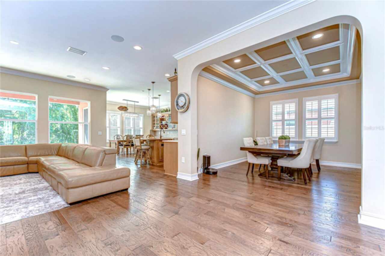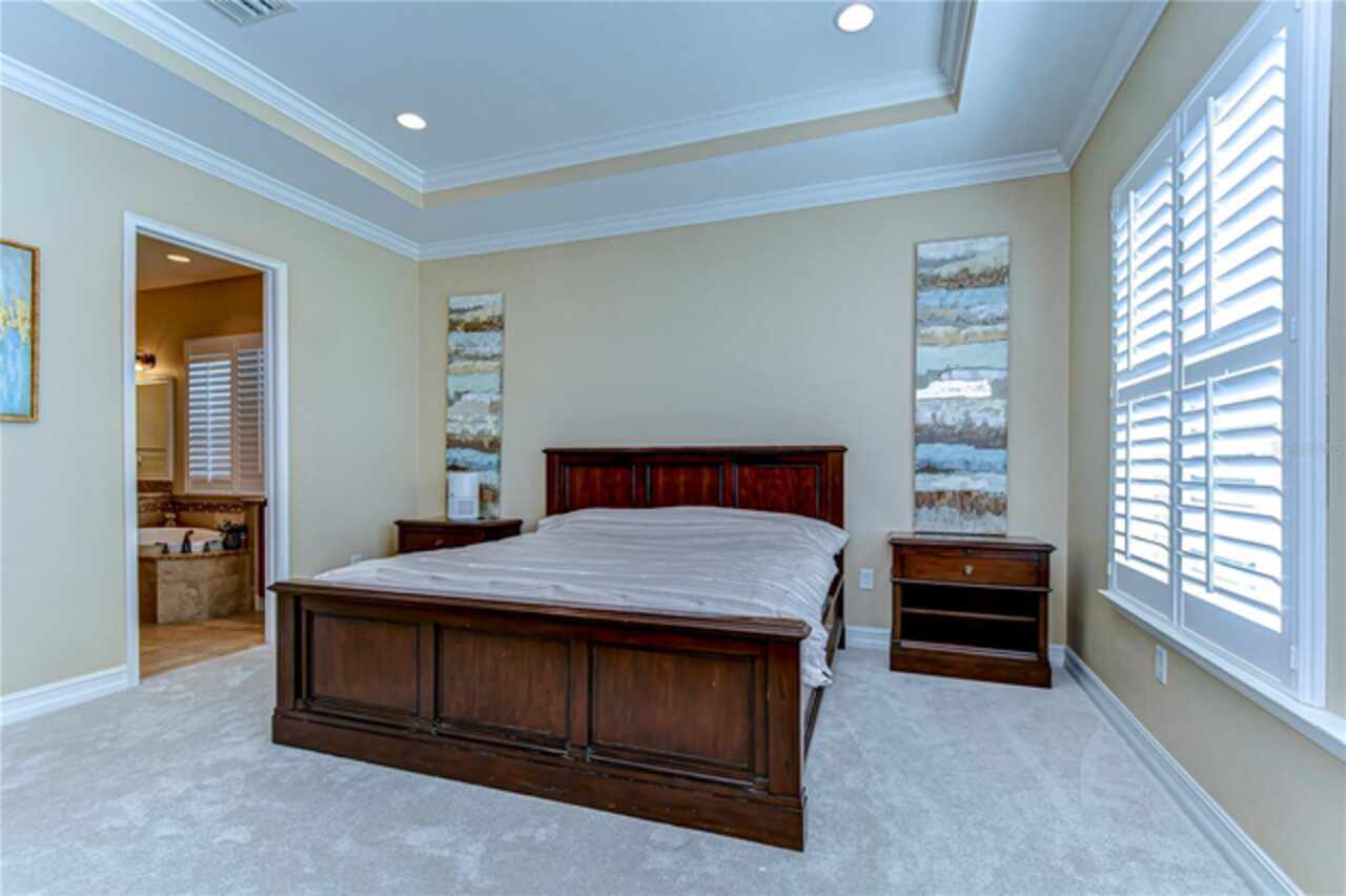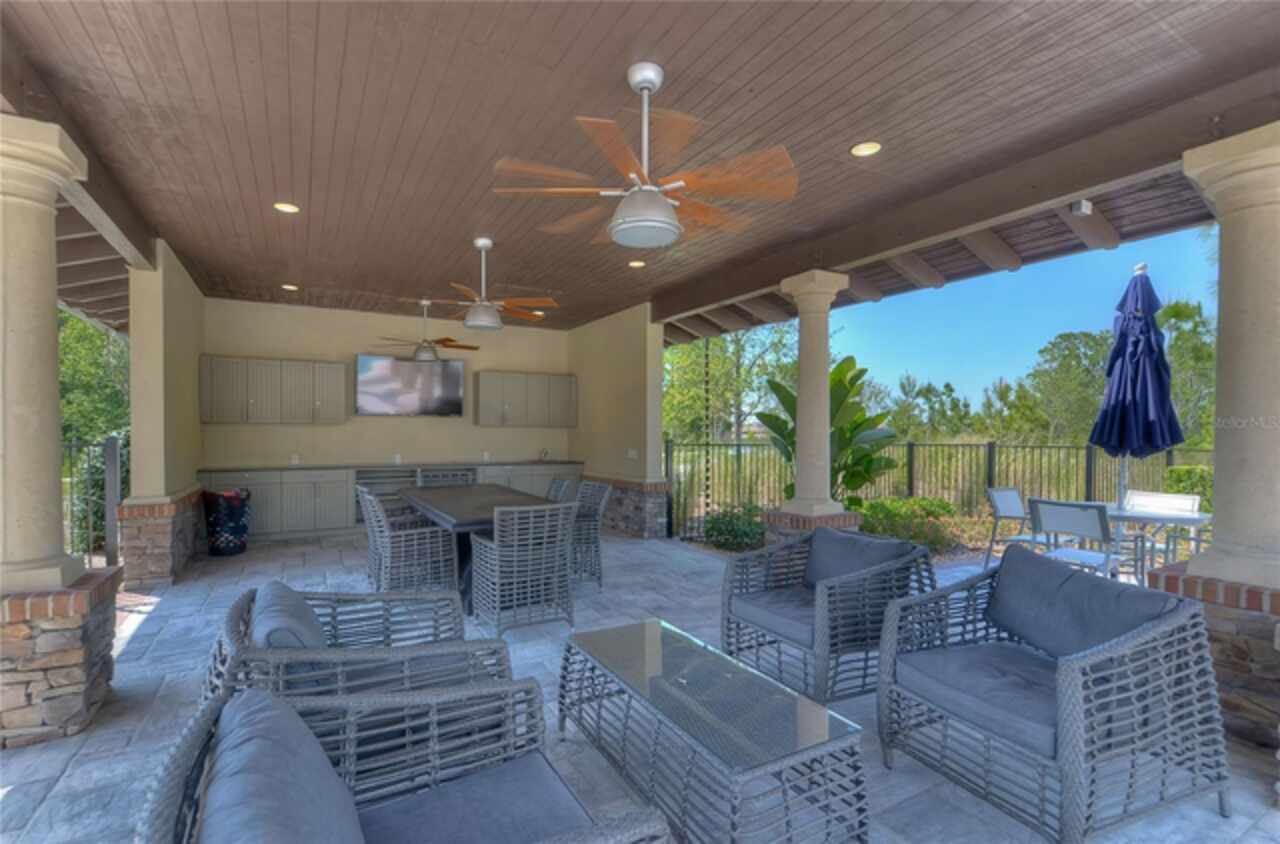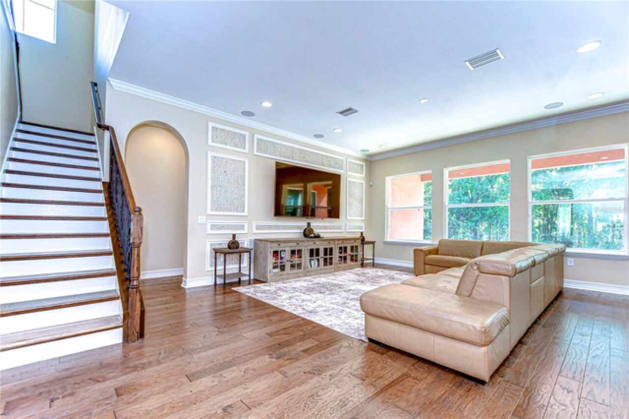Exceptional Home in Estancia at Wiregrass Ranch – Upscale Living in the Gated Village of Tavira! Discover refined elegance in this exquisite Spanish/Mediterranean-style residence located in the highly sought-after GATED village of Tavira within Estancia at Wiregrass Ranch. Showcasing exceptional architectural details throughout, this beautifully upgraded two-story home offers 3, 274 heated sq ft of refined living space, featuring 4 bedrooms, 3 baths, and a thoughtfully designed 3-car split garage. Designed to be your private sanctuary, this home combines elegance, comfort, and modern convenience in one of Wesley Chapel’s premier communities. From the moment you arrive, the lush lawn and manicured landscaping set the tone for what’s inside. The home’s elegant elevation, complete with a maple ridge barrel tile roof, weathered brick caramel mountain accents, and stunning portico entrance creates striking curb appeal. Situated on a conservation lot, it offers both privacy and stunning natural views. The exterior features Clopay faux wood three-car garage doors, finished in Sierra Redwood with Rookwood Clay trim, beautifully matching the front entry door. Inside, a neutral two-tone color palette flows throughout. Step through the front door and be welcomed into a warm foyer, accented by two custom wood photo feature walls, which opens into a spacious great room with open-concept living, ideal for seamless indoor-outdoor entertaining. Plantation shutters grace the windows on the first floor, adding elegance and light control. A formal dining room features custom ceiling woodwork, elevating the space with architectural interest. The chef’s kitchen is the heart of the home, designed for both style and function. It boasts a striking half-moon quartz island, three designer pendant lights, and high-end stainless appliances, including a 5-burner gas cooktop and built-in oven. A walk-in pantry, extended cabinetry, and a beautifully tiled backsplash complete this culinary space. The great room is wired for 5.1 surround sound and opens through sliding glass doors to an extended brick paver lanai—ideal for outdoor relaxation and entertaining. The primary bedroom suite is a tranquil retreat with tray ceilings, recessed lighting, and serene views of the conservation area. The luxurious primary bath offers a Royal Whirlpool bathtub, double vanities, and a frameless glass shower with an upgraded rain shower head—a true spa-like experience. Upstairs, a generous bonus room provides flexible living space—perfect for a media room, playroom, or home gym—and includes a designated walk in storage closet. Estancia at Wiregrass Ranch enhances your lifestyle with one of the most beautiful amenity centers in the area. Residents enjoy access to a 7, 000 sq ft clubhouse featuring a resort-style pool, entertainment and conference rooms, tennis and basketball courts, dog park, playground, walking trails, and a full calendar of community events and activities. Ideally located just minutes from top-rated schools, shopping, dining, entertainment, and medical centers, with quick access to I-75—making for an easy 30-minute commute to downtown Tampa or Tampa International Airport. Don’t miss this rare opportunity to own a luxury home in one of the area’s most sought-after communities. Schedule your private showing today!