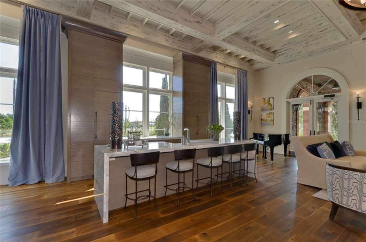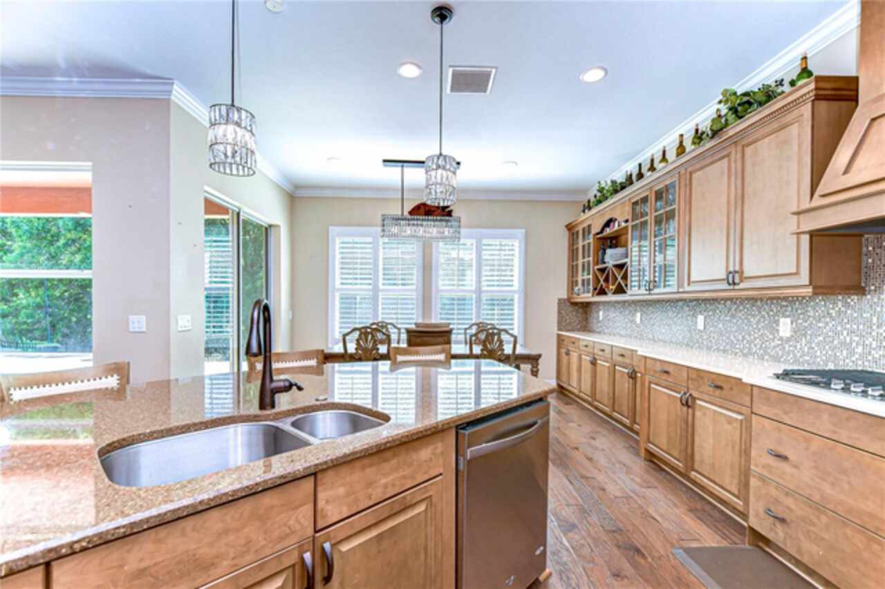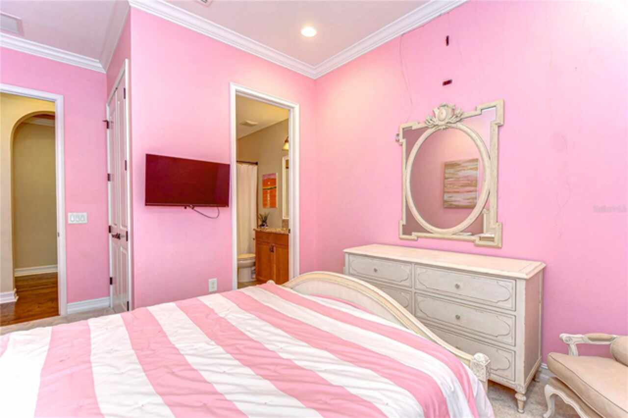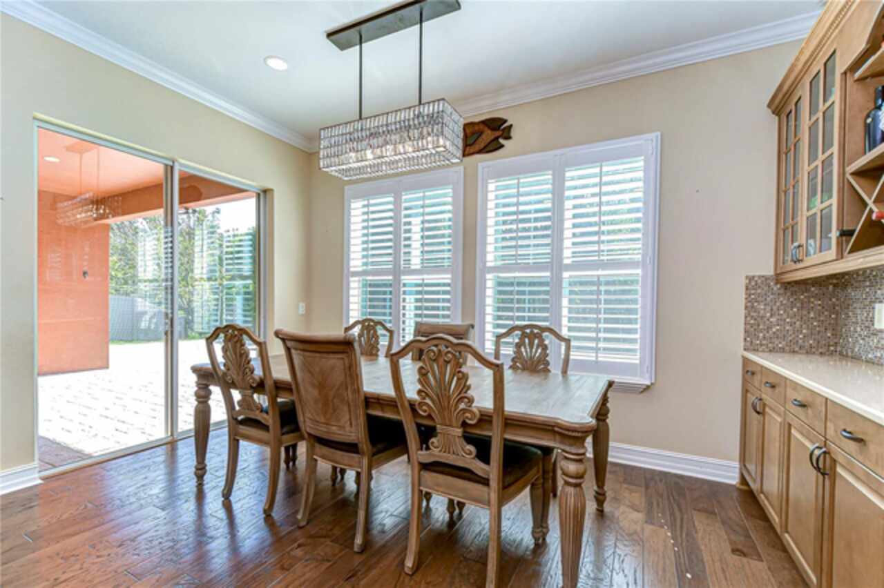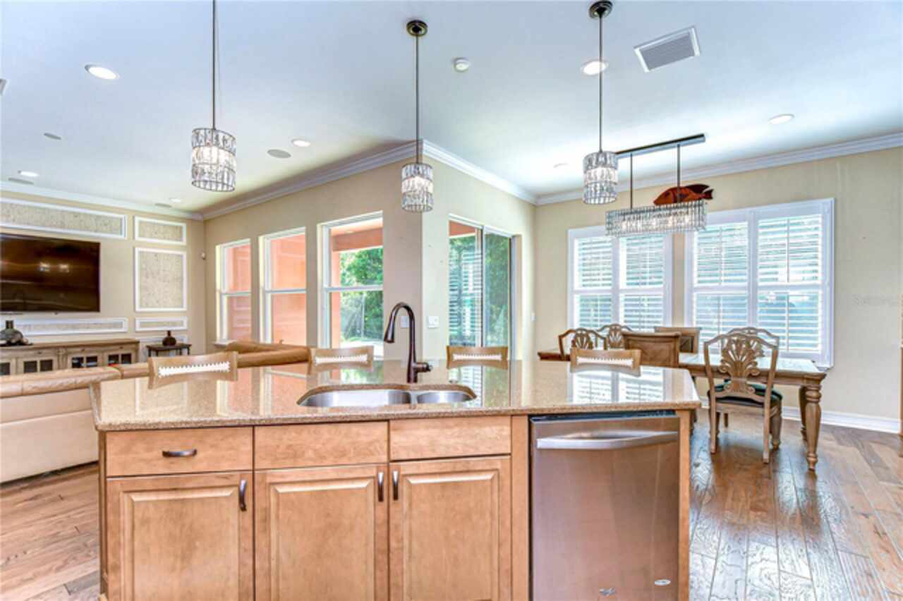 Exceptional Home in Estancia at Wiregrass Ranch – Upscale Living in the Gated Village of Tavira! Discover refined elegance in this exquisite Spanish/Mediterranean-style residence located in the highly sought-after GATED village of Tavira within Estancia at Wiregrass Ranch. Showcasing exceptional architectural details throughout, this beautifully upgraded two-story home offers 3, 274 heated sq ft of refined living space, featuring 4 bedrooms, 3 baths, and a thoughtfully designed 3-car split garage. Designed to be your private sanctuary, this home combines elegance, comfort, and modern convenience in one of Wesley Chapel’s premier communities. From the moment you arrive, the lush lawn and manicured landscaping set the tone for what’s inside. The home’s elegant elevation, complete with a maple ridge barrel tile roof, weathered brick caramel mountain accents, and stunning portico entrance creates striking curb appeal. Situated on a conservation lot, it offers both privacy and stunning natural views. The exterior features Clopay faux wood three-car garage doors, finished in Sierra Redwood with Rookwood Clay trim, beautifully matching the front entry door. Inside, a neutral two-tone color palette flows throughout. Step through the front door and be welcomed into a warm foyer, accented by two custom wood photo feature walls, which opens into a spacious great room with open-concept living, ideal for seamless indoor-outdoor entertaining. Plantation shutters grace the windows on the first floor, adding elegance and light control. A formal dining room features custom ceiling woodwork, elevating the space with architectural interest. The chef’s kitchen is the heart of the home, designed for both style and function. It boasts a striking half-moon quartz island, three designer pendant lights, and high-end stainless appliances, including a 5-burner gas cooktop and built-in oven. A walk-in pantry, extended cabinetry, and a beautifully tiled backsplash complete this culinary space. The great room is wired for 5.1 surround sound and opens through sliding glass doors to an extended brick paver lanai—ideal for outdoor relaxation and entertaining. The primary bedroom suite is a tranquil retreat with tray ceilings, recessed lighting, and serene views of the conservation area. The luxurious primary bath offers a Royal Whirlpool bathtub, double vanities, and a frameless glass shower with an upgraded rain shower head—a true spa-like experience. Upstairs, a generous bonus room provides flexible living space—perfect for a media room, playroom, or home gym—and includes a designated walk in storage closet. Estancia at Wiregrass Ranch enhances your lifestyle with one of the most beautiful amenity centers in the area. Residents enjoy access to a 7, 000 sq ft clubhouse featuring a resort-style pool, entertainment and conference rooms, tennis and basketball courts, dog park, playground, walking trails, and a full calendar of community events and activities. Ideally located just minutes from top-rated schools, shopping, dining, entertainment, and medical centers, with quick access to I-75—making for an easy 30-minute commute to downtown Tampa or Tampa International Airport. Don’t miss this rare opportunity to own a luxury home in one of the area’s most sought-after communities. Schedule your private showing today!