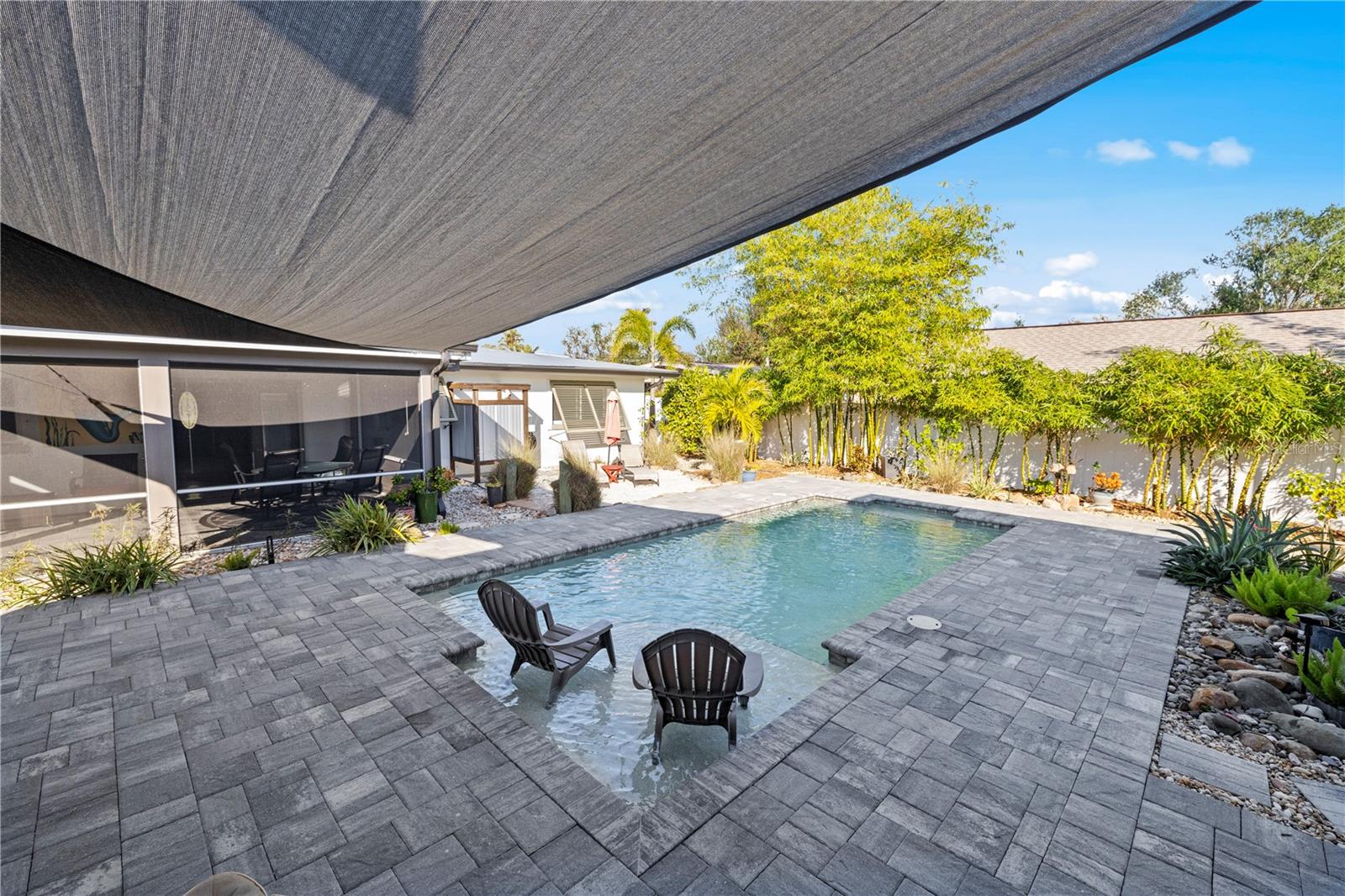 Under contract-accepting backup offers. BACK ON THE MARKET! INVESTORS WELCOME! Charming historic district gem in Punta Gorda, where modern comfort meets timeless appeal. This delightful property features a main house with three bedrooms and one and a half bathrooms, spanning 1, 768 square feet of thoughtfully designed living space. Recent upgrades showcase the owners' attention to detail, including a 2020 renovation that brought a new metal roof, fresh eaves, and gutters. The elegant terrazzo floors, which have weathered storms with grace, add a touch of vintage sophistication throughout. A beautiful paver driveway leads to a practical carport equipped with roll-down shutters for added protection. The heart of the home received a stunning makeover in 2020, featuring new cabinets mounted on treated lumber and sleek granite countertops. The front room exudes coastal charm with stylish shiplap walls and crisp new trim. Modern conveniences include a new HVAC system, updated electric panel, underground electric service, and contemporary ceiling fans throughout. The primary home sustained water damage during Hurricane Milton however many improvements can be repurposed. Step outside to discover your own private oasis. The crown jewel is a 24x12 saltwater pool, completed in 2021, featuring a sun deck and playful waterspouts. The screened lanai, adorned with new pavers, creates a seamless transition to outdoor living. A thoughtfully designed guest house adds extra living space with a generous kitchenette, full bathroom with shower and tub, and a cozy wood-burning fireplace – perfect for entertaining or housing visitors. A half bath compliments the Guest house, pool and sheds were not damaged during Helene or Milton. The outdoor space continues to impress with two versatile sheds, one with electrical access, connected by extensive paver pathways that create a cohesive outdoor living area. Privacy is assured with a 6-foot fence enclosing the property, while a 12-foot double gate provides convenient alley access. This location truly shines with its proximity to local attractions. Take a leisurely bike ride to Fishermen's Village or downtown's restaurants and Laishley Marina. Nature enthusiasts will appreciate being just steps away from Gilchrist Park's scenic trails and waterfront views. Whether you're seeking a permanent residence or considering its rental potential, this property offers the perfect blend of comfort and coastal living. The home's resilient construction has proven its worth through recent hurricanes, while modern updates ensure worry-free living for years to come. Here's your chance to own a piece of Florida paradise where every day feels like a vacation. With its perfect mix of indoor comfort and outdoor entertainment spaces, this home awaits your personal touch to transform it into your dream retreat.