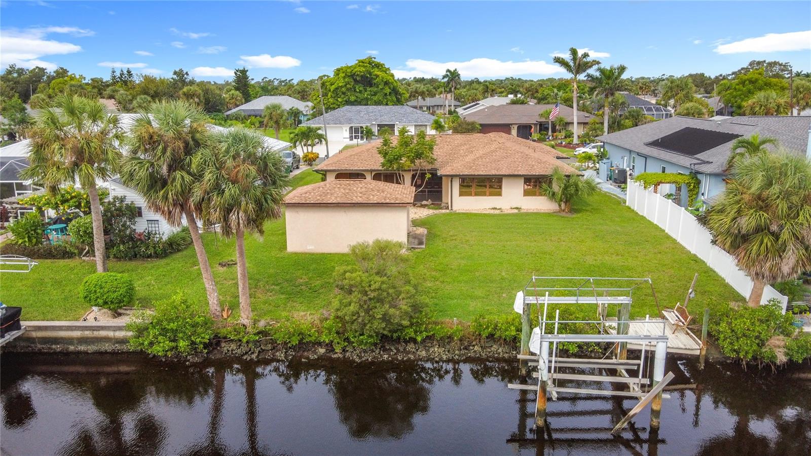 WELCOME HOME! ROOF 2024! This spacious 3-bed/2-bath home is LIGHT, BRIGHT & AIRY, freshly painted inside and ready to make your own. A flexible floor plan offers living & dining areas, a well-laid-out kitchen, and a large family room—perfect for entertaining or everyday living. Pocketing sliders in both the living & family rooms open to an expansive covered lanai, ideal for enjoying Florida’s outdoor lifestyle. 2-car garage PLUS a detached 1-car garage in back—perfect for a mower, kayaks, bikes, or even a small boat. Extra-wide driveway provides plenty of parking for cars, boat, or RV. WATERFRONT location with dock (needs repair) & boat lift (condition not guaranteed)—just 10 minutes by boat to Alligator Bay! Price to reflect some needed TLC, this gem offers a rare chance to own on one of the area’s most desirable streets. Don’t miss it!