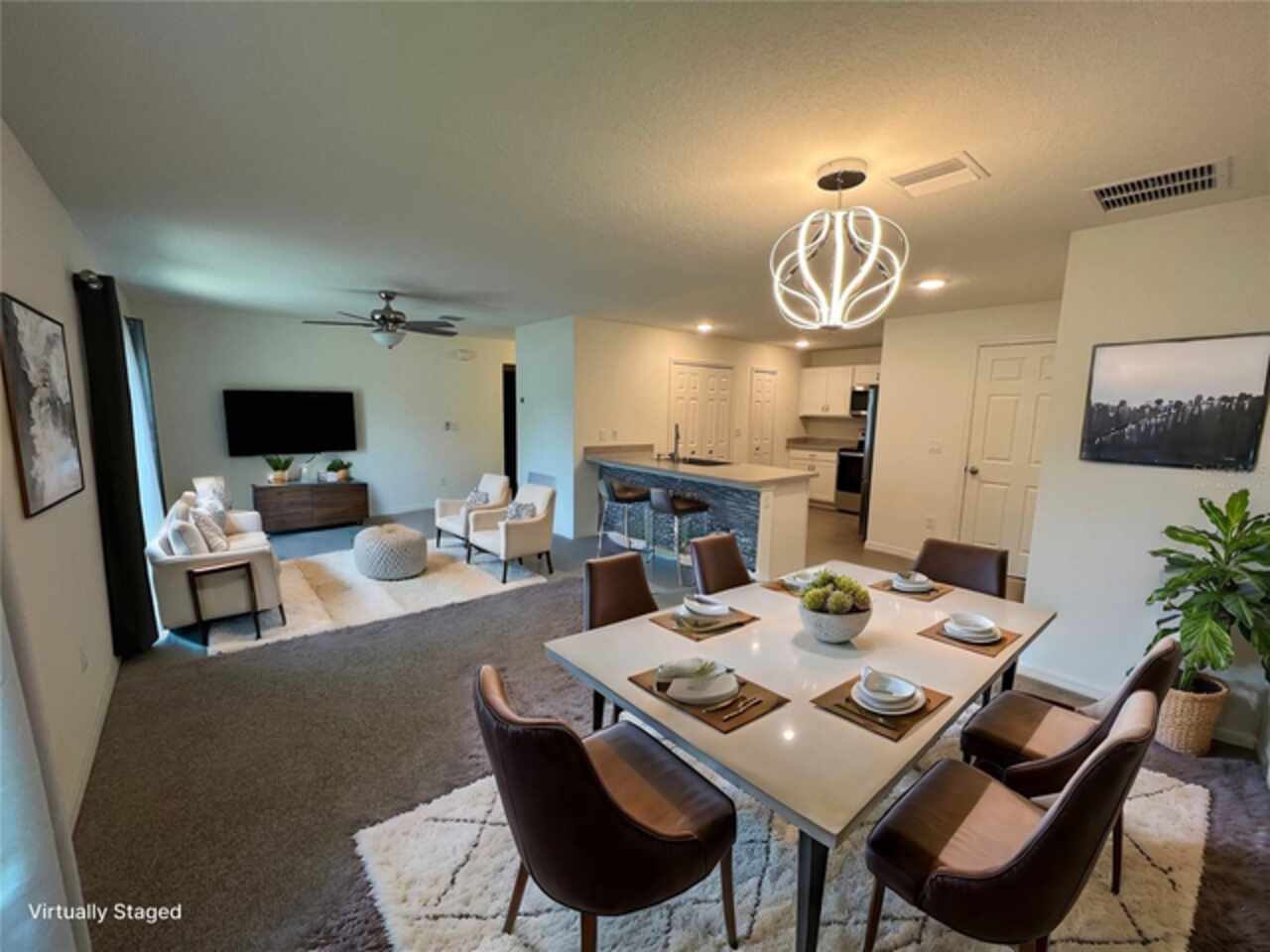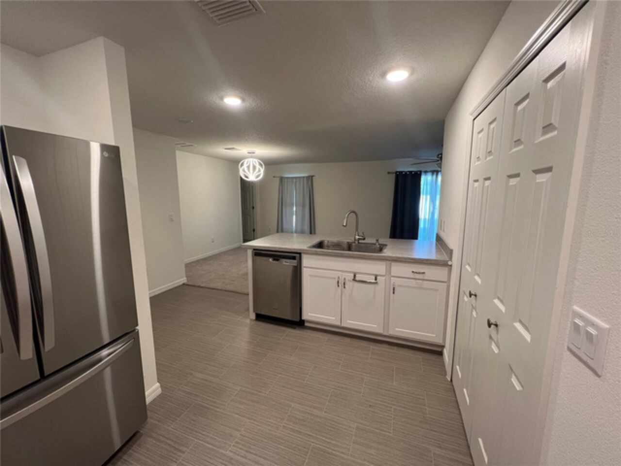 One or more photos have been virtually staged to better show the home's layout. Why wait to build when you can have it all now! Nestled in Palm Coast's Lehigh Woods this two year young home offers a kitchen equipped with stainless steel appliances and crisp, clean white cabinets. Large deep country style sink for those big pots and pans. Lots of cabinetry and two pantries provide you with plenty of storage space for your essentials. The peninsula opens up to the living area making it perfect for entertaining. The split floor plan gives the master quarters some added privacy. Upgraded lighting and ceiling fans in great room and all bedrooms. Sliding glass doors off of the great room lead to a large patio where you can sit and relax on one of those warm sunny days or grill that perfect meal for friends and family. The back yard is fully fenced with white vinyl. Home is also equipped with a keyless entry to both garage and front door. Just minutes to the Town Center where you will find an array of shopping and dining options. Flagler beach with it's beautiful sun, sand and ocean is just a fifteen minute ride away. Also, conveniently close to two hospitals. Easy access to US1. Please note: original floor plan has the original hook ups for the washer and dryer in the kitchen closet now a large pantry. This still remains an option should you want to move the washer and dryer back inside from their current location, the garage. Owner loves to cook and wanted an extra large pantry, so she moved them. Washer and dryer are included and are still under warranty.TV in the great room and the bedroom are included.