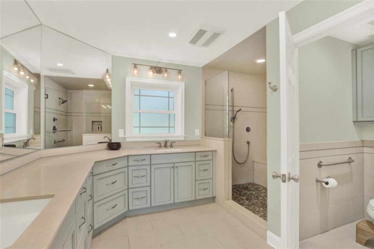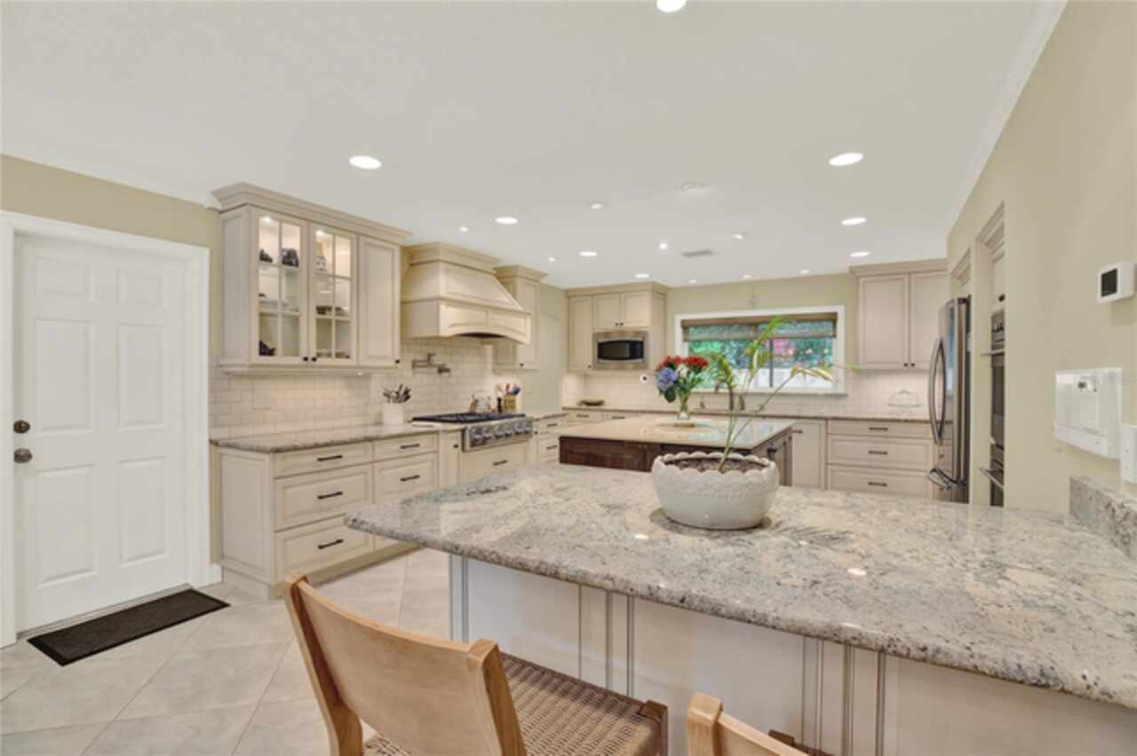BEAUTIFULLY UPDATED BELLEAIR HOME ON A RARE, PRIVATE OVERSIZED DOUBLE LOT! THIS IS THE LARGEST MOVE-IN READY HOME IN BELLEAIR FOR UNDER $1 MILLION! Situated across from a peaceful neighborhood park, this 2, 784 sq ft, 3BR / 2.5BA home combines timeless charm with thoughtful modern features, an oversized RV/boat garage and complete yard privacy behind a full perimeter wall. Spacious living areas feature hardwood floors, crown molding, and abundant natural light. The gourmet kitchen is a chef’s dream—offering a large granite island, gas cooktop with pot filler, double convection ovens, warming drawer, and pantry-style storage. A flexible MAIN-LEVEL BONUS ROOM is perfect for a home office, gym, or playroom. Upstairs, the expansive primary suite includes a WALK-IN CLOSET, built-in cabinetry, double-sink vanity, and en suite laundry. The 2nd floor also includes a 2nd bedroom with attached full bath with tub and a guest room with custom cabinetry that doubles as an office. Enjoy outdoor living in a beautifully landscaped setting with mature trees, butterfly garden, screened back porch, and stone patio—an ideal retreat for relaxing or entertaining. A rare find in Belleair, the OVERSIZED ATTACHED RV/BOAT GARAGE (40’ x 17’ with 14’ ceilings and 12’x12’ door) includes wall A/C, 300-amp service, built-in storage, and a workbench, offering unmatched versatility. ADDITIONAL HIGHLIGHTS INCLUDE HURRICANE-IMPACT WINDOWS, TWO BRAND-NEW HVAC SYSTEMS WITH TRANSFERABLE 10-YEAR WARRANTIES, REROOFED DURING MAJOR RENOVATION, SOLAR ATTIC FANS, GENERATOR HOOK-UP, AND A SECURITY SYSTEM. NO FLOOD INSURANCE REQUIRED and no pool to maintain. Just minutes from Belleair Country Club, beaches, shopping, and dining. This move-in-ready home delivers space, privacy, and exceptional value in one of Belleair’s most desirable areas!