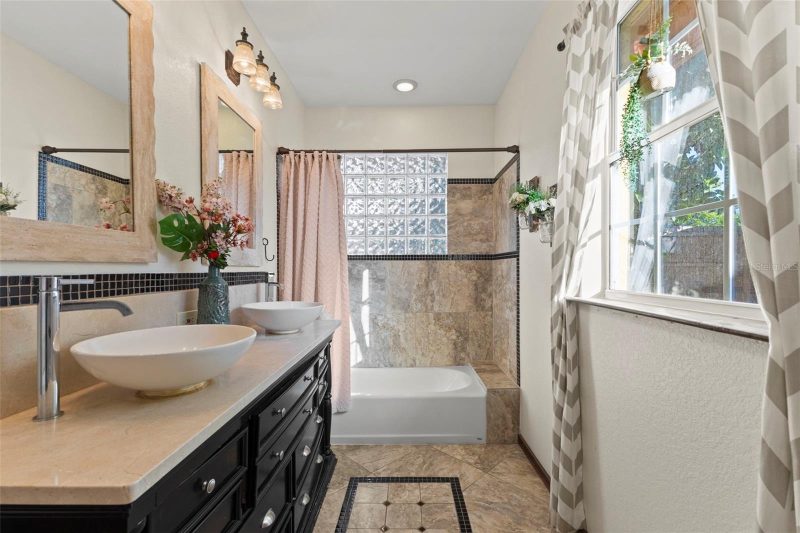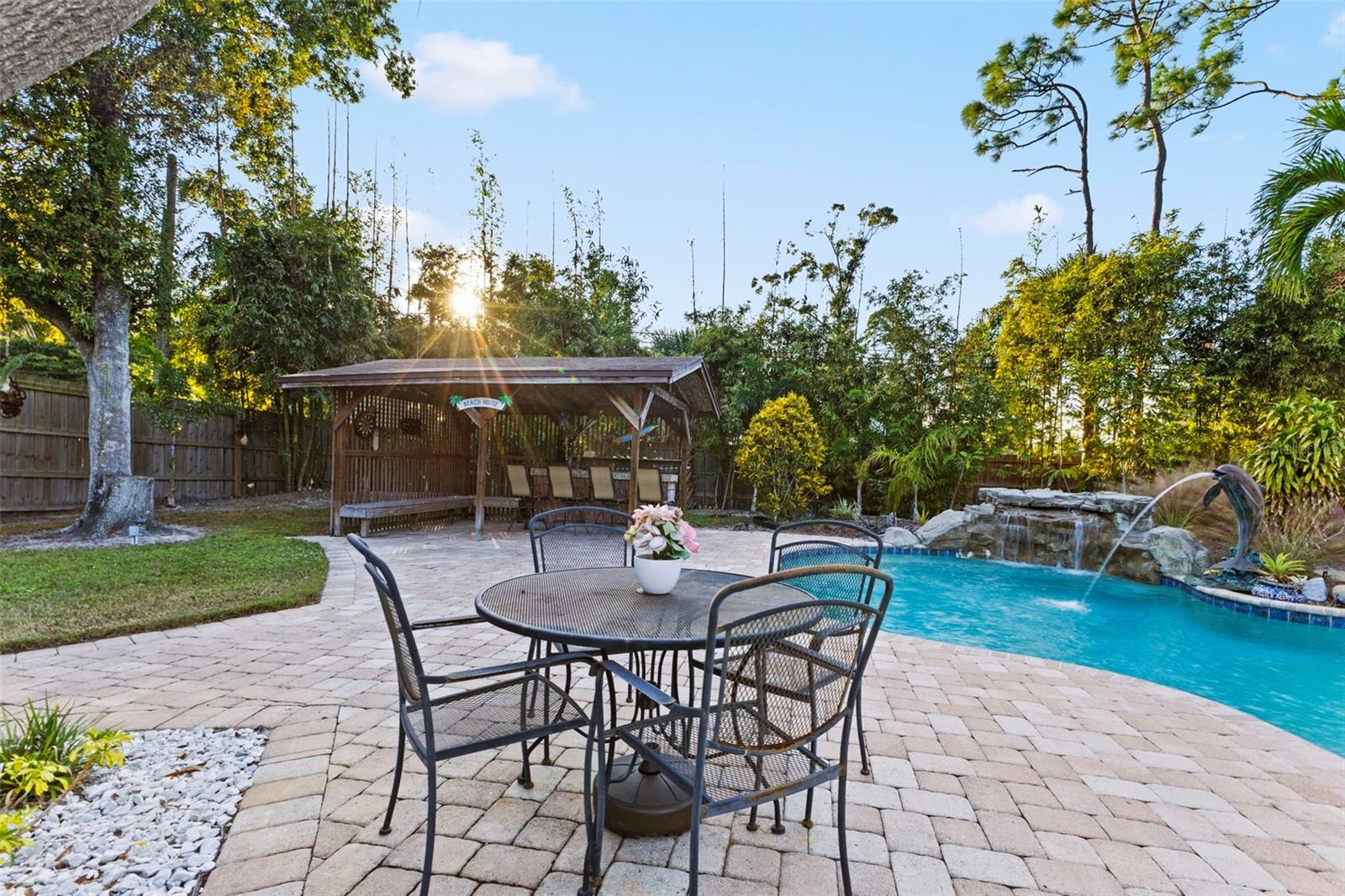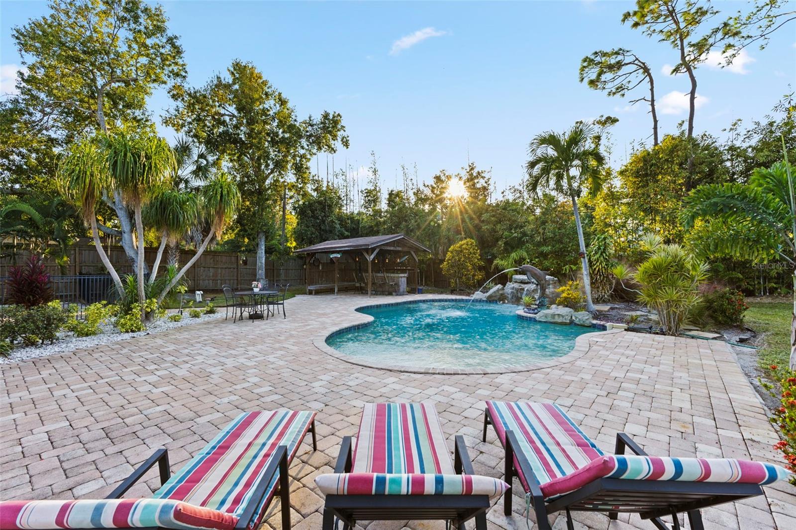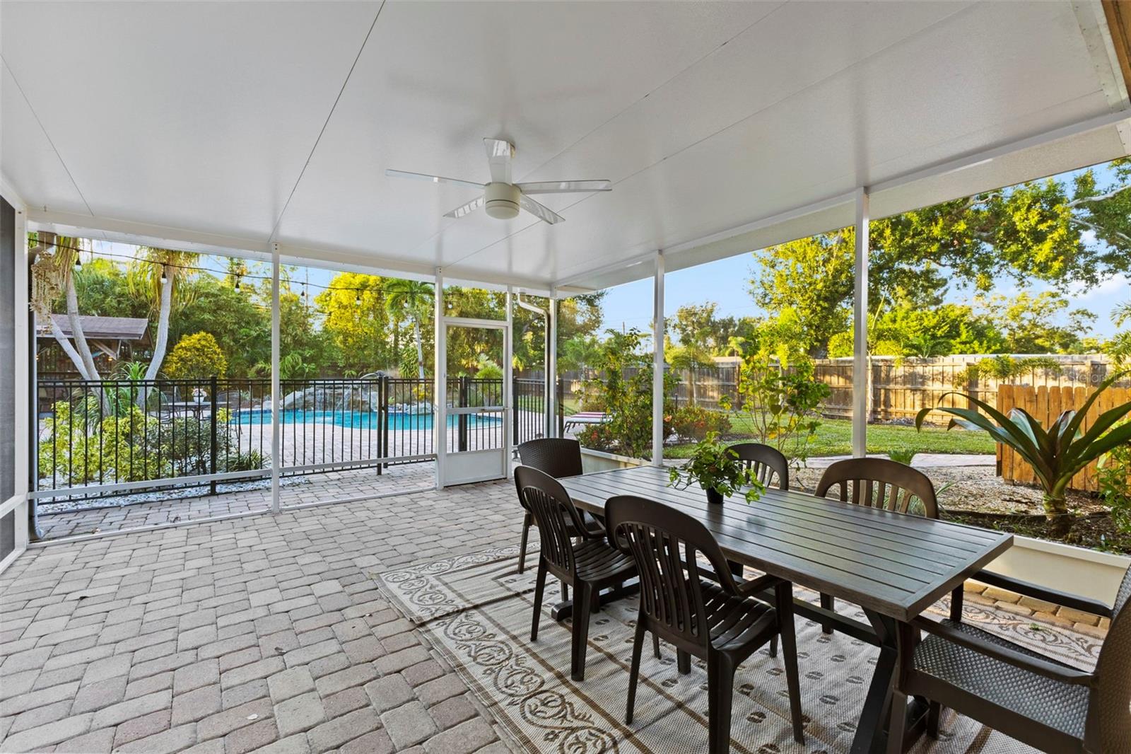 An inviting Sarasota residence that blends spacious indoor living with a true resort-style outdoor oasis, all positioned in one of the most convenient and desirable locations in Sarasota County. Thoughtfully decorated and beautifully maintained, this home opens with a charming courtyard entrance that sets an immediate tone of warmth and sophistication. Inside, Brazilian hardwood floors flow throughout the living spaces, complementing abundant natural light and an open, flexible layout. The home offers large bedrooms and two versatile flex rooms ideal for a den, office, playroom, hobby studio, gym, storage, or an additional guest suite. Upgraded interior doors add a refined touch, while the master bedroom features a custom built-in closet system for exceptional organization. The kitchen impresses with an epoxy river kitchen-island countertop paired with a copper farmhouse sink, creating a stunning focal point for both cooking and entertaining. Additional highlights include Mexican tile accents, a generous walk-in pantry, and thoughtful design that blends character with function. Step outside to discover the crown jewel of the property: a private, resort-style lagoon pool designed for the ultimate Florida lifestyle. This expansive 20, 000-gallon saltwater pool showcases a rockwall waterfall, a dolphin fountain, bench seating, and a sun shelf for lounging. With outstanding sun exposure perfect for sunbathing, the pool is surrounded by an oversized pavered patio offering abundant space for lounge seating and entertaining. A 340-sq-ft screened lanai with a ceiling fan extends the indoor living space and provides a comfortable transition to the home’s breathtaking outdoor retreat. Mature tropical landscaping creates lush privacy, enhancing the serene ambiance and delivering the feeling of a secluded paradise. Completing the outdoor experience is a tiki bar with bartop seating and built-in lighting, ideal for evening cocktails, weekend celebrations, and memorable nights under the Florida sky. The property also includes a wired utility and workshop shed, plus an irrigation system for easy landscape maintenance. Beyond its impressive features, the location elevates this home even further. Residents are less than 10 minutes from Downtown Sarasota’s world-class dining, boutique shopping, waterfront parks, and vibrant cultural arts district. The world-famous Siesta Key Beach, renowned for its powdery white quartz sand, is approximately 10 minutes away, offering effortless beach days. The upscale UTC Mall and surrounding dining and entertainment district are about 15 minutes away, while St. Armands Circle and Lido Beach are roughly 20 minutes away for oceanfront dining and luxury leisure. Everyday conveniences, including Sarasota Memorial Hospital, grocery stores, parks, boat ramps, and I-75, are all within minutes, making this home a rare combination of comfort, style, and accessibility. Beautifully updated, move-in ready, and enhanced with an outdoor living experience rarely found in this location, this property presents an exceptional opportunity to embrace the best of Sarasota living! ROOF 2020. Two of three HVACs 2023.