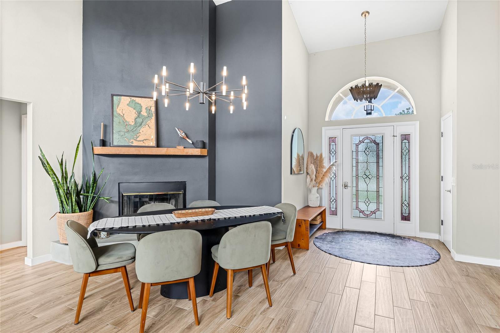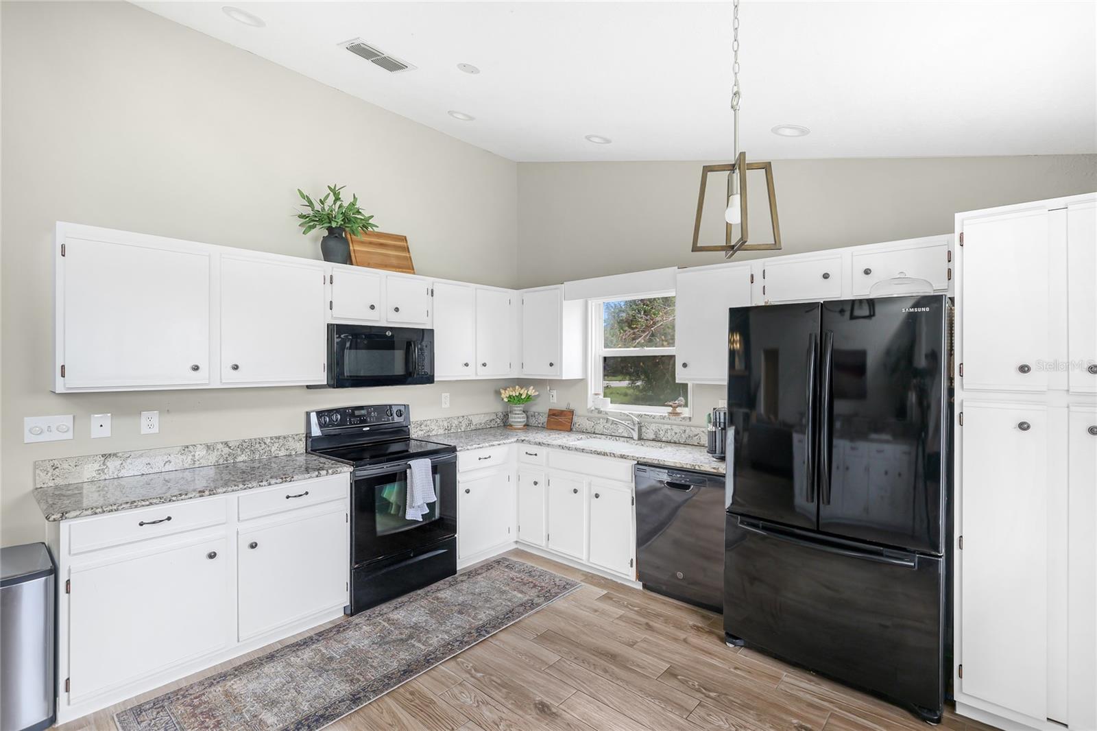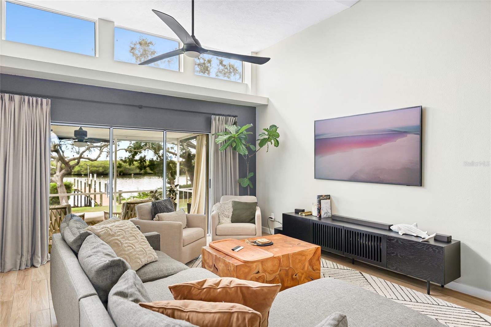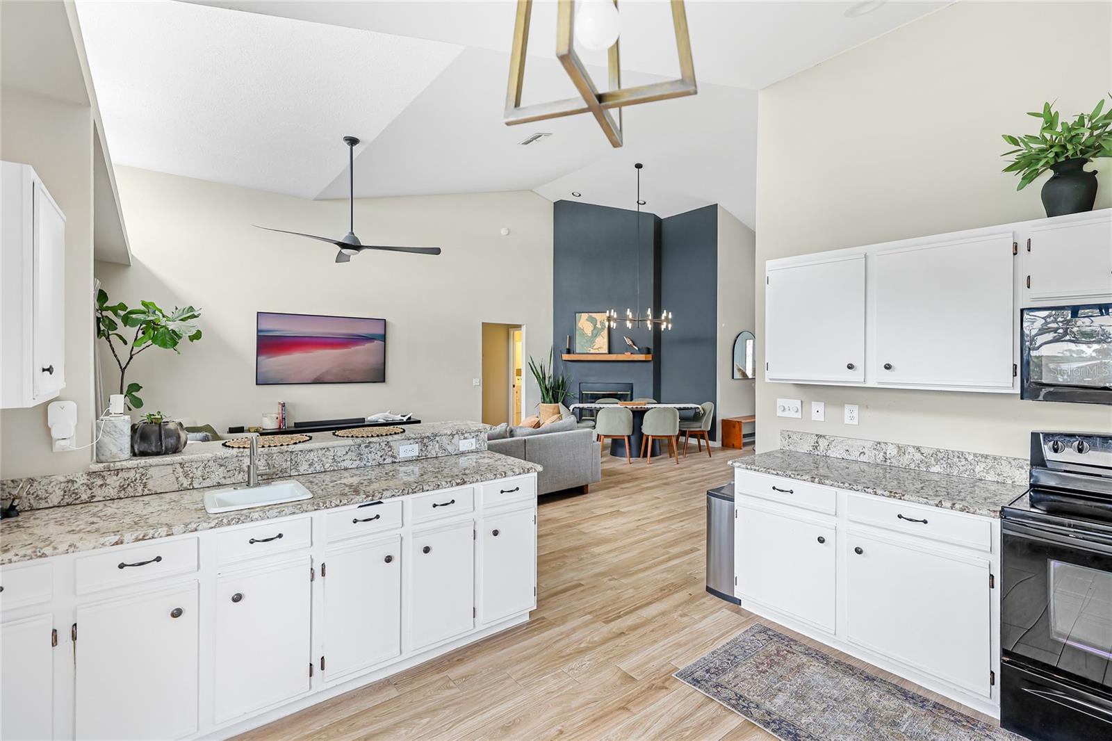 Cathedral Ceiling(s), Ceiling Fans(s), Eat-in Kitchen, High Ceilings, Open Floorplan, Split Bedroom, Stone Counters, Thermostat, Walk-In Closet(s), Wet Bar, Window Treatments