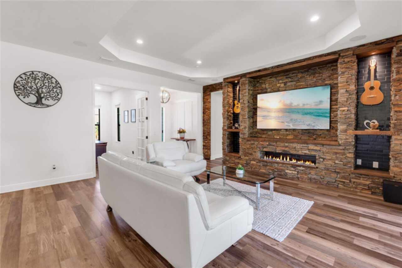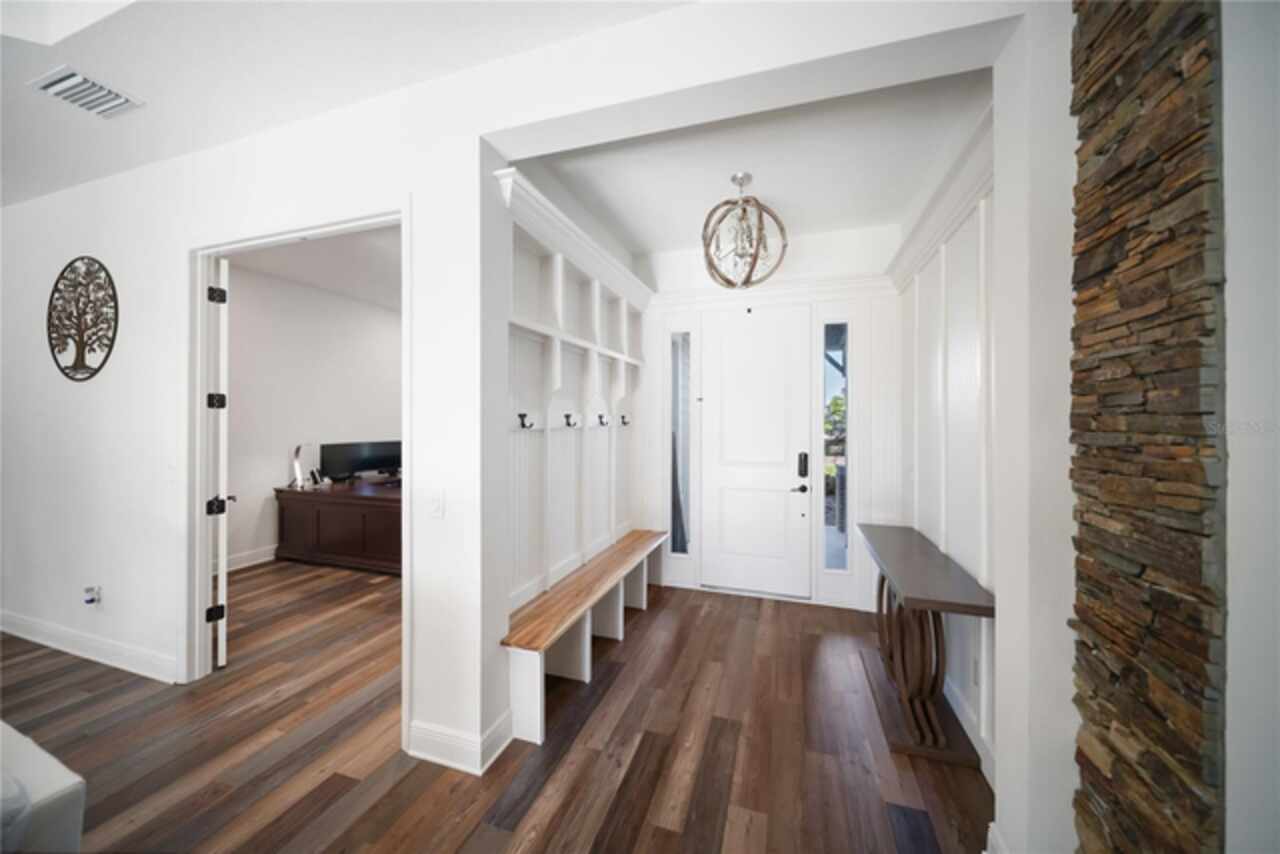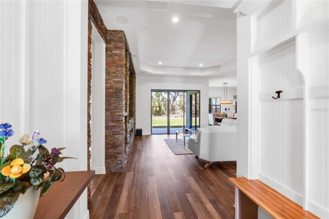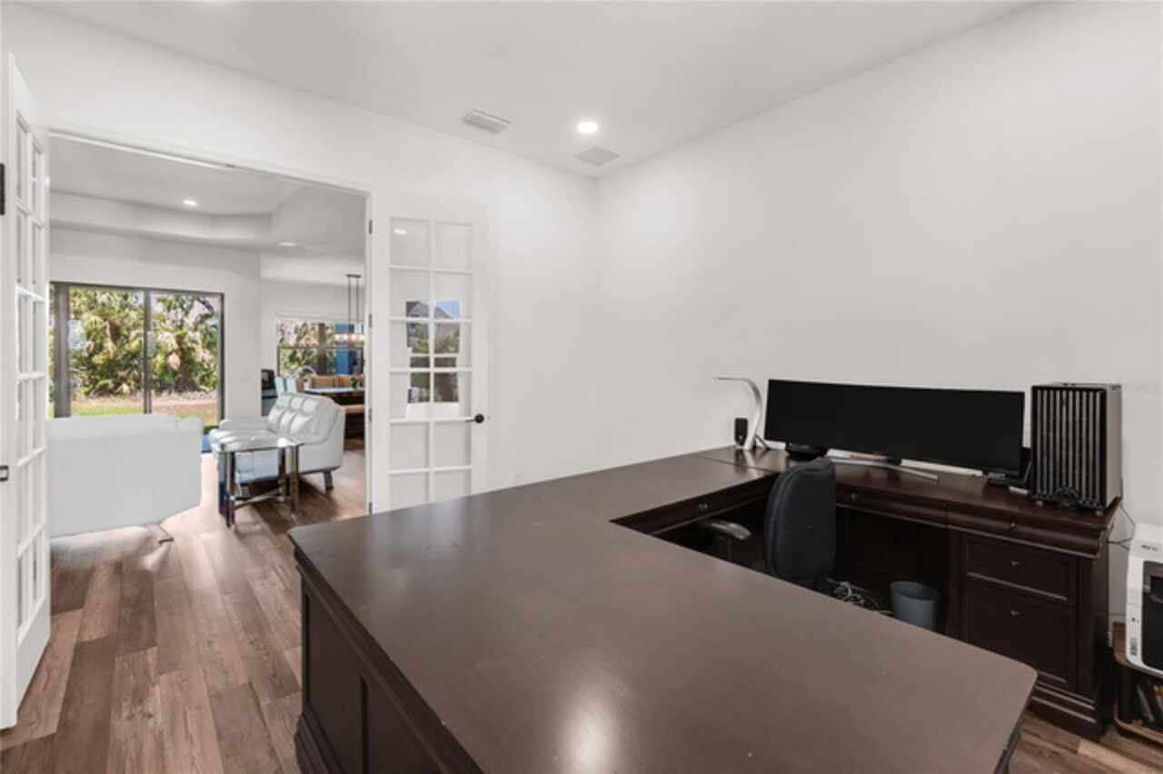 Welcome to 4308 Fly Rod Terrace, a beautifully appointed home nestled in the highly sought-after community of Canoe Creek in Parrish, Florida. Built in 2021, this spacious single-story residence offers 3 bedrooms, 3 full bathrooms, and 2, 708 square feet of living space, all situated on a beautifully landscaped 0.23-acre lot. From the moment you arrive, you’ll appreciate the home’s inviting curb appeal, complete with manicured gardens, a welcoming front porch, and a split 3-car garage with dedicated golf cart space. Inside, the open floorplan is designed for both comfortable living and elegant entertaining. Gorgeous tile and wood flooring flow throughout the main living areas, while large windows allow for plenty of natural light. The chef’s kitchen features stainless steel appliances, solid surface countertops, a large center island, and ample cabinetry, all overlooking a spacious dining area and a cozy living room. Sliding glass doors lead to a screened-in lanai, perfect for enjoying Florida’s warm weather year-round. The owner’s suite is a true retreat, offering a large bedroom, a luxurious en-suite bathroom with dual vanities, and an expansive walk-in closet. Two additional bedrooms, each with their own full bathrooms nearby, provide privacy and comfort for family or guests. Additional features include an irrigation system, recessed lighting, and thoughtfully designed landscaping. Located in Flood Zone X with no required flood insurance, this home is part of a vibrant community known for its resort-style amenities. Residents of Canoe Creek enjoy access to a sparkling pool, state-of-the-art fitness center, clubhouse, dog park, scenic sidewalks, and more. The neighborhood is golf cart-friendly and offers a laid-back lifestyle with the convenience of nearby shopping, dining, and top-rated schools including Annie Lucy Williams Elementary, Buffalo Creek Middle, and Parrish Community High. With a low HOA fee and no CDD, this home offers both luxury and value. Whether you're looking to settle into a peaceful community or enjoy a stylish home with modern features, 4308 Fly Rod Terrace is the perfect place to call home. Schedule your private showing today and experience everything this exceptional property has to offer.