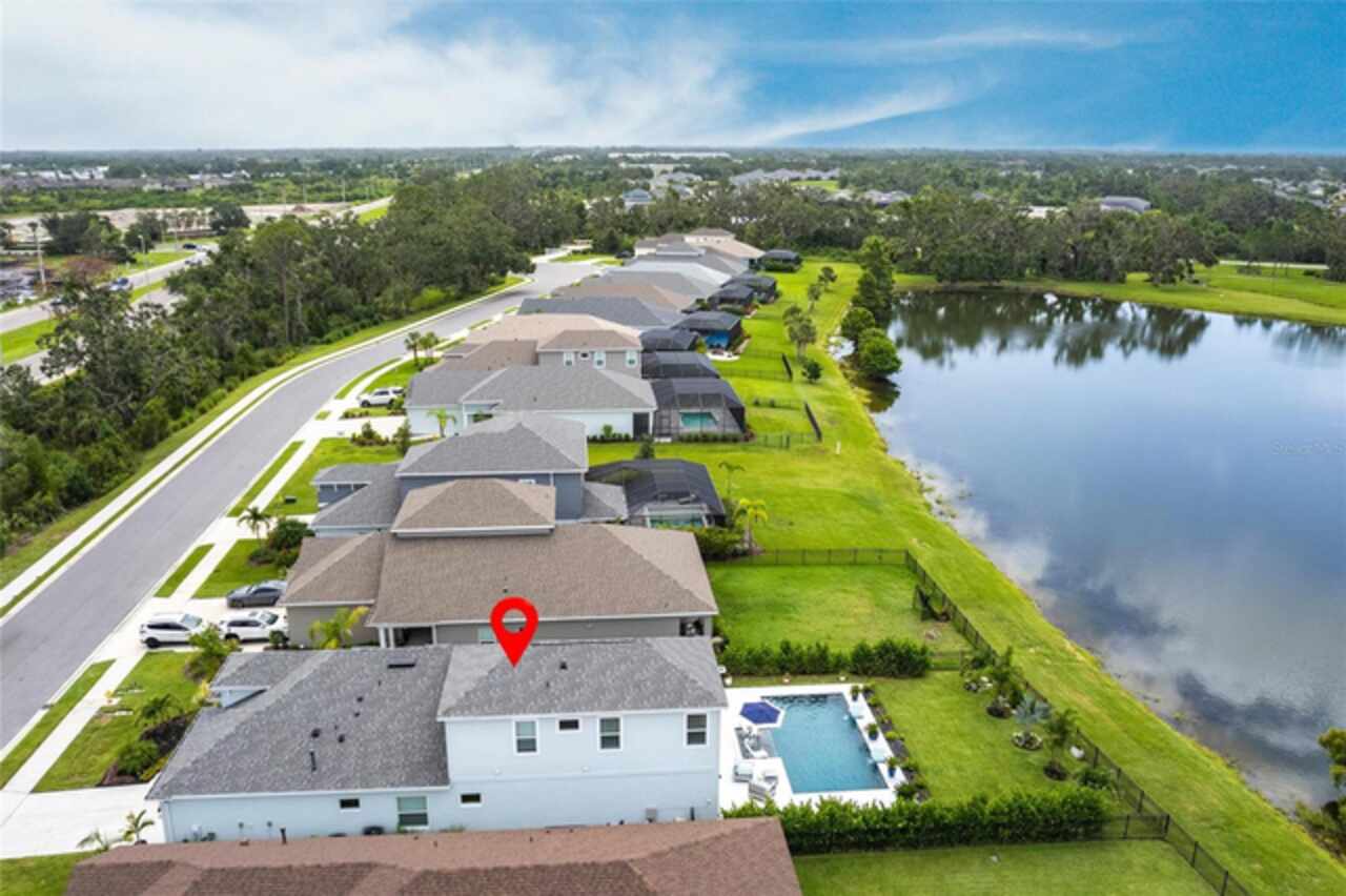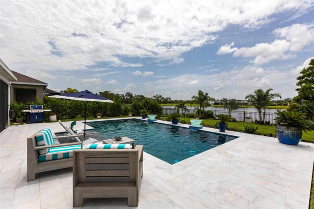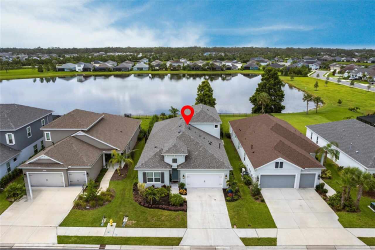Seller now offering up to $20, 000 in "flex-money" Welcome to your dream home in this stunning 2-story, 2023-built, 4-bedroom, 4-bathroom, office/den, bonus room, waterfront gem. Perfectly blending modern elegance with serene views, this home is designed for both relaxation and entertainment. The kitchen features sleek Corian countertops, stainless steel appliances, abundant cabinetry, and a center island with a breakfast bar. There are two walk-in pantries to give you tons of storage. All doors have been upgraded to an incredible 9-feet. A versatile den offers flexibility as a home office, study, or guest room. The luxurious primary suite is a true retreat, boasting a walk-in closet, dual sinks, and a spa-like glass-enclosed shower. Two more bedrooms and a well-appointed full bathroom ensure comfort for family or guests. The second floor features an added bedroom, full bathroom, and a large bonus, media, of flex space. Let us go outside to your private oasis! The expansive backyard features a sparkling saltwater pool, open to the natural beauty of this space. The owner invested over $140, 000 in the outdoor space alone. Beautifully landscaped grounds, perfect for barbecues, entertaining or quiet evenings under the stars. Silverleaf is conveniently situated near I-75 and I-275, providing easy access to Tampa, St. Petersburg, and Sarasota. Silverleaf’s amenities include a resort-style pool, fitness center, clubhouse with catering kitchen, dog parks, playgrounds, walking trails, and flex lawn space. For those with a penchant for shopping and dining, Silverleaf is a prime location near a wealth of premium options. This is the newest part of the community, only a couple of years old. The community located in a great school district. Additionally, golf enthusiasts will revel in proximity to world-class courses such as the River Wilderness Golf and Country Club and the Buffalo Creek Golf Course. Call today for a private showing of this beautiful home.