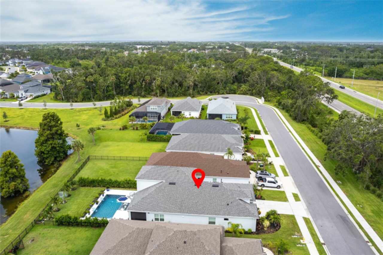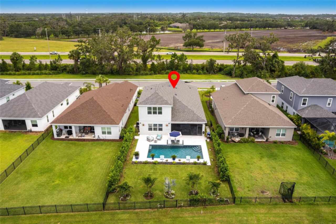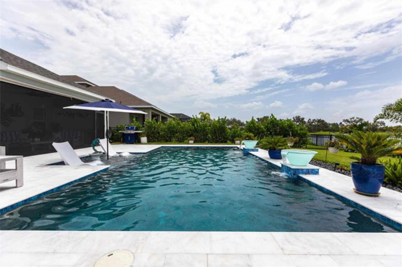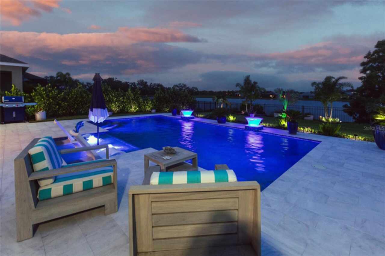 Seller now offering up to $20, 000 in "flex-money" Welcome to your dream home in this stunning 2-story, 2023-built, 4-bedroom, 4-bathroom, office/den, bonus room, waterfront gem. Perfectly blending modern elegance with serene views, this home is designed for both relaxation and entertainment. The kitchen features sleek Corian countertops, stainless steel appliances, abundant cabinetry, and a center island with a breakfast bar. There are two walk-in pantries to give you tons of storage. All doors have been upgraded to an incredible 9-feet. A versatile den offers flexibility as a home office, study, or guest room. The luxurious primary suite is a true retreat, boasting a walk-in closet, dual sinks, and a spa-like glass-enclosed shower. Two more bedrooms and a well-appointed full bathroom ensure comfort for family or guests. The second floor features an added bedroom, full bathroom, and a large bonus, media, of flex space. Let us go outside to your private oasis! The expansive backyard features a sparkling saltwater pool, open to the natural beauty of this space. The owner invested over $140, 000 in the outdoor space alone. Beautifully landscaped grounds, perfect for barbecues, entertaining or quiet evenings under the stars. Silverleaf is conveniently situated near I-75 and I-275, providing easy access to Tampa, St. Petersburg, and Sarasota. Silverleaf’s amenities include a resort-style pool, fitness center, clubhouse with catering kitchen, dog parks, playgrounds, walking trails, and flex lawn space. For those with a penchant for shopping and dining, Silverleaf is a prime location near a wealth of premium options. This is the newest part of the community, only a couple of years old. The community located in a great school district. Additionally, golf enthusiasts will revel in proximity to world-class courses such as the River Wilderness Golf and Country Club and the Buffalo Creek Golf Course. Call today for a private showing of this beautiful home.