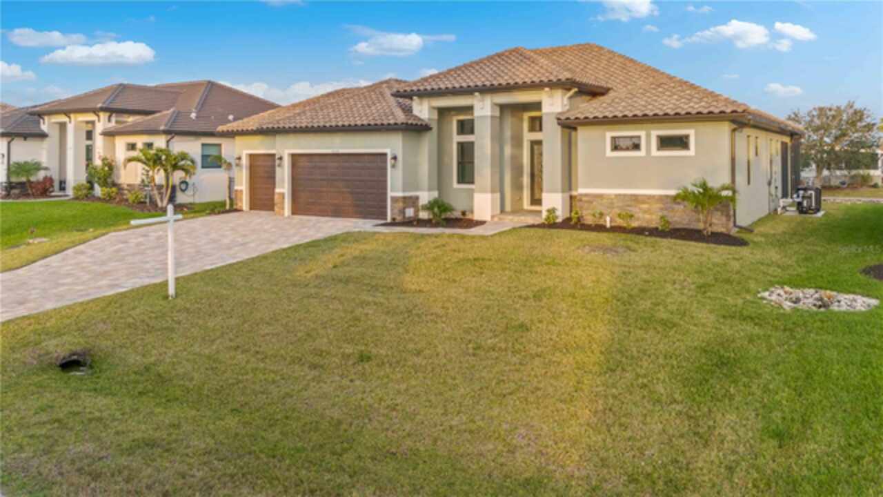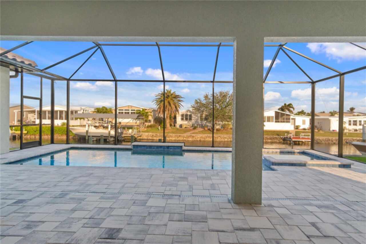 One or more photo(s) has been virtually staged. NEW, NEVER LIVED IN 3 BED / 3 BATH / 3 CAR GARAGE HOME WITH POOL & HOT TUB - JUST UNDER 2, 400 SQFT - 10 MINUTES TO CHARLOTTE HARBOR – NO BRIDGES! Welcome to Windward Isles, Punta Gorda’s newest maintenance-free waterfront community, featuring 24 luxurious sailboat-access homes! This stunning three-bedroom, three-bathroom residence offers an expansive split-bedroom floor plan with exceptional features and high-end finishes throughout. This spacious home boasts generous guest bedrooms, a formal dining area, a massive great room, and a bonus den/office. The gourmet kitchen includes 42” wood upper cabinets with accent glass inserts, a tiled backsplash, granite countertops, and a stainless steel appliance package featuring a hood, oven, microwave, cooktop, refrigerator, dishwasher, and wine refrigerator. The luxurious master suite offers an expansive master bathroom with a dual vanity, tiled showers, and a walk-in closet. Interior features include porcelain tile flooring throughout, an electric built-in fireplace, tall ceilings with recessed trays, coffers, and grids, crown molding, designer fixtures, and 5" baseboards. The outdoor oasis features a covered paver lanai, a heated pool and spa, and a 90-degree sliding glass door maximizing natural light, all overlooking the picturesque canal. The exterior of the home is equally impressive, featuring a seawall with a wood dock, perfect for boaters. Additional features include a paver driveway and walkway, stone accents, high-impact windows/doors/sliders and a tiled roof, along with an irrigation system and lush landscaping. Windward Isles is a deed-restricted community offering a maintenance-free lifestyle with HOA-covered services, including lawn maintenance, irrigation, tree trimming, pest control, and fertilization. This prime location is moments from Charlotte Harbor and the Gulf of Mexico, with easy access to Boca Grande, Fisherman’s Village, and Downtown Punta Gorda by car or boat. Nearby dining, shopping, and entertainment make it an ideal place to call home. Seasonal rentals are allowed, making it a perfect investment opportunity! Additional homesites and models are available. Contact your agent today for more details and to schedule a private showing! CHECK OUT THE INTERACTIVE VIRTURAL TOUR and VIDEO TOUR AVAILABLE FOR THIS HOME. Developer financing is available with a 5.99 30-year fixed rate.
