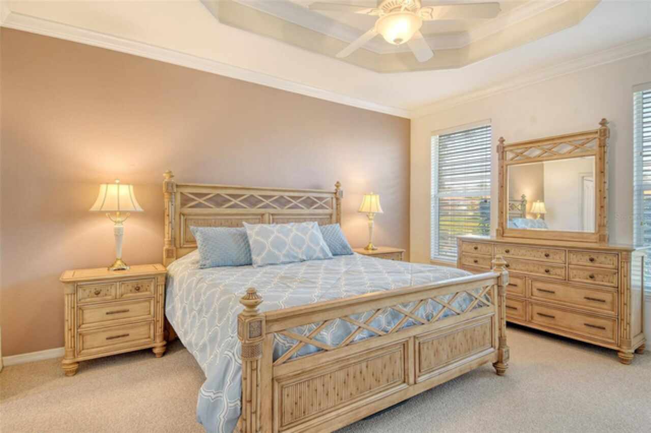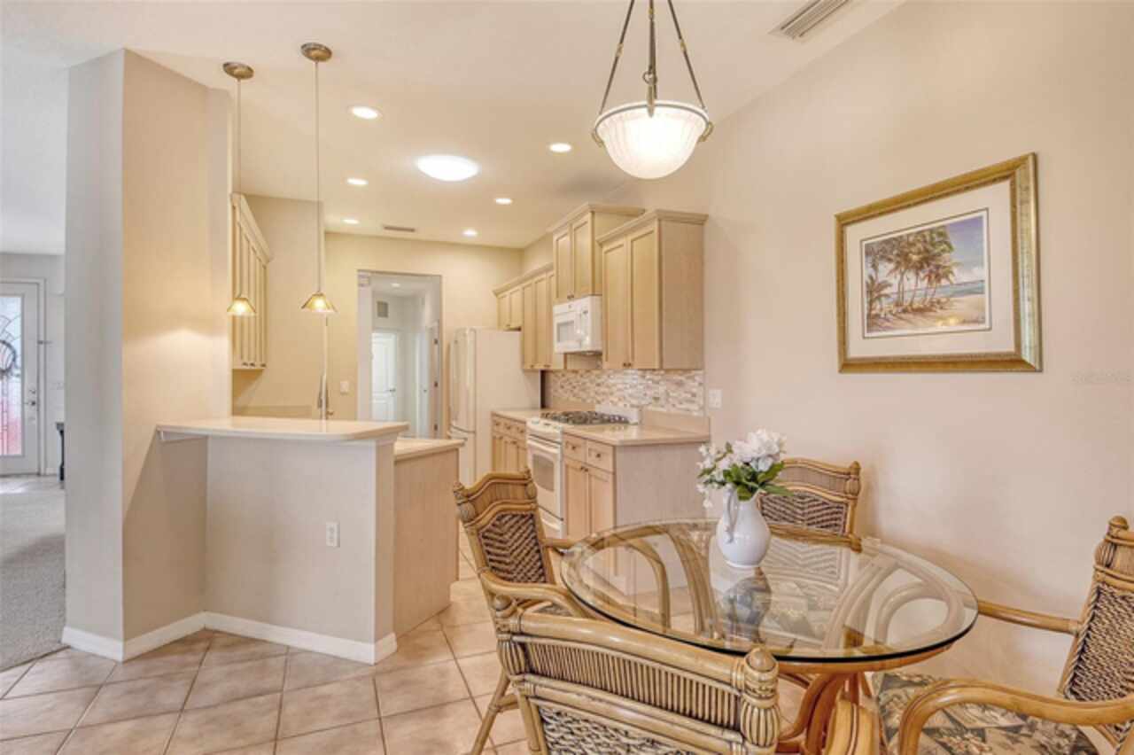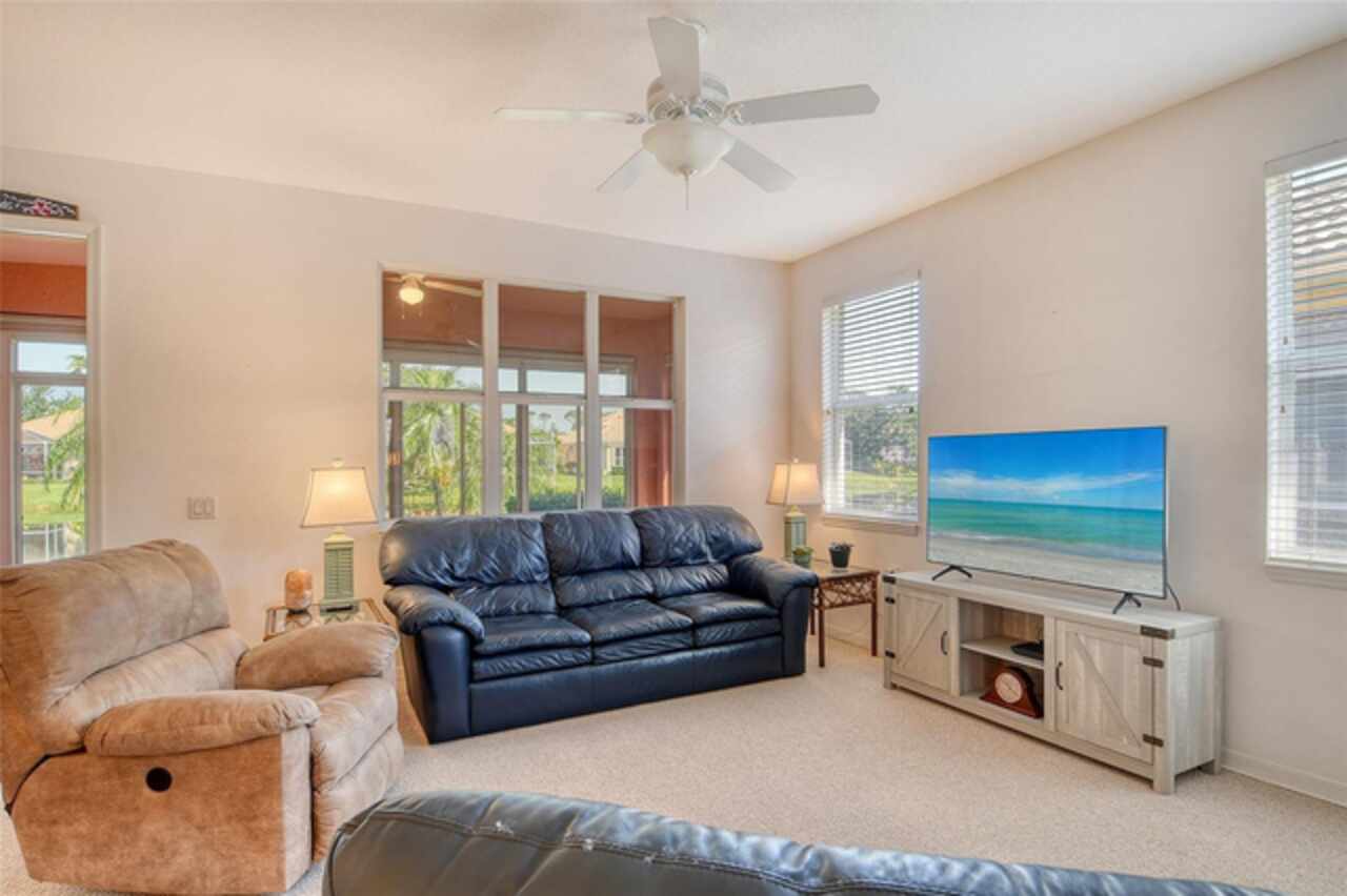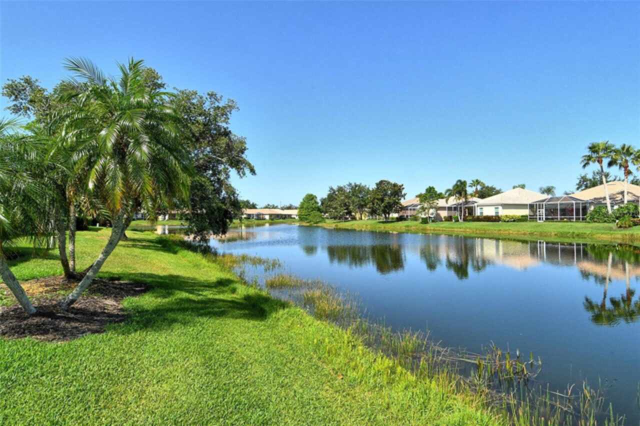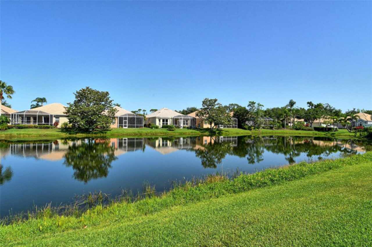 Welcome to maintenance-free living in the charming, GATED community of Villa Rosa, nestled in the highly desired Minimal Flood Hazard Zone X and located within an A-rated school district. This move-in-ready, one-level home offers 2 bedrooms, 2 bathrooms, and a versatile flex space that can serve as an office, den, or craft room. The thoughtfully designed split floor plan provides privacy, placing the expansive primary suite—with its serene lake views, tray ceiling, and large closets, dual vanities, walk-in shower, separate from the guest bedroom. Tall ceilings and an open layout enhance the home’s spacious, airy feel, making it an inviting retreat. The kitchen opens to the living area, perfect for entertaining, and the enclosed lanai with AC offers a tranquil spot to relax or dine al fresco. The sellers have lovingly maintained their home by painting the exterior in 2023 and cleaning the roof in November of 2025. Enjoy the community’s heated pool, spa, clubhouse with a fitness center, and neighborly atmosphere. With yardwork and lake maintenance handled by the HOA, plus low HOA fees and no CDD, you’ll have more time to explore nearby attractions like Urfer Family Park, downtown Sarasota, world-class beaches, golf courses, and the UTC Mall. Why maintain your own pool when one is just steps away? This is the perfect blend of comfort, convenience, and carefree living—schedule your private showing today and make this must-see home yours!
