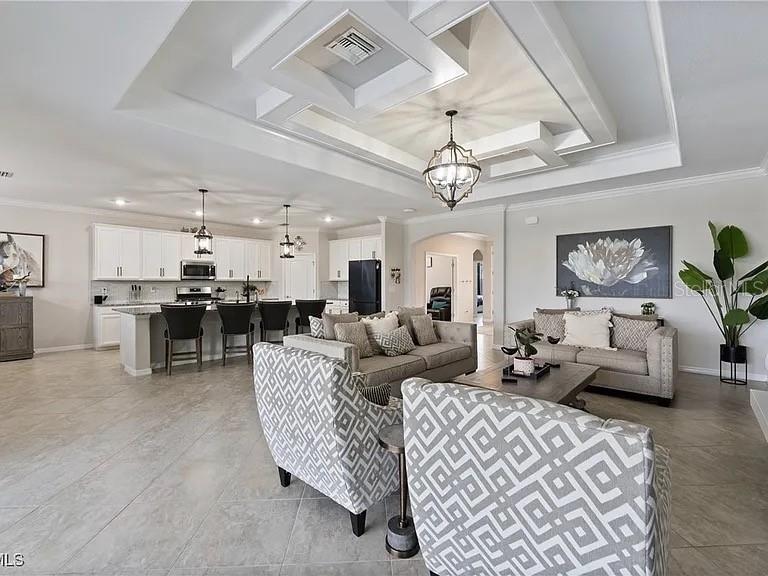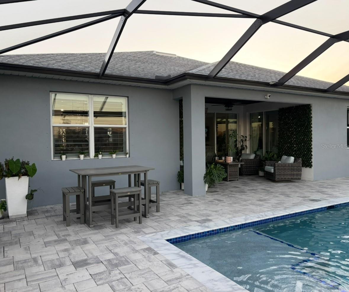 Welcome to this beautiful Palmetto model home in Babcock Ranch! This stunning 3-bedroom plus den, 3-car garage residence offers an open-concept floor plan ideal for gatherings and entertaining. The modern kitchen features a stylish backsplash, commercial-grade range hood (2025), and a top-of-the-line appliances. Enjoy the Florida lifestyle with a custom heated pool, spa, and picture-frame screened lanai, perfect for relaxation and entertaining. The grout has been professionally cleaned and sealed (2025), and the home exterior has been freshly painted (2025), enhancing the home’s pristine appearance. Additional interior highlights include diagonal tile throughout, beautiful light fixtures in every room, plantation shutters in the dining room, and custom window treatments in the living room and primary suite. Elegant wood ceiling designs add warmth and character. The laundry room features an upgraded washer and dryer set with white cabinetry for extra storage. A mini-split A/C unit in the garage (2025) provides year-round comfort, gutters have been installed around the entire home (2025) for added protection, and an epoxy garage floor (2025) adds a sleek, durable finish. This home is equipped with a whole-house water filtration system, generator electrical outlet, two electric car outlets in the garage, and security cameras (2025) for peace of mind. Located in the sought-after Babcock Ranch community, residents enjoy exceptional amenities including two community pools and clubhouses, scenic walking trails and nature paths, playgrounds and parks, basketball, tennis, pickleball, and bocce courts, along with year-round community events, restaurants, and shopping plazas.
