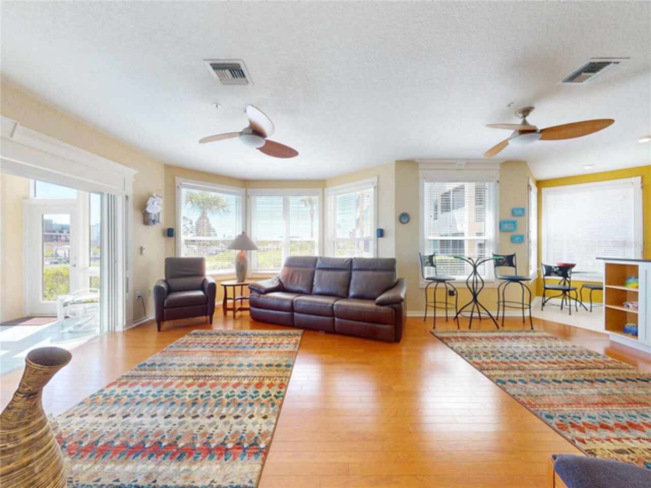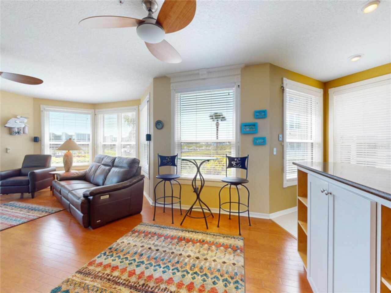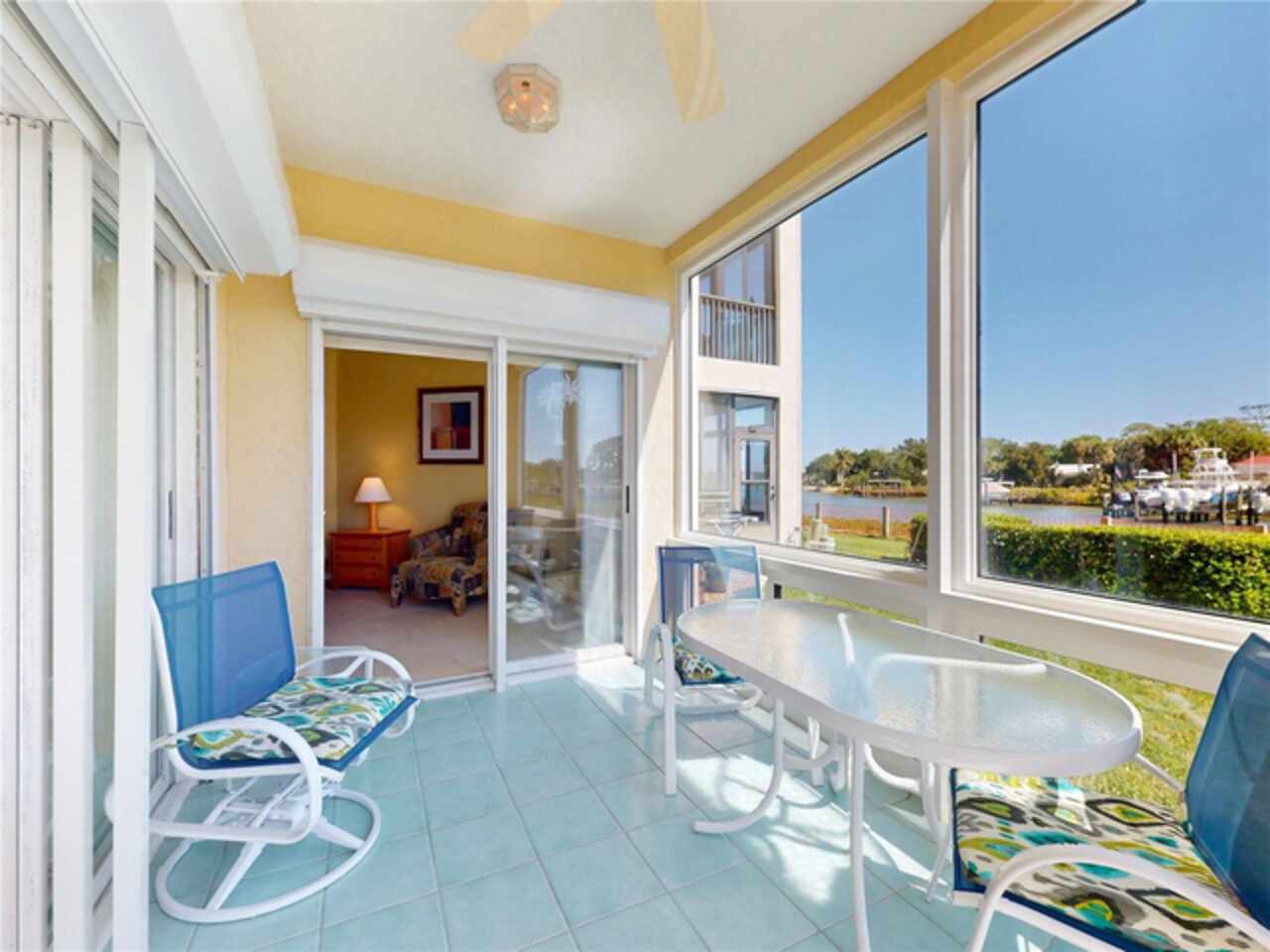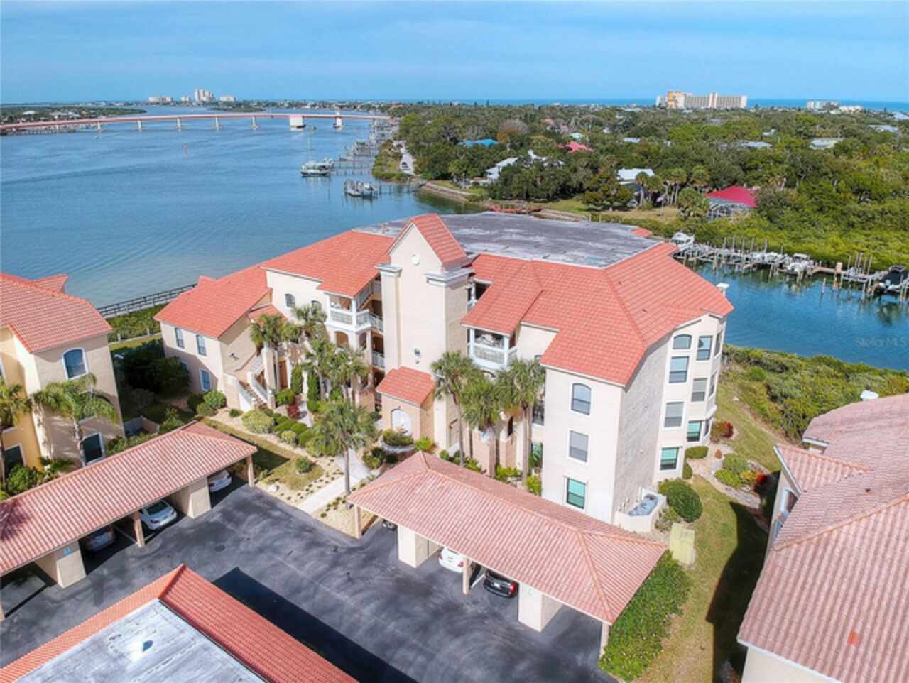 Waterfront serenity meets coastal charm in this spacious 3-bedroom, 2 bath first floor corner condo on the peaceful Callalisa Creek in New Smyrna Beach. Enjoy stunning water views from nearly every room with a wall of windows in the living room, dining area, and kitchen that bring in warm natural light and frame the tranquil beauty of the creek. From your glass-enclosed patio, take in panoramic views of the Intracoastal Waterway and North Bridge-a front row seat to dolphins surfacing, pelicans diving, and boats drifting by. Exterior features include a reserved covered parking space with an attached private storage unit. Interior features include an updated kitchen, engineered hardwood flooring and a Murphy bed in the guest room. Located in the sought-after Bouchelle Island community, residents enjoy resort-style amenities including two pools, a spa tub, a scenic half-mile Intracoastal walkway, a clubhouse, fitness room, and a tiki hut gathering area. Water lovers will appreciate the private boat launch, floating dock, and availability of dry and wet slips, as well as kayak storage (check waiting list). Stay active with tennis and pickleball courts, and practice your swing on the 18-hole chip and putt course. This is a rare opportunity to experience peaceful, island-style living in a vibrant community—where every day feels like a vacation.