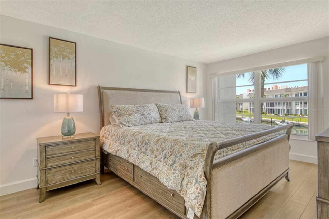 Make your dreams come true with this beautiful waterfront condominium located at the popular Longboat Harbour resort! Enjoy gorgeous views of the water the moment you step in. This newly renovated 2BD/2BA second floor unit offers a roomy open floor plan with plenty of natural light, is being sold turnkey furnished. New Luxury Vinyl flooring and hurricane windows has been installed throughout. The updated kitchen has Granite countertops and new appliances. Benefit from your own private washer and dryer located in the guest bathroom. The inclusive patio with new sliders oversees the canal as well as a partial view of the gulf. One assigned covered parking space is included. Sorry, no pets are allowed. Conveniently located on mid Longboat Key between the quaint towns of Anna Maria Island and Lido. Saint Armand's Circle and Downtown Sarasota is only minutes away with fine dining, specialized shopping, art galleries, Sarasota Orchestra, Van Wezel theater and more... Great investment property, second home or weekend getaway. Longboat Harbour resort is a gated community with on site management. Amenities include: four heated swimming pools, tennis courts, sauna room, art studio room, bike storage, BBQ grills, clubhouse, billiard room, woodshop facility, fitness center, pickleball courts, putting green, shuffleboard, kayaking storage, boat docks and a fishing station. Deeded beach access is located across the Street with a pavilion which has restrooms, showers, chair storage, car/boat washing. New roof 2025.