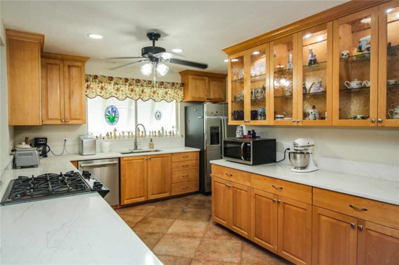 One or more photo(s) has been virtually staged. Step back in time and live like you retired early to focus on fishing, except with air conditioning and quartz countertops. This 3-bedroom, 2-bath canal-front retreat on Snead Island is where old Florida charm meets modern comfort and the occasional beer cooler full of snook and redfish. Got a boat? Perfect. Got two? Even better. There’s a concrete dock ready to handle your water toys and davits for hoisting them. With access to Terra Ceia Bay, Tampa Bay, and the Gulf, you can hit tarpon before breakfast, grouper before lunch, and be back in time to brag about it by dinner. The screened lanai is huge. Think “family reunion but with fewer awkward conversations.” It’s got that old fish camp vibe where you can sit in a chair, cast off the dock, and tell mostly true fishing stories while the grill sizzles away. Sunsets here? They are awe-inspiring. Inside, the kitchen’s rocking maple cabinets, quartz counters, and a gas range—because nothing says “I caught it” like searing your fish like a pro. The open floor plan keeps you connected to the canal view, so you’ll never miss the manatee rolling by while you’re reaching for another cold one. Bring your boat, golf cart, pets, and sense of being part of a community. This isn’t just a home; it’s the best part of the old Florida lifestyle that can be yours today.
