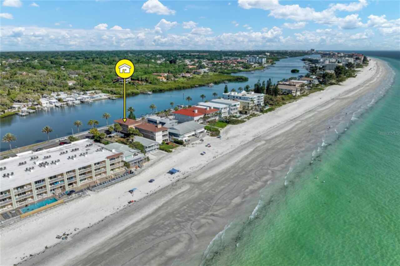 *********MOTIVATED !! **************** GORGEOUS Beach/ Waterfront Top Floor Condo in I. Rocks Beach. Built in 2002! Enjoy your open 10 x 24 patio in front directly across from the Intercoastal Waterway with unobstructed views! This is an ideal patio to watch the boats parade by at all times of the year !! This spacious 2 Bedroom, 2 Bathroom unit has an open plan design with cathedral ceilings making it appear much larger. Updated features include - Water Heater 2025, Washer & Dryer 2024, AC 2015, Dishwasher 2025. This community is 1 of 2 Buildings on the beach! Enjoy the convenience of walking to the Beach to left sidewalk of the rear building. Newer fence installed leading to the Beach! Some sprucing done to landscaping on outside for curb appeal. This unit is turn key and very well kept! All ages and pets are welcome. Rentals are allowed with a 30 d minimum. Nicely located near fine dining and shopping right on I. Rocks Beach. Being sold as-is for the sellers convenience. Offers welcome!