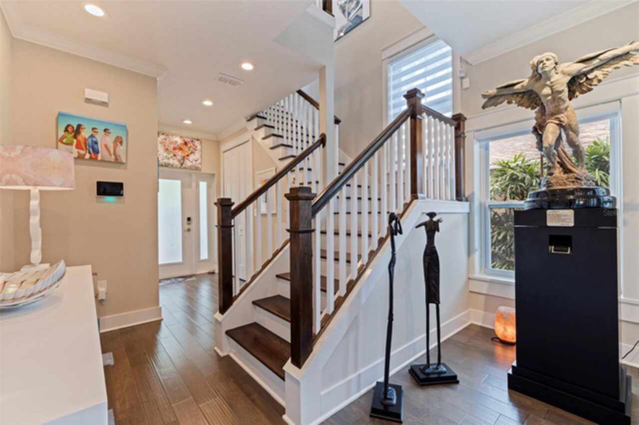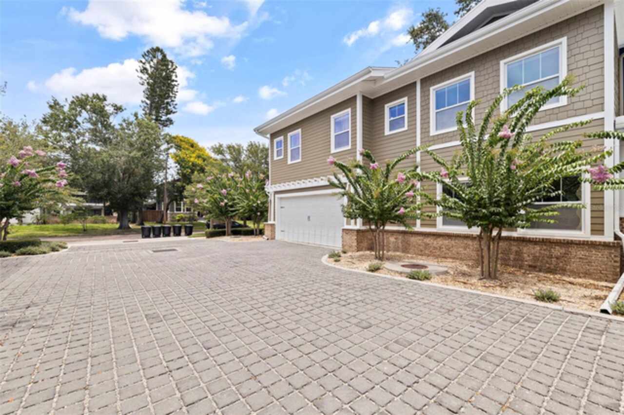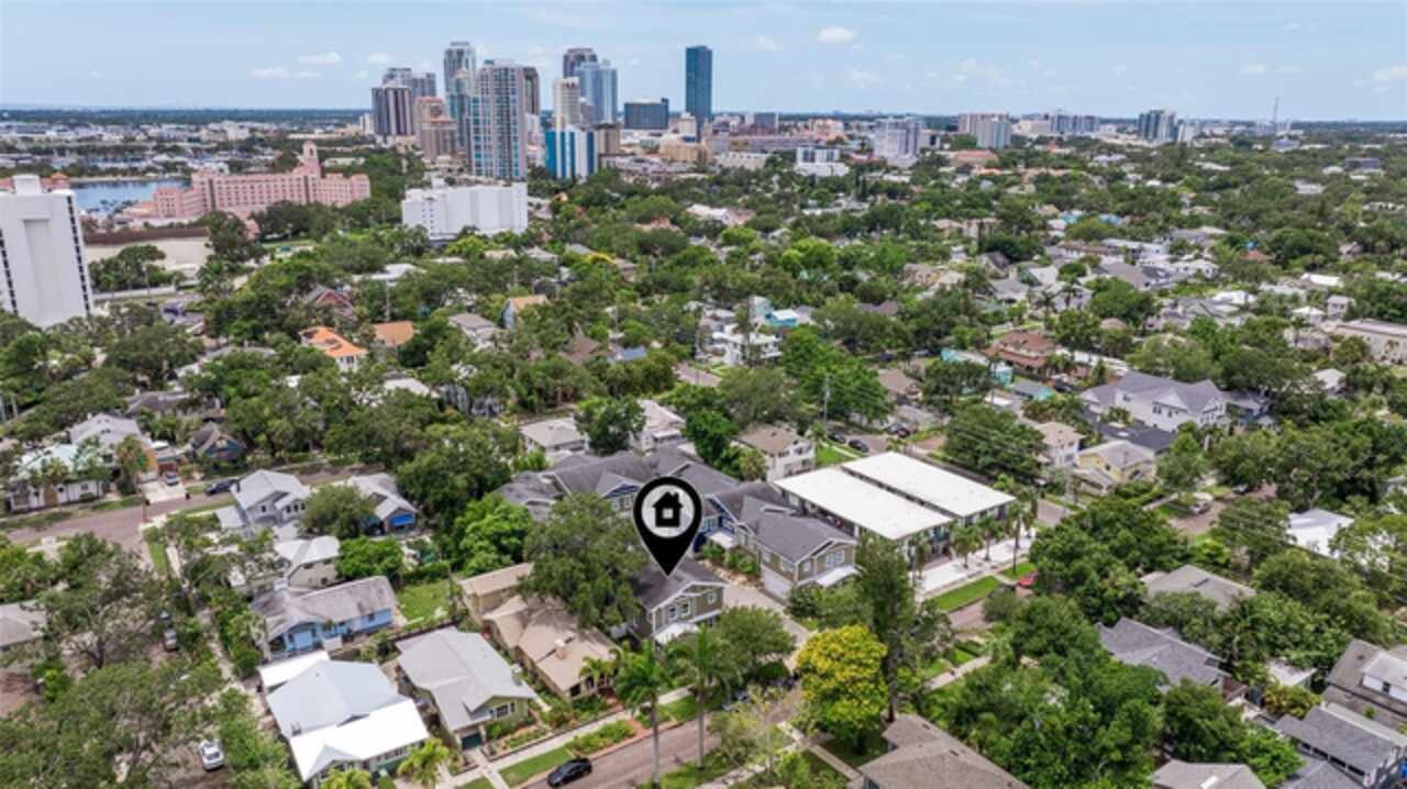 Located in the highly sought-after Historic Old Northeast neighborhood in a NON-FLOOD ZONE this impeccably designed 2-bedroom and den/bonus room, 2.5-bath townhome, built in 2017, offers the perfect blend of classic charm and modern convenience. With 2, 096 sq ft of thoughtfully designed space, this two-story masonry block construction townhome is positioned at the front of a boutique 8-unit community, offering a single-family home feel with a large front porch featuring a charming swing and a private, cozy backyard ideal for outdoor entertaining or grilling. Just a 10-minute walk and six blocks from vibrant downtown, this home is in the perfect location. The open-concept first floor is designed for both everyday living and entertaining, featuring a spacious dining room and a beautifully appointed kitchen with custom soft-close solid wood cabinetry, quartz countertops, a stylish backsplash, and stainless steel appliances with natural gas range. The living room effortlessly transitions into the kitchen and overlooks French doors that lead to the private backyard. An oversized 2-car garage is seamlessly integrated into the home, offering easy access. Completing this level is a well-designed half-bath. Upstairs, you’ll find a spacious family room, a private laundry room, and a generously sized guest bedroom with an en-suite bathroom. The primary bedroom is a true retreat, complete with a large walk-in closet and a spa-like en-suite bathroom featuring an oversized frameless glass shower and premium fixtures. This home is loaded with thoughtful upgrades, including a new HVAC system (2024), wood flooring throughout, crown molding, custom blinds, hurricane-impact windows and doors, built-in closet systems, a built-in Murphy bed, ceiling fans in every room, and lush landscaping in the backyard. The entire home is equipped with a whole-house water filtration system, ensuring the utmost comfort and convenience. Located just moments from the vibrant downtown area, with its eclectic shops, acclaimed restaurants, and picturesque Tampa Bay waterfront, this move-in-ready townhome offers the ultimate in comfort, style, and location. Experience Florida living at its finest—schedule your private showing today!