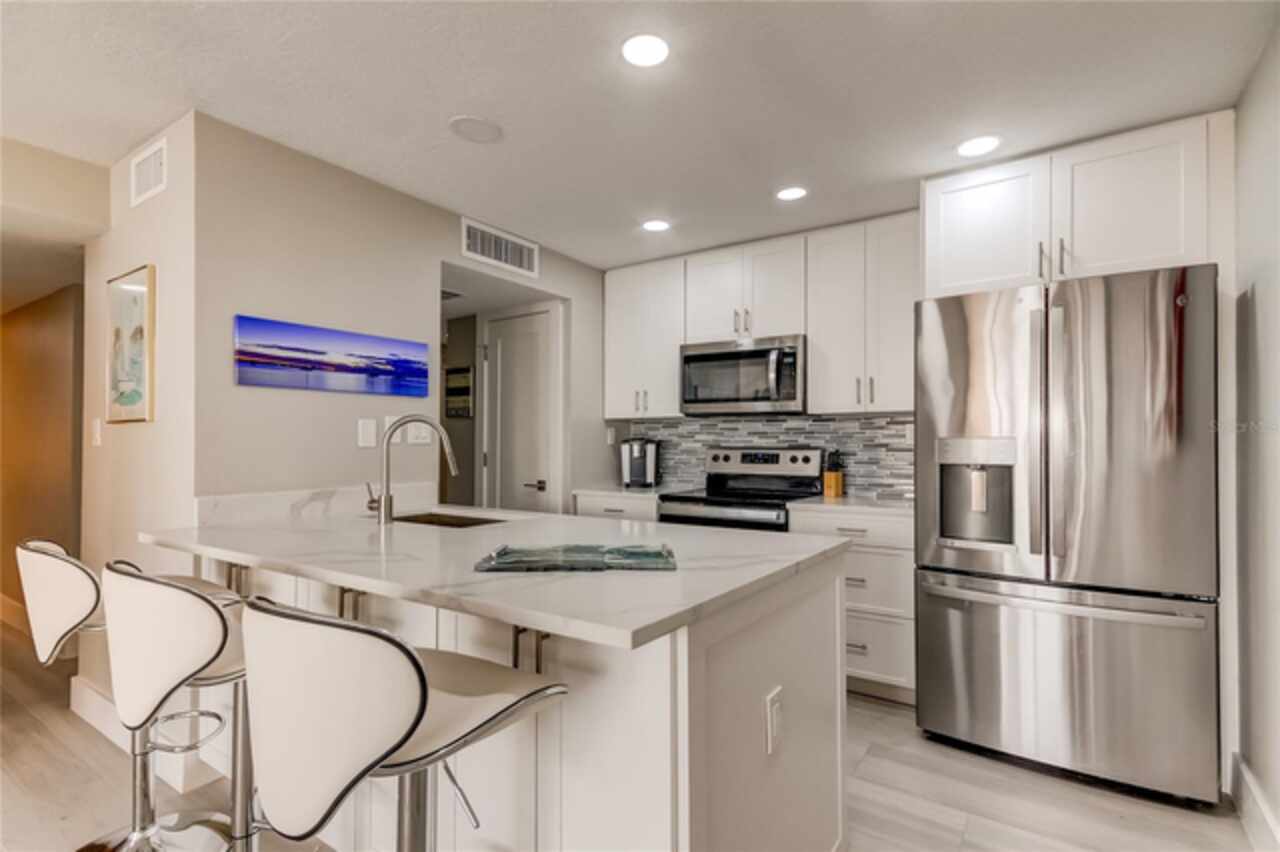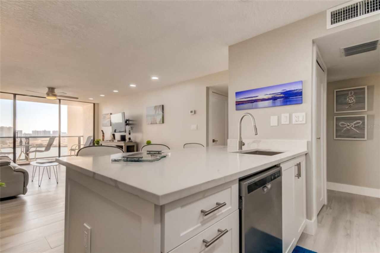 Under contract-accepting backup offers. Live the Ultimate Beachfront Lifestyle – Fully Renovated 2BR/2BA Condo with Oversized Balcony on South Clearwater Beach! This condo is located on the 12th floor and features an oversized private balcony offering unobstructed panoramic views of Sand Key, Clearwater Pass, and the Gulf of Mexico—all framed by a Brand-new hurricane-impact sliding glass door. A recessed entryway provides the perfect spot for a home office or computer desk, blending function with coastal elegance. Whether you're an investor, snowbird, or simply dreaming of a second home on the sand, this beautifully updated beachfront condo delivers the perfect combination of luxury, location, and income potential. Enjoy panoramic Gulf views, with dolphins and manatees often spotted right from your balcony. Nestled on the powdery sands of South Clearwater Beach, this condo has been completely renovated and professionally furnished to reflect modern coastal elegance. Step inside to discover all-new features, including: Luxury ceramic tile flooring, Ceilings with energy-efficient LED lighting, LED vanity mirror, modern barn door, and frameless glass shower door in the bathrooms shaker Kitchen cabinets, quartz countertops, and a stainless steel sink, Stainless steel appliances, New doors and fresh paint throughout the unit. A highlight of the community is the spacious plaza deck, which offers breathtaking views of the Gulf of Mexico—an inviting spot for residents to relax and connect with neighbors. Here is the Resort-style amenities include: 24-hour gated security, Covered private garage parking, guest parking, Gulf-front heated pool and sun deck, Grill area, Shuffleboard and bike storage, Well-equipped fitness center with sauna, Clubhouse and community room The building is currently undergoing a full renovation, soon delivering upgraded exterior amenities—including a brand-new building entrance and a modern redesigned lobby—enhancing both style and long-term value.