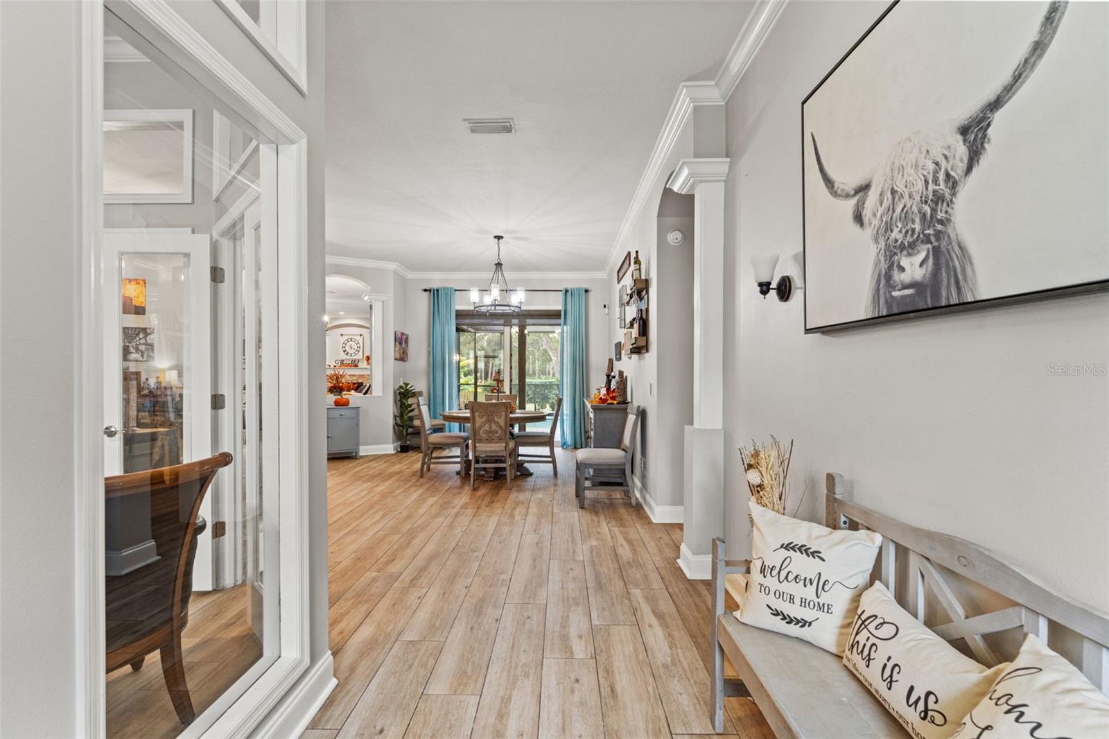 Under contract-accepting backup offers. Welcome to this one-of-a-kind home in Casey Lake Manors, located in the highly desired Carrollwood! This unique property sits on almost one acre and backs up to a conservation area—offering serene nature views and no direct rear neighbors. Enjoy open green space, privacy, and an extra-large backyard that truly feels like your own oasis. The homeowners have extensively updated both the interior and exterior, allowing you to simply move in and enjoy. Improvements include a brand-new roof and chimney, new gutters, resurfaced pool, new pool equipment, new screens, hurricane-impact windows and sliding doors, a new paver fire pit, and much more. (See attached “Updates List” for full details.). This home features a true split floor plan with four bedrooms plus a dedicated office filled with natural light and a beautiful palm tree view. The primary suite includes patio access, two closets, and a bright, spacious bathroom with a convenient walk-in shower. The formal dining room is light and inviting, with direct patio access for seamless al fresco dining. The kitchen offers ample cabinetry, stunning granite countertops with bar seating perfect for entertaining, and a cozy breakfast nook. The open layout between the kitchen and living room creates an ideal gathering space, complete with a wood-burning fireplace and multiple access points to the patio. Step outside and enjoy the Florida lifestyle by the saltwater pool on your covered patio while taking in peaceful nature views. Additional highlights include a three-car garage and a large paver driveway. Located within the highly rated Carrollwood school district, this home offers an unbeatable location with access to monthly farmers markets just a brisk walk away, the Carrollwood Country Club, and the Carrollwood Village Park. You’ll also enjoy being close to restaurants, cafés, shopping, and having quick access to Tampa International Airport and the City of Tampa.