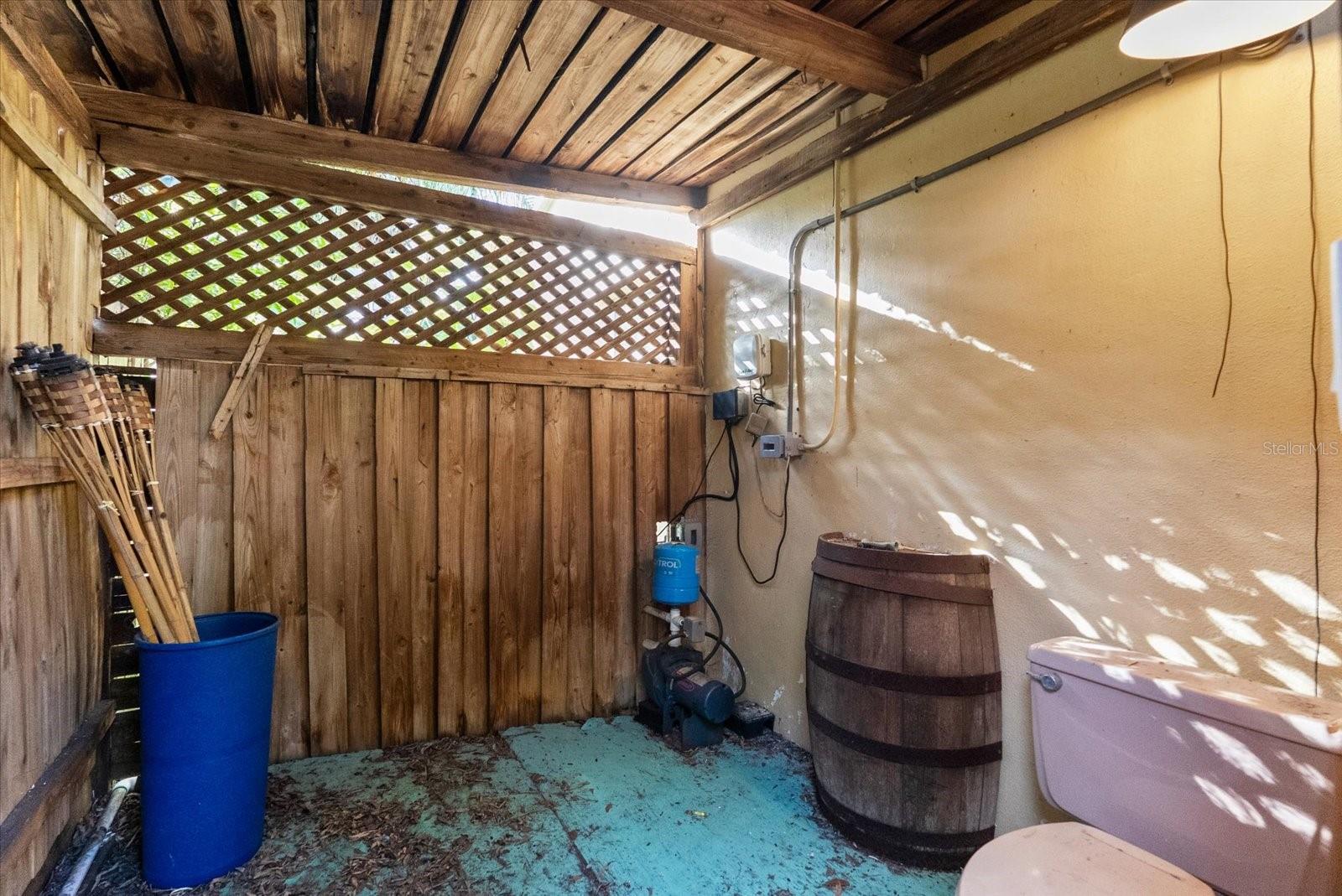 Outdoor Shower, Rain Gutters, Sliding Doors