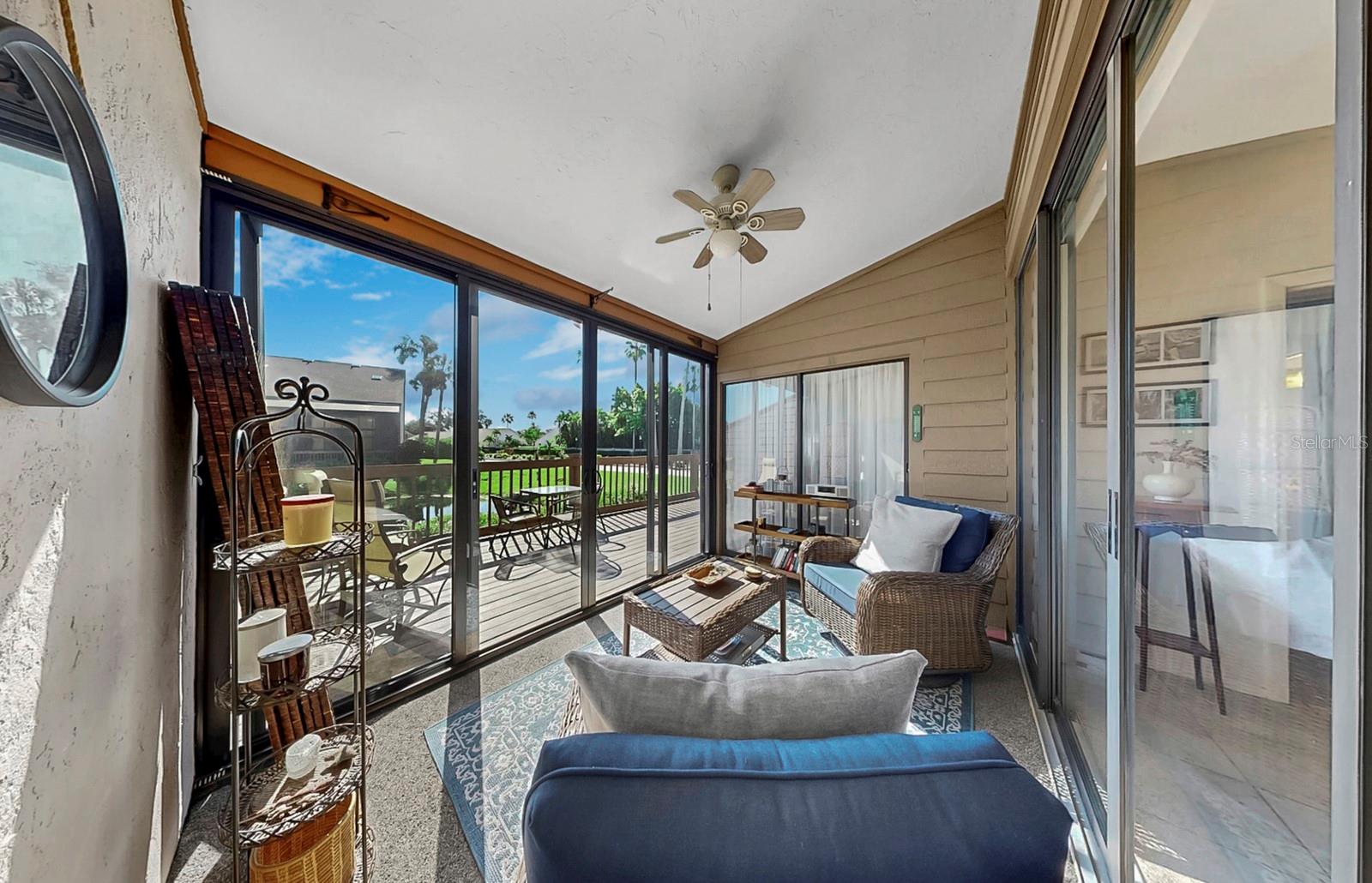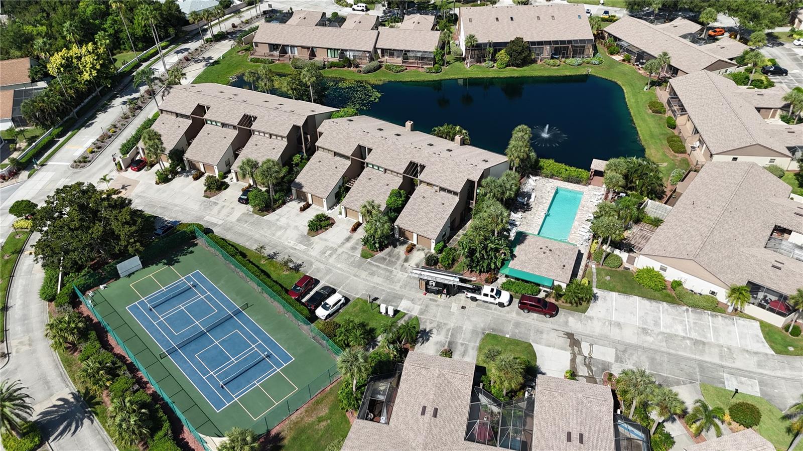 Under contract-accepting backup offers. RARELY available- move in ready!!! Welcome to your Sarasota retreat with this charming 2 bedroom, 2 bathroom condo tucked away in the serene community of Forty-Three West with NEW roof (summer '24), new HVAC(2023), newer water heater, and new cage on front lanai(2024). Upon entering through through the front gate, you'll be pleasantly surprised with a large screened in lanai with plentiful space for seating and enjoying the beautiful landscaping as well as a breezeway from the 1-car garage to the front door! Inside, you’ll find a bright, open floor plan with vaulted ceilings, fresh neutral paint, plentiful natural light throughout, and abundant storage space. The kitchen offers ample cabinet space, granite countertops, and a generously sized pantry while flowing seamlessly to the dining area and living room which is perfect for daily living and entertaining. From the living room sliders, enter into the Florida room which opens to the rear deck through a second set of sliders where you can take advantage of the gorgeous pond views! Enjoy the split floor plan with the secondary bedroom towards the front of the home with sliders to the screened-in lanai and conveniently located by the hall bath with a tub/shower combo, while the primary suite is located in the rear of the home for added privacy and features a spacious layout, walk-in closet, and private en-suite bathroom with a shower. The primary bedroom also features sliders that exit out onto the rear deck, perfect for catching the morning sunrise! Tile flooring throughout all main living areas and bathrooms and new LVP flooring in both bedrooms- NO carpet here. Conveniently located for easy access to main roadways, shopping, dining, medical facilities, and of course the beautiful gulf coast beaches! Don’t miss your chance to make this Sarasota gem yours—schedule your showing today!
