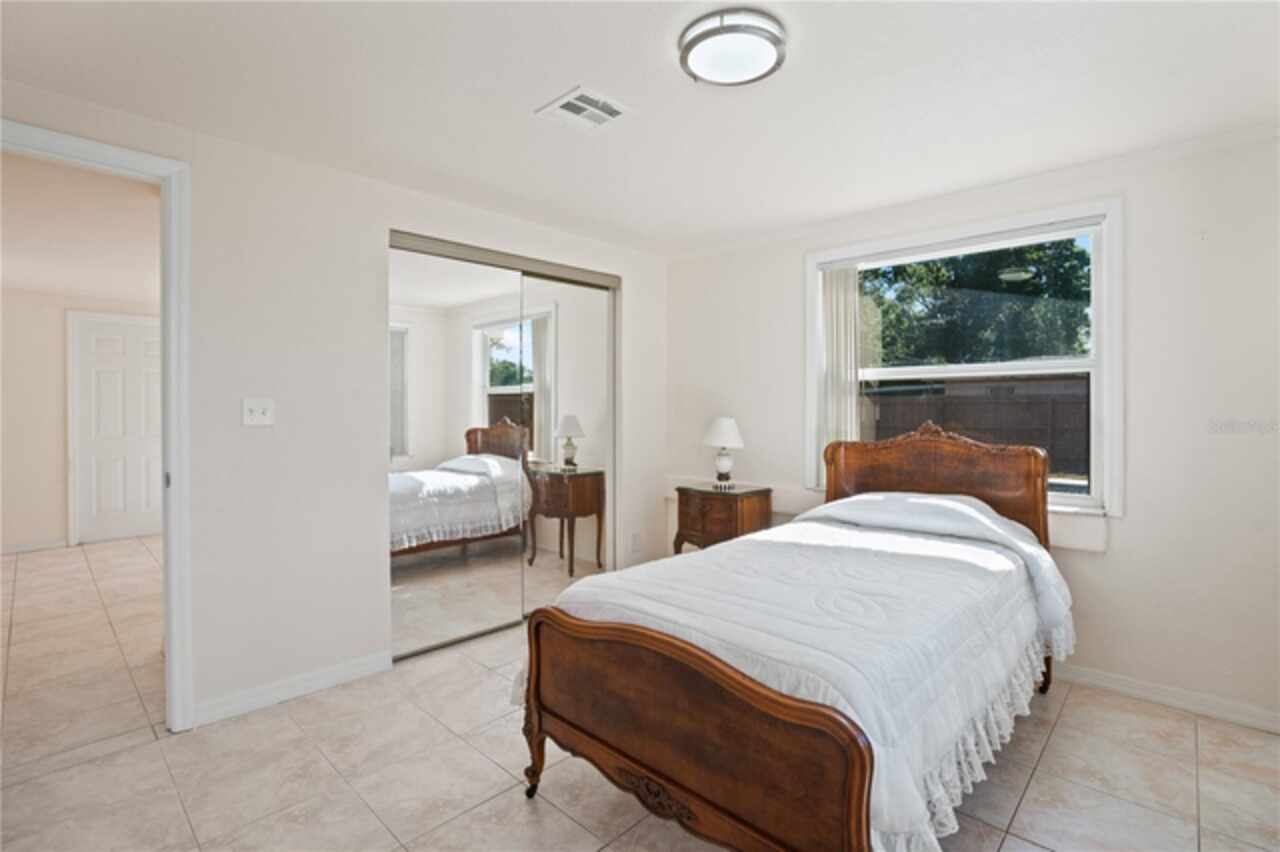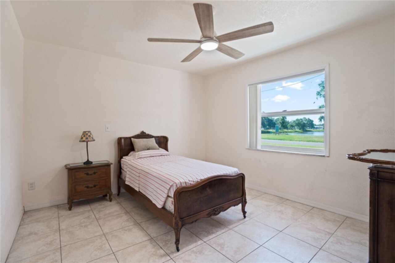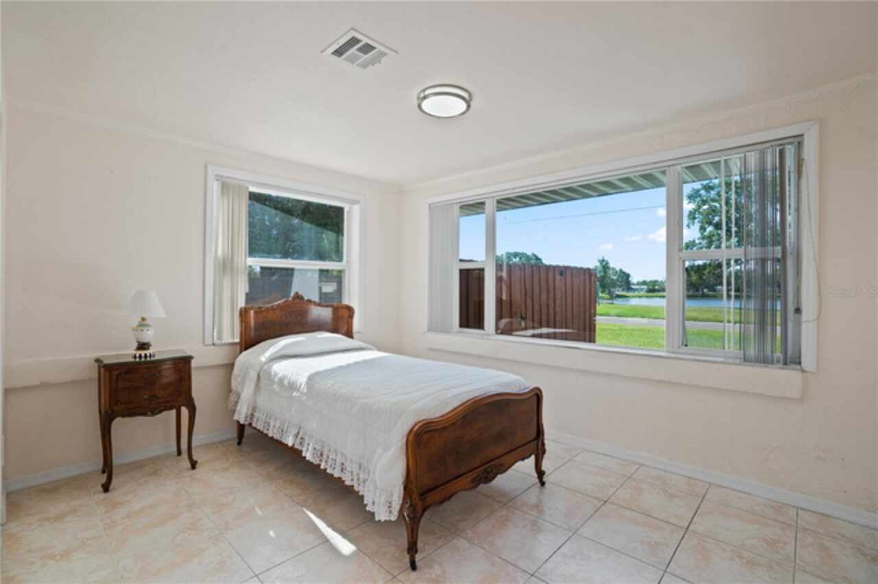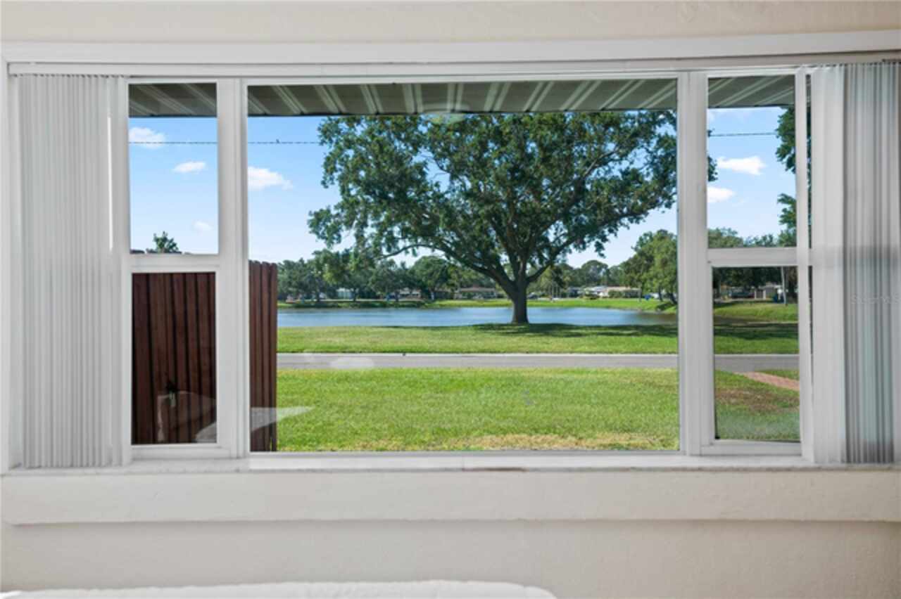 Check out this mid century built 3 bed 2 bath pool home overlooking the scenic Leslee Lake. This home is solid as a rock and is located on an over sized corner lot with an attached single car garage with a giant driveway for multiple cars. The view is never ending with lots of wild life. Very serene setting. The kitchen is very functional and has a true eat in breakfast nook overlooking the lake. Adjacent to the living room is a large bonus sun room that overlooks the lake. There is a walk in shower in the master bath and tub/shower combo in the guest bath. There are 3 bedrooms plus an extra bedroom that is currently set up as an office overlooking the large sparkling blue pool and spa. The yard is completely fenced for your Pets. Central location everything you need is minutes away.