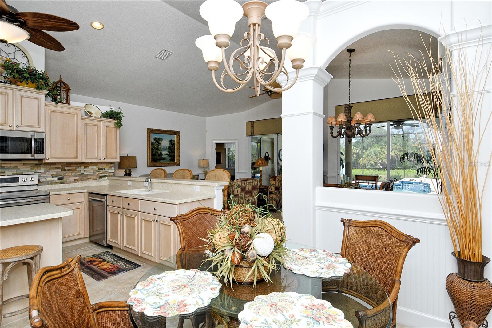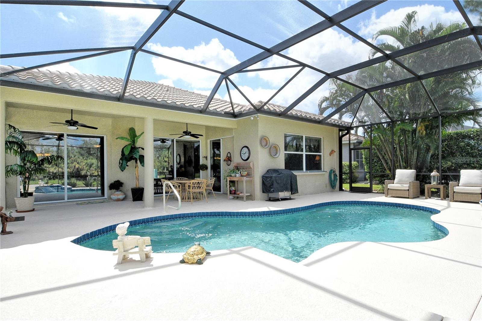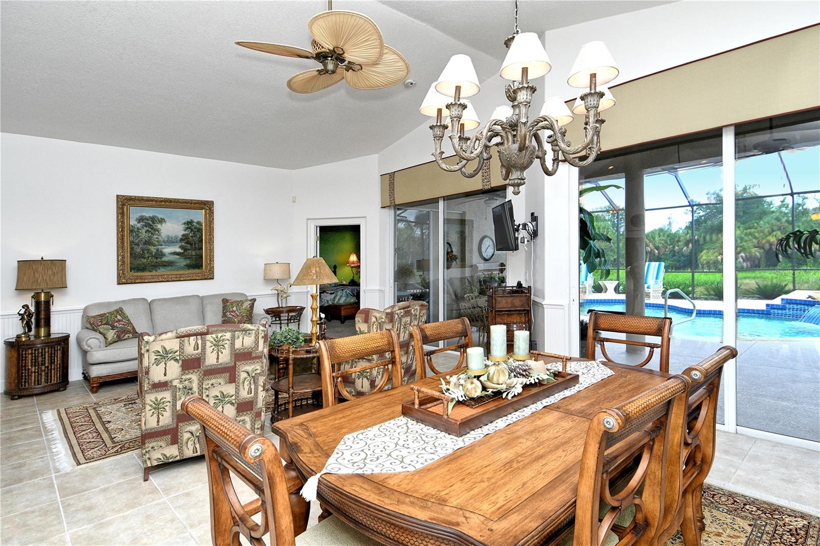 This is the property you have been waiting for! This absolutely gorgeous Innisbrook model Patio Home in Heritage Oaks Golf & Country Club features nearly 2, 000 square feet of living space and a stunning pool overlooking the picturesque water and preserve views in a tranquil and quiet part of the community. This lovely home has 2 bedrooms, 2 full bathrooms, a den/study that can double as a third bedroom, an oversized screened lanai with a gorgeous free form swimming pool, and a spacious 2 car attached garage. The owners of this property have maintained the property impeccably well and it shows! Many recent updates have been done to the home including a new roof (2024), a new paver driveway (2024) new air conditioning system (2024), new painting of pool cage and patio floor, and the property has been re-piped/re-plumbed (2023). As soon as you walk through the front door, you’re greeted with a ton of natural light flowing in through the rear slider doors. The decorative chair rail and beadboard details really add to the beauty of this home and the soaring vaulted ceilings make the space feel open and large, perfect for entertaining friends and family. Even the dining room features a spectacular built-in area with crown molding, decorative details, recessed lighting, and a cabinet array for additional storage. The den/study is a perfect flex space complete with luxury vinyl flooring, a usable built-in desk, and enough space that allows the room to be used conveniently as another bedroom if need be. The large primary suite provides plenty of space with dual walk-in closets, and a sizable bathroom complete with double sinks, a large soaking tub and shower. As you make your way outside, you’ll fall in love with the sounds of water, the beautiful swimming pool with a flowing waterfall, and the panoramic views of water and nature this property features. It is truly a spectacular sight! Relax in the evening and watch the abundance of wildlife that frequent this Certified Audubon Neighborhood. Heritage Oaks is known for its pristine 18-hole golf course, har-tru tennis courts, fitness center, 24-hour security, an impressive recently renovated clubhouse with 2 restaurants including the sensational 19th Hole Lounge, 5 heated swimming pools, and a calendar of events packed with activities. Take a tour of this outstanding property today!