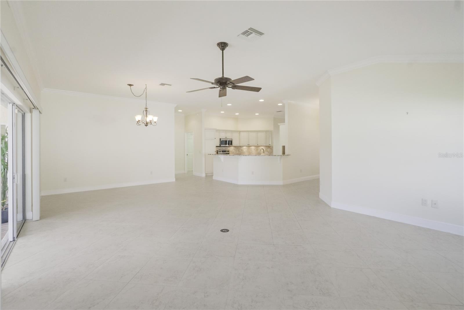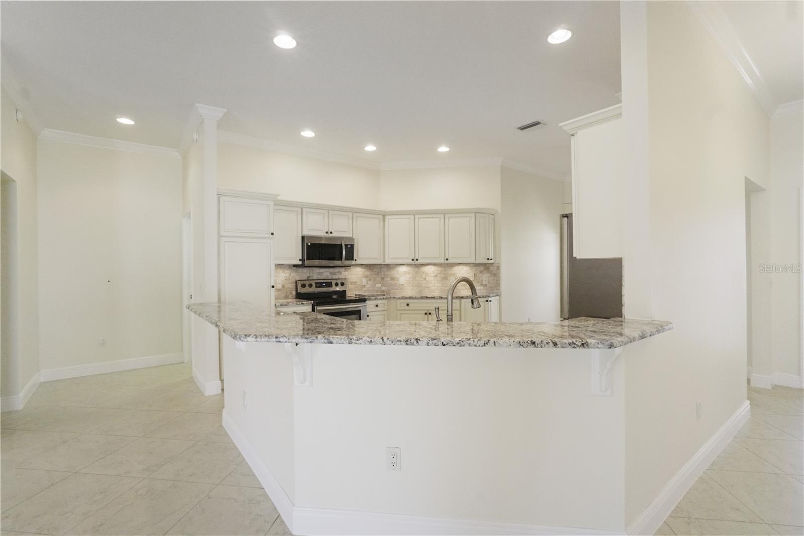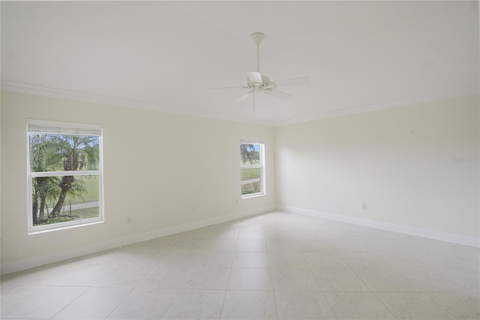 Spectacular Designer Home, the popular Gardenia model with breathtaking golf course views. Located directly on the 5th Fairway of the Caroline Golf Course with sweeping Double Fairway Views! NO BOND!!! This beautifully maintained home features a golf cart garage, a new Roof (2021), A/C (2017), and elegant upgrades throughout including 19” ceramic tile flooring, crown molding, and 5” baseboards. The gourmet kitchen is highlighted with granite countertops, newer stainless steel appliances—including a 2-door/2-drawer refrigerator, large microwave oven, range, and dishwasher—perfect for the chef at heart. The spacious primary suite offers a Roman shower, private water closet, and granite dual vanities. Enjoy true Florida living with an expanded outdoor oasis, featuring a covered lanai with summer kitchen and an additional birdcage enclosure, perfect for entertaining while overlooking the golf course. Just a short walk to the mail station, adult pool, and shuffleboard, or a quick car or golf cart ride to the family pool at Captiva Cay Recreation Center. Only 10 minutes by golf cart to Lake Sumter Landing where you’ll find shopping, groceries, dining, and nightly entertainment. A 2017 Yamaha golf cart is included, making this the complete Villages lifestyle package!