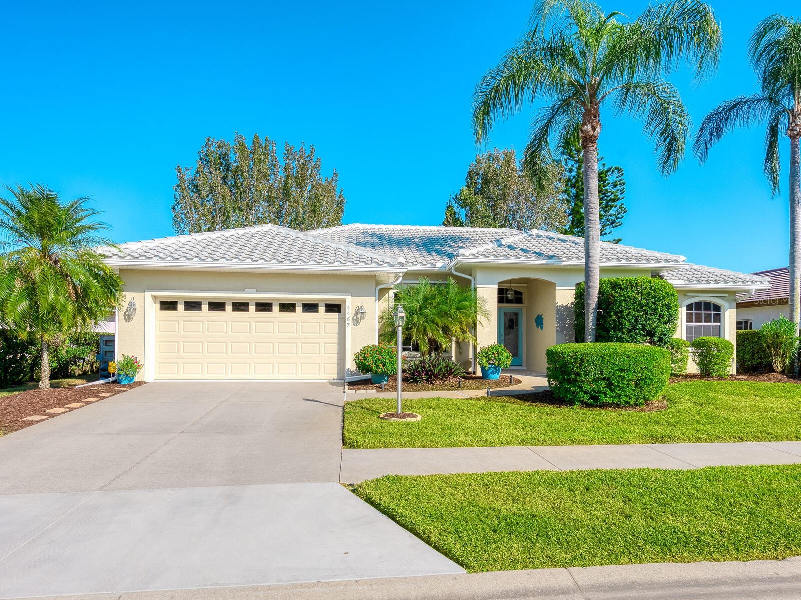 Under contract-accepting backup offers. This exceptional four-bedroom, three-bath, lakefront residence offers an ideal layout for entertaining and family living. The thoughtfully designed split floor plan includes a convenient pool bath accessible from the fourth bedroom. Two guest bedrooms share a well-appointed bath, with a pocket door for added privacy. The primary suite features direct pool access and a spa-like en-suite bath, complete with dual vanities, a walk-in shower, a soaking tub and custom pullout cabinetry. The updated gourmet kitchen is equipped with a large breakfast bar, a dedicated dining nook, and a dry bar with glass-front cabinetry and pullout drawers. Positioned adjacent to the family room, it offers seamless flow and panoramic views of the swimming pool and lake. Plus, you can relax, knowing all the heavy lifting has been done in this home, so it is move-in ready. It has a new roof, has been re-piped, has clear hurricane shutters, a new electrical panel and a four-point inspection. Additional features include a private office with French doors, a two-car garage with a workbench, a laundry/ mud room with a sink and extra storage, a large screened lanai and heated swimming pool. Start your day with a dip in the pool or a coffee with a long view of the lake. McIntosh Lake is a well-maintained community with access from either Wilkinson Road or McIntosh.