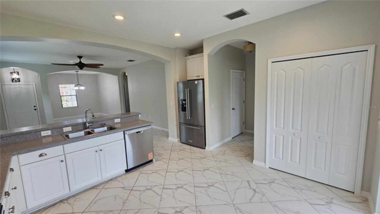 Welcome to this impeccably maintained, like-new home nestled within a tranquil gated community built by renowned Neal Homes. This peaceful neighborhood offers low HOA fees and boasts resort-style amenities, including a modern clubhouse complete with a fireplace and a full kitchen, courts for pickleball and bocce ball, and a large, resort-style community pool. Inside the home, you’ll find three bedrooms and two full bathrooms, including a spacious primary suite with a generous walk-in closet. The interiors were just freshly painted, and the exterior was professionally power washed, making this home truly move-in ready. The open-concept kitchen is designed for both functionality and style, featuring Corian countertops, a large pantry, and brand-new stainless steel appliances—including a natural gas range and premium KitchenAid refrigerator. An adjoining dining area provides the perfect spot for family meals or entertaining. The oversized laundry room offers ample space and accommodates a full-size washer and gas dryer. Step outside to a screened lanai outfitted with a tropical-style ceiling fan, perfect for enjoying Florida evenings. Just steps away, the neighborhood pond offers leisurely catch-and-release fishing and several hiking trails including Sleeping Turtles Preserve on the Myakka River and The Carlton Reserve. Additional highlights include hurricane shutters, a security system, and the advantage of being located in an X flood zone—meaning no flood insurance is required. Conveniently situated close to schools, a fire station, and just 12 minutes from the beach, this home is also minutes away from the new Sarasota Memorial Hospital on Laurel Road and offers easy access to I-75 for commuting. This home delivers the ultimate combination of comfort, convenience, and lifestyle. Don’t miss out on the opportunity to make it yours!
