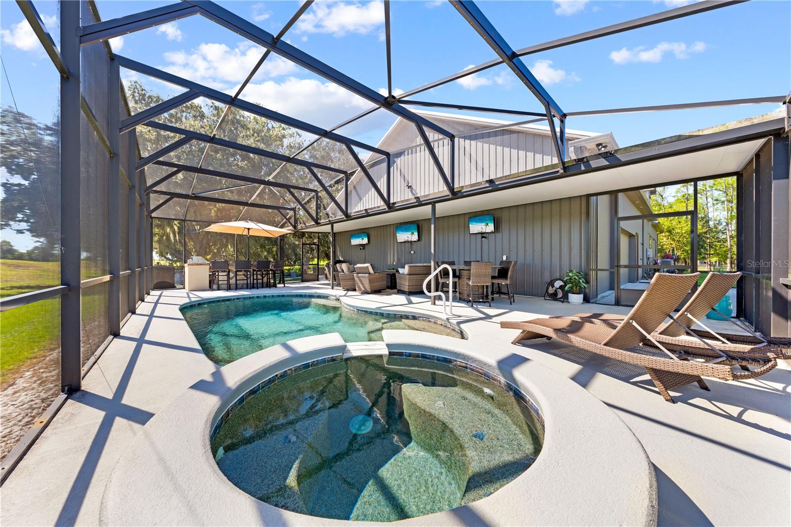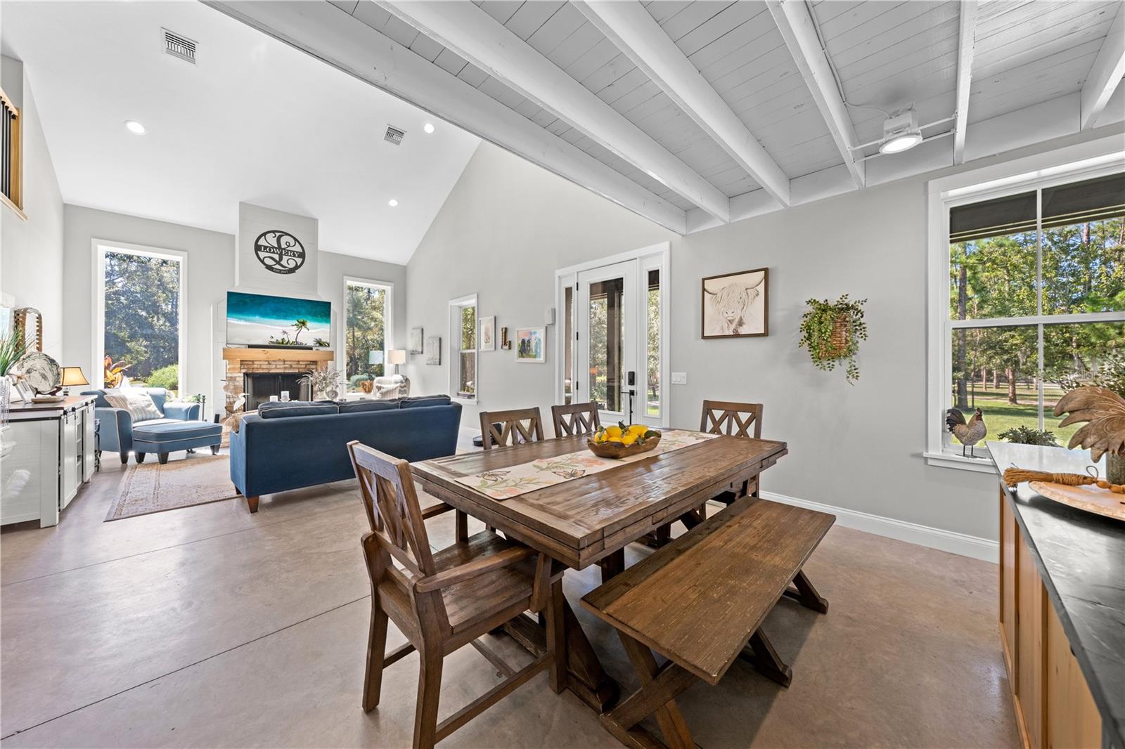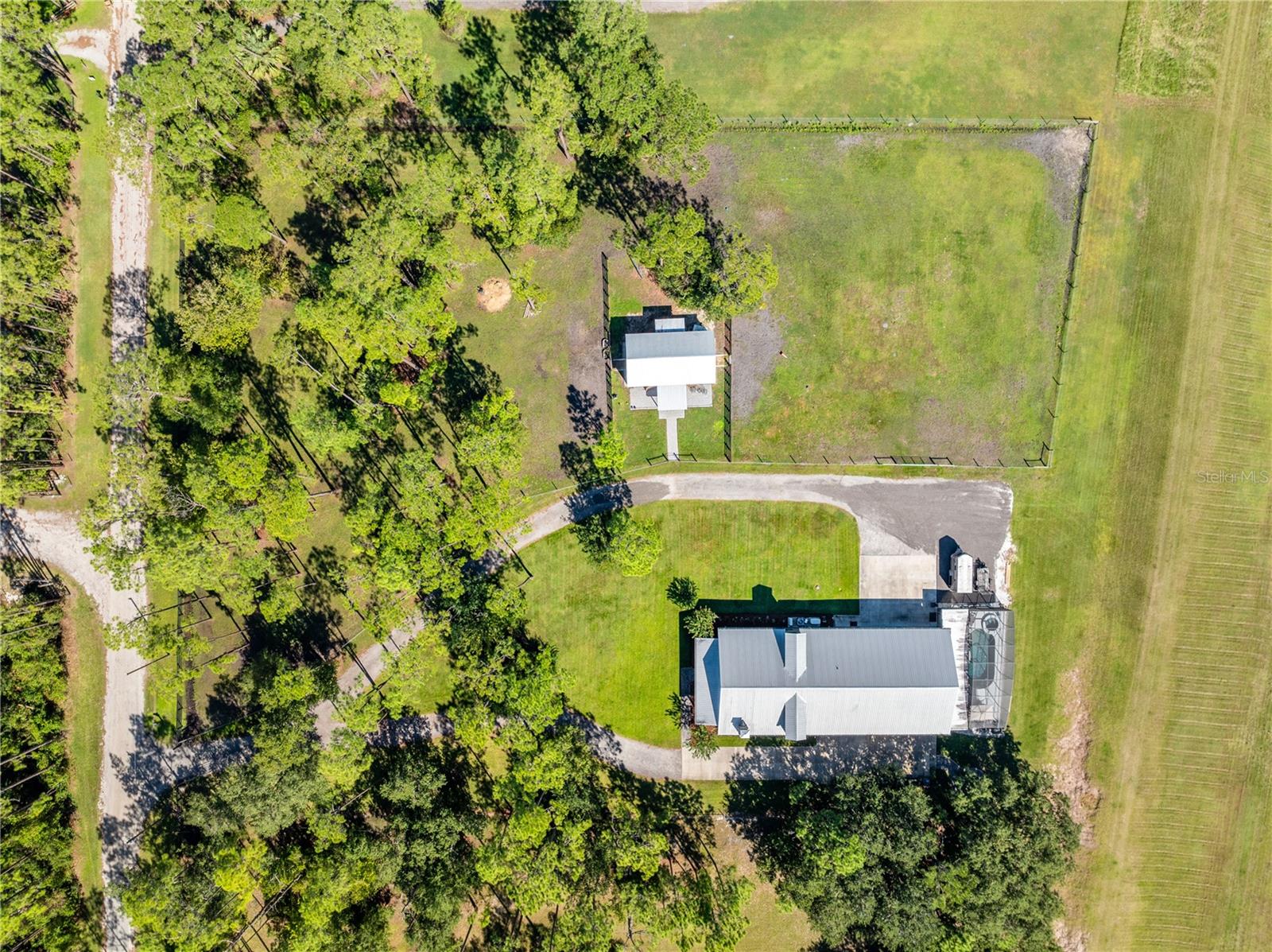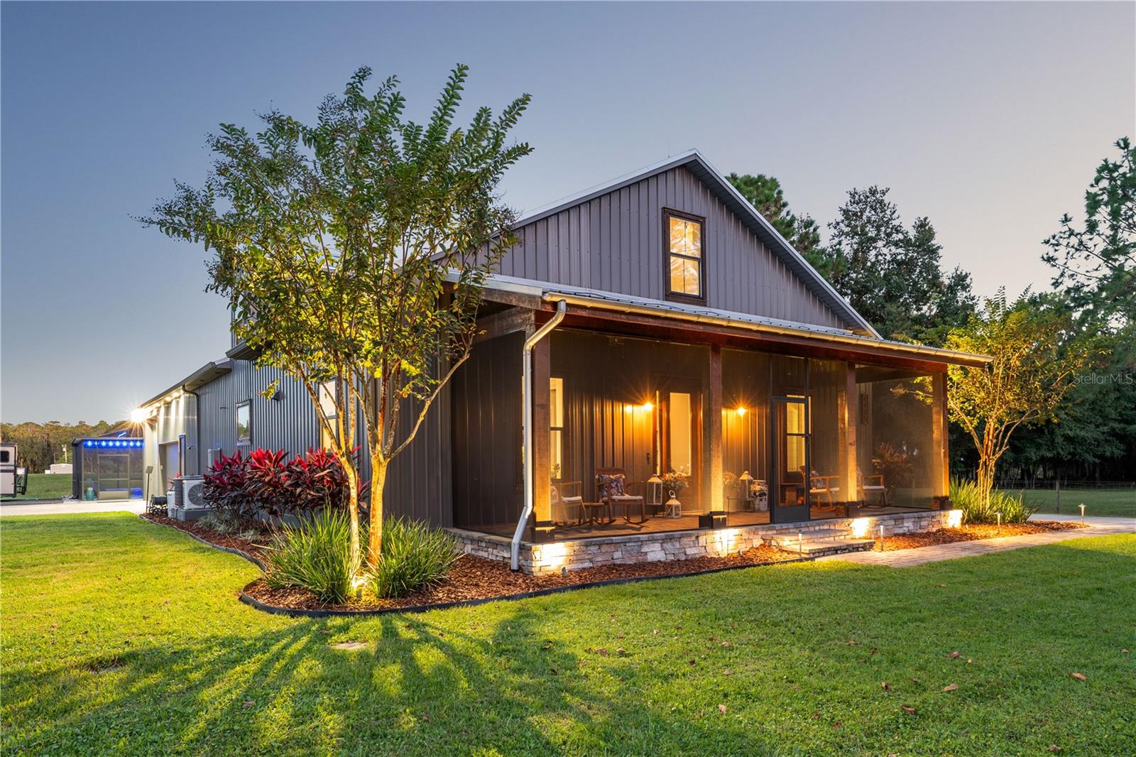 Under contract-accepting backup offers. Check it Out! You’re turning down a quiet country lane, where your private two-acre retreat waits — a sleek modern barndominium that perfectly blends rustic charm with contemporary luxury. As you step along the paver walkway toward the screened front porch, solid cedar porch post and beams, the tongue-and-groove ceiling overhead hints that everything inside was built with intention. The moment you open the door, sunlight glows across stained concrete floors, and the open living room stretches upward to a loft balcony — giving you that “wow” feeling every time you walk in. The kitchen is where you’ll want to linger: custom cabinetry, quartz countertops that shimmer just right under the lights, stainless appliances, a gas range with a vent hood, and a hidden cabinet pantry that feels like your own secret. Dinner nights, morning coffees, or Saturday brunch — it all just works here. Your primary suite is on the main floor, a private sanctuary with a freestanding tub and walk-in shower that could make a spa jealous. Upstairs, two more bedrooms share a full bath, with a loft and office/den perfect for working, relaxing, or just sneaking away for a quiet moment overlooking the living area below. Step outside, and life gets even better. There’s a heated pool with a spa under a screened enclosure, an outdoor firepit surrounded by pavers for those crisp evenings, and just beyond that — a two-stall horse barn with power, water, and fenced paddocks ready for your four-legged companions. And don’t forget the dream garage — over 2, 000 square feet of epoxy floors, AC, jackshaft auto-lock doors, and enough space for cars, hobbies, or toys. Plus, a whole-house generator keeps life running smoothly no matter what. This is more than a home — it’s where country peace meets refined living. From morning coffee on the porch to starlit nights by the pool, every detail says: this is the good life — right here.