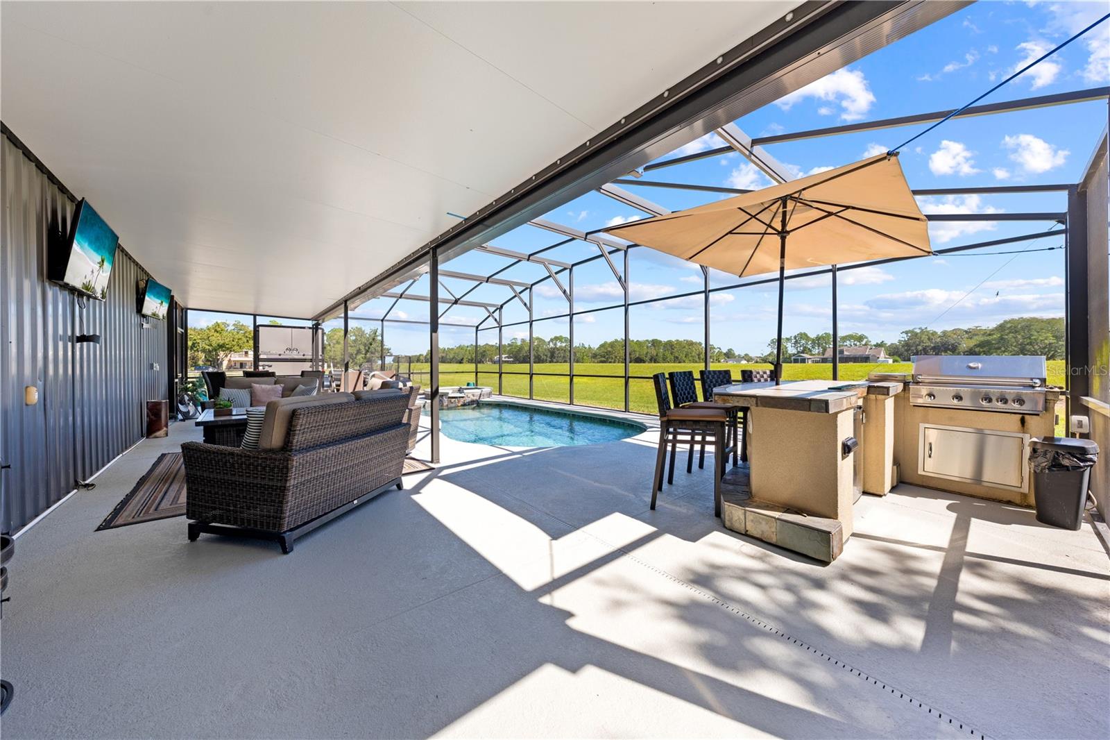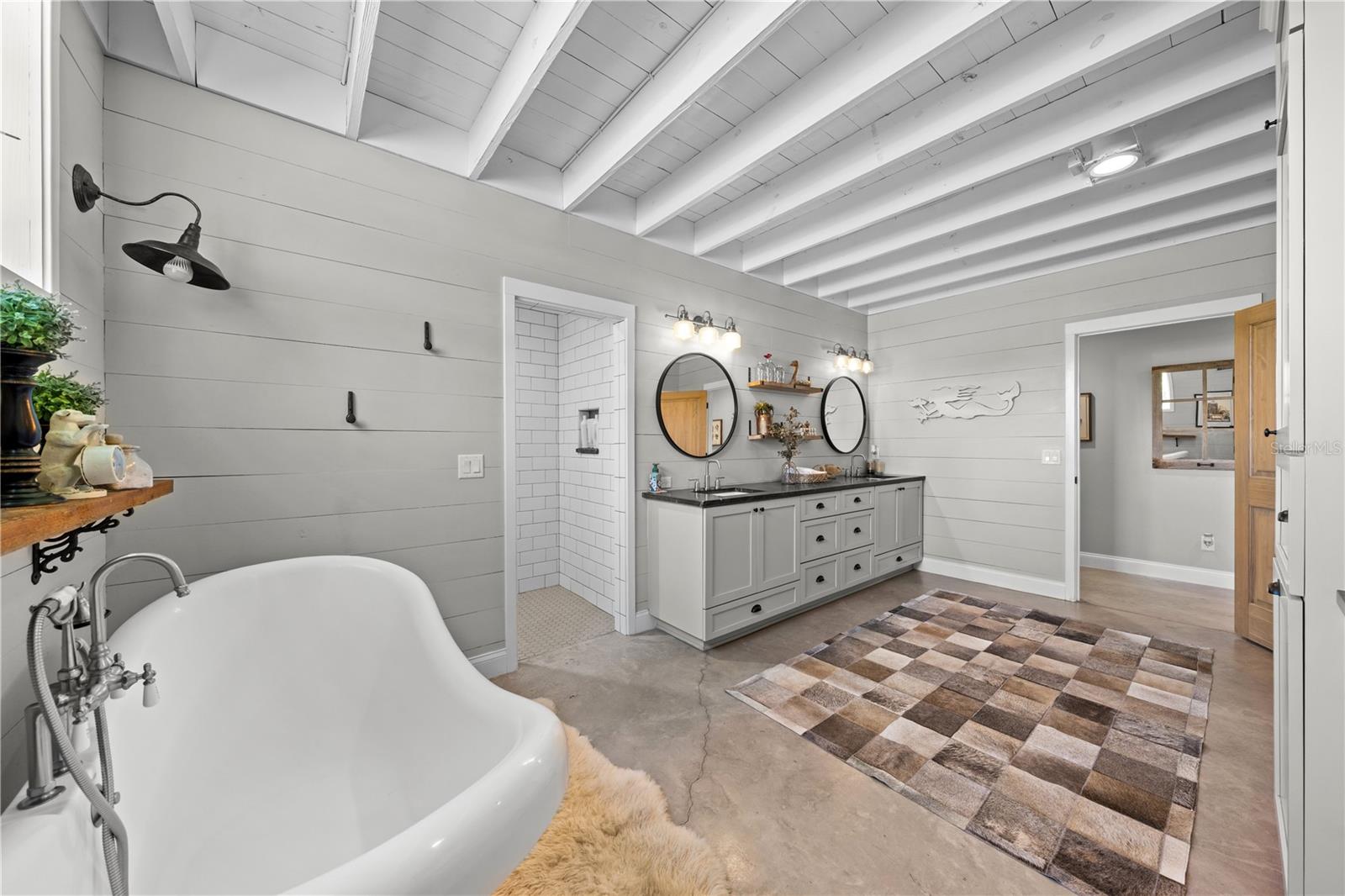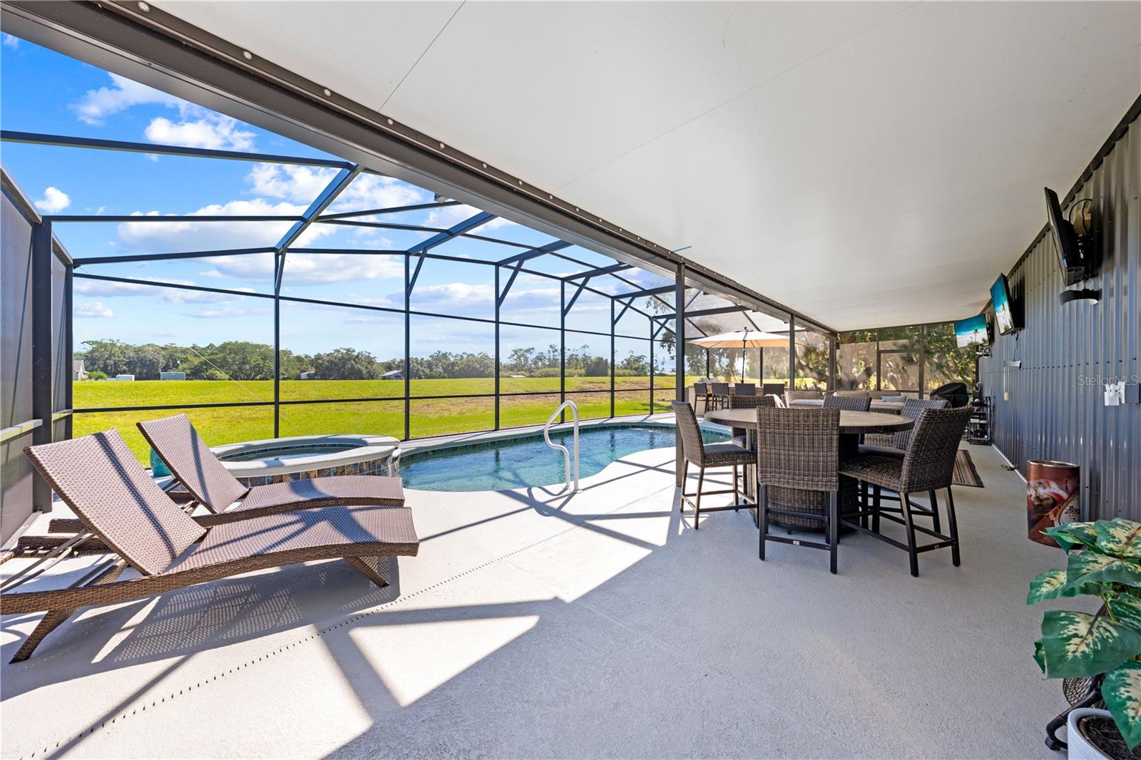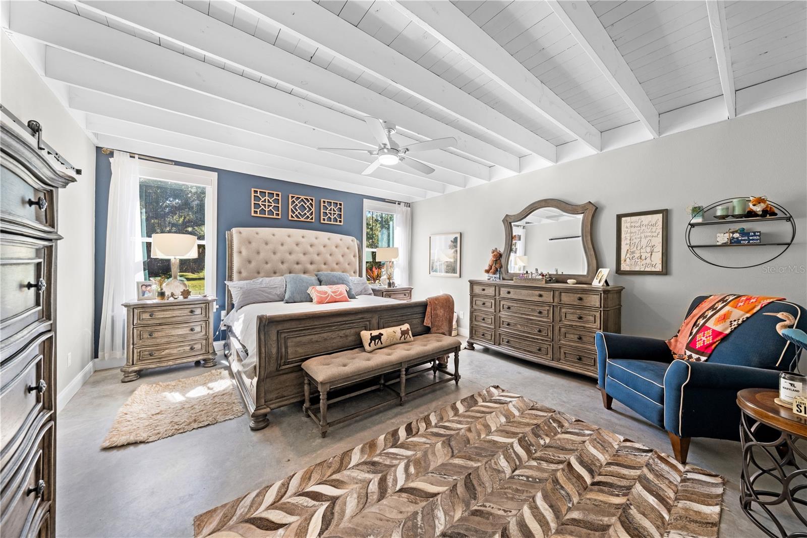 Under contract-accepting backup offers. Check it Out! You’re turning down a quiet country lane, where your private two-acre retreat waits — a sleek modern barndominium that perfectly blends rustic charm with contemporary luxury. As you step along the paver walkway toward the screened front porch, solid cedar porch post and beams, the tongue-and-groove ceiling overhead hints that everything inside was built with intention. The moment you open the door, sunlight glows across stained concrete floors, and the open living room stretches upward to a loft balcony — giving you that “wow” feeling every time you walk in. The kitchen is where you’ll want to linger: custom cabinetry, quartz countertops that shimmer just right under the lights, stainless appliances, a gas range with a vent hood, and a hidden cabinet pantry that feels like your own secret. Dinner nights, morning coffees, or Saturday brunch — it all just works here. Your primary suite is on the main floor, a private sanctuary with a freestanding tub and walk-in shower that could make a spa jealous. Upstairs, two more bedrooms share a full bath, with a loft and office/den perfect for working, relaxing, or just sneaking away for a quiet moment overlooking the living area below. Step outside, and life gets even better. There’s a heated pool with a spa under a screened enclosure, an outdoor firepit surrounded by pavers for those crisp evenings, and just beyond that — a two-stall horse barn with power, water, and fenced paddocks ready for your four-legged companions. And don’t forget the dream garage — over 2, 000 square feet of epoxy floors, AC, jackshaft auto-lock doors, and enough space for cars, hobbies, or toys. Plus, a whole-house generator keeps life running smoothly no matter what. This is more than a home — it’s where country peace meets refined living. From morning coffee on the porch to starlit nights by the pool, every detail says: this is the good life — right here.