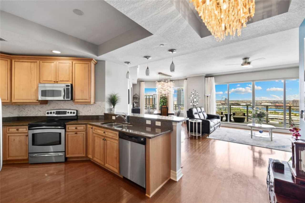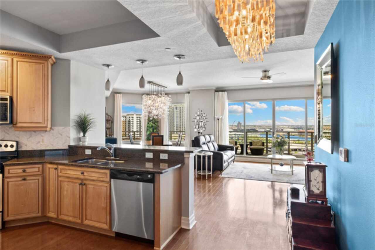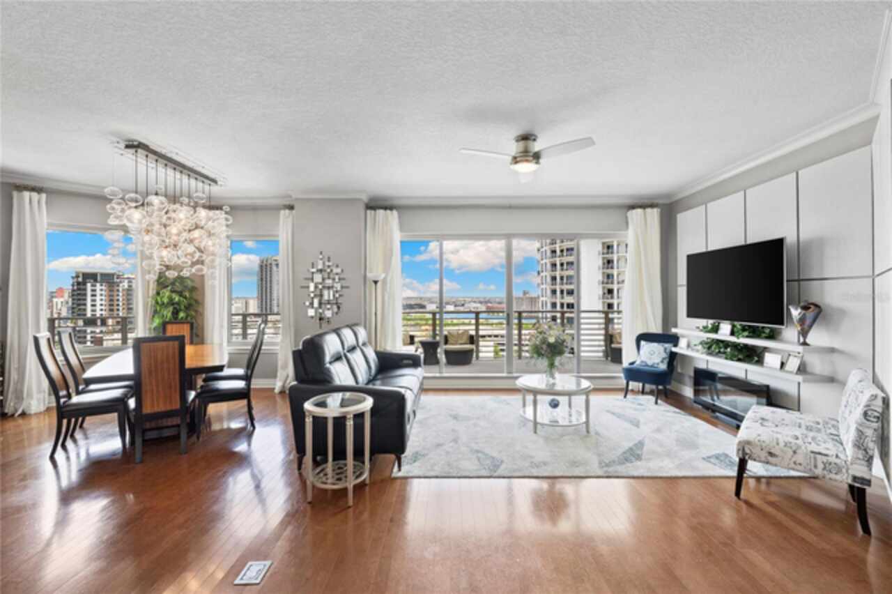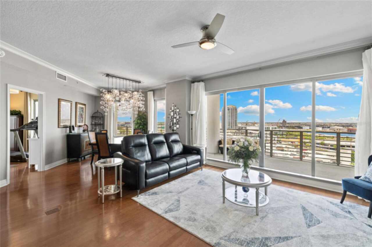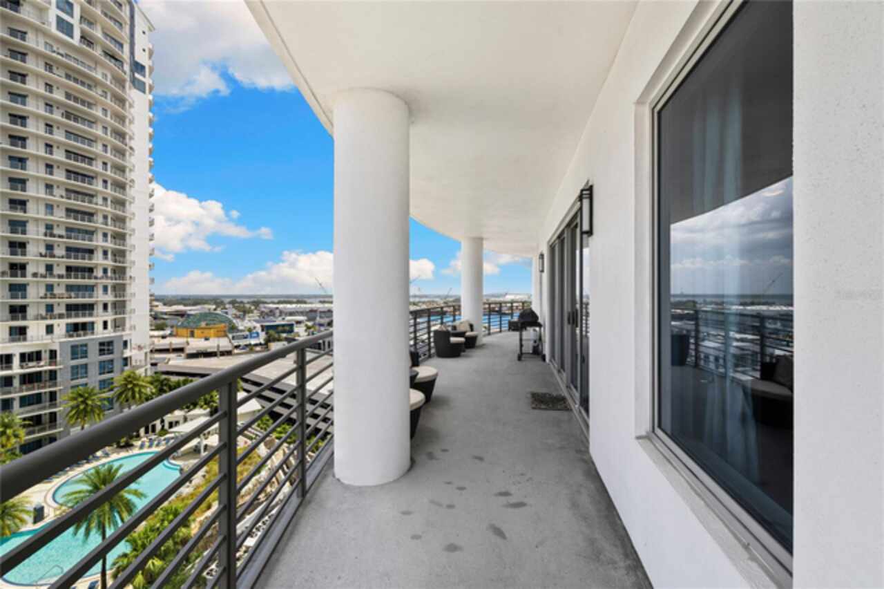 Discover Elevated Living in this Rare and Luxurious Channelside Unit | Perched on the 12th floor of The Towers of Channelside, Tampa’s premier address, this 3-bedroom, 3-bathroom condominium offers views that define coastal elegance. Floor-to-ceiling windows frame panoramas of Downtown Tampa’s skyline, Sparkman Wharf, the serenity of the community pool, cruise ships at the port, and Tampa Bay’s waters. Each room captures a perspective, ensuring moments are steeped in natural beauty, from sunrise to city lights at dusk. The highlight of this residence is its 900-square-foot balcony, an outdoor sanctuary with unobstructed vistas that capture waterfront luxury. This terrace is ideal for morning coffee, evening gatherings, or enjoying the coastal breeze—an al fresco experience unmatched in Tampa’s urban landscape. Inside, hardwood floors shine under light fixtures, each a work of art. These fixtures cast a warm light that enhances the home’s elegance. The kitchen features granite countertops, stainless steel appliances, and ample cabinetry, blending style and function. The open-concept living and dining areas flow smoothly, creating a space for gatherings and entertaining, with views and lighting as backdrops. Safety is ensured with 24-hour security, offering peace of mind. For pet owners, the 5th-floor dog walk provides a convenient space for pets, adding to the building’s appeal. The master suite offers walk-in closets and an ensuite bathroom with dual vanities, a soaking tub, and a glass-enclosed shower, lit by elegant fixtures. The two additional bedrooms, each with a view, provide versatility for family, guests, or an office, complemented by bathrooms that uphold the residence’s standard. Located in Tampa’s waterfront district, this condo is steps from dining, Amalie Arena, the Riverwalk, and the Florida Aquarium. Channelside and Sparkman Wharf offer entertainment, while the Crosstown Expressway provides easy access for professionals. With its views, craftsmanship, light fixtures, safety features, pet amenities, and a balcony that redefines outdoor living, this residence is an opportunity to own a piece of Tampa’s skyline. The combination of interiors, scenery, and location makes this condo a gem. Schedule a private tour to experience waterfront living and envision your life in this home.
