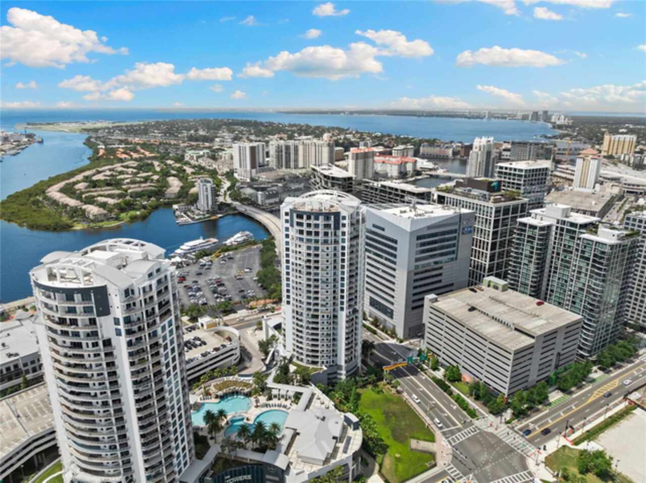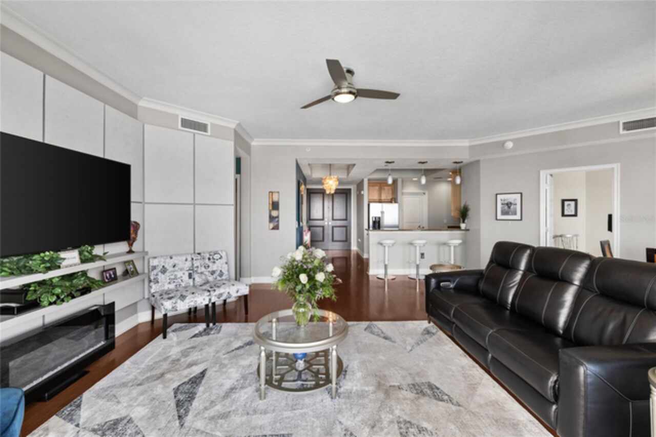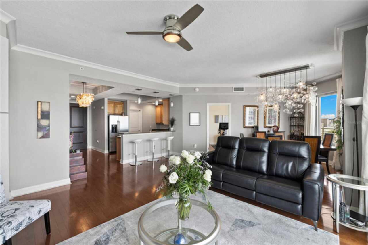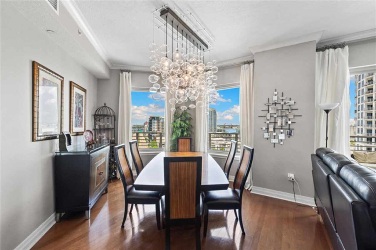 Discover Elevated Living in this Rare and Luxurious Channelside Unit | Perched on the 12th floor of The Towers of Channelside, Tampa’s premier address, this 3-bedroom, 3-bathroom condominium offers views that define coastal elegance. Floor-to-ceiling windows frame panoramas of Downtown Tampa’s skyline, Sparkman Wharf, the serenity of the community pool, cruise ships at the port, and Tampa Bay’s waters. Each room captures a perspective, ensuring moments are steeped in natural beauty, from sunrise to city lights at dusk. The highlight of this residence is its 900-square-foot balcony, an outdoor sanctuary with unobstructed vistas that capture waterfront luxury. This terrace is ideal for morning coffee, evening gatherings, or enjoying the coastal breeze—an al fresco experience unmatched in Tampa’s urban landscape. Inside, hardwood floors shine under light fixtures, each a work of art. These fixtures cast a warm light that enhances the home’s elegance. The kitchen features granite countertops, stainless steel appliances, and ample cabinetry, blending style and function. The open-concept living and dining areas flow smoothly, creating a space for gatherings and entertaining, with views and lighting as backdrops. Safety is ensured with 24-hour security, offering peace of mind. For pet owners, the 5th-floor dog walk provides a convenient space for pets, adding to the building’s appeal. The master suite offers walk-in closets and an ensuite bathroom with dual vanities, a soaking tub, and a glass-enclosed shower, lit by elegant fixtures. The two additional bedrooms, each with a view, provide versatility for family, guests, or an office, complemented by bathrooms that uphold the residence’s standard. Located in Tampa’s waterfront district, this condo is steps from dining, Amalie Arena, the Riverwalk, and the Florida Aquarium. Channelside and Sparkman Wharf offer entertainment, while the Crosstown Expressway provides easy access for professionals. With its views, craftsmanship, light fixtures, safety features, pet amenities, and a balcony that redefines outdoor living, this residence is an opportunity to own a piece of Tampa’s skyline. The combination of interiors, scenery, and location makes this condo a gem. Schedule a private tour to experience waterfront living and envision your life in this home.