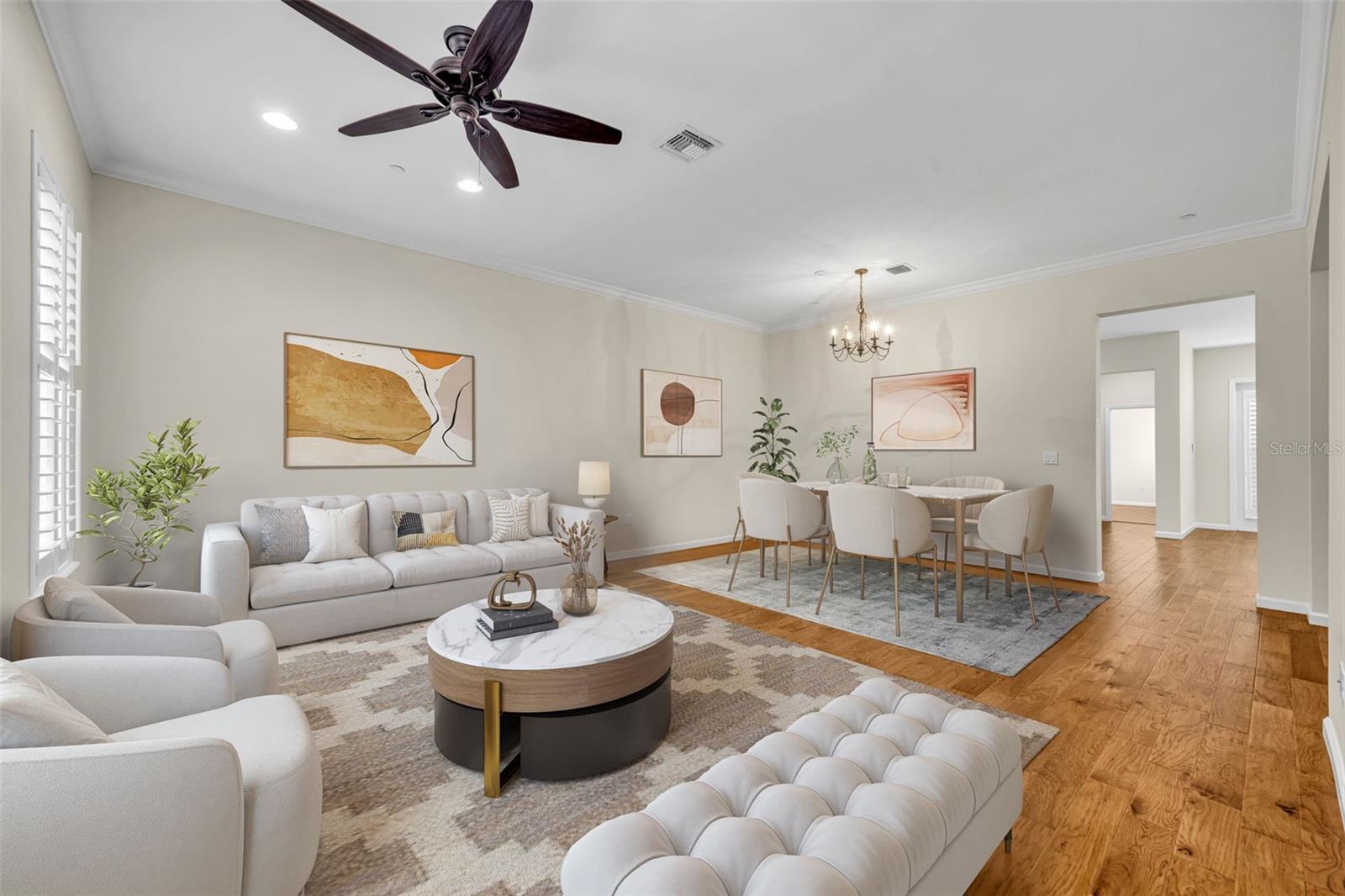 Ceiling Fans(s), Kitchen/Family Room Combo, Living Room/Dining Room Combo, Primary Bedroom Main Floor, Thermostat, Walk-In Closet(s), Window Treatments