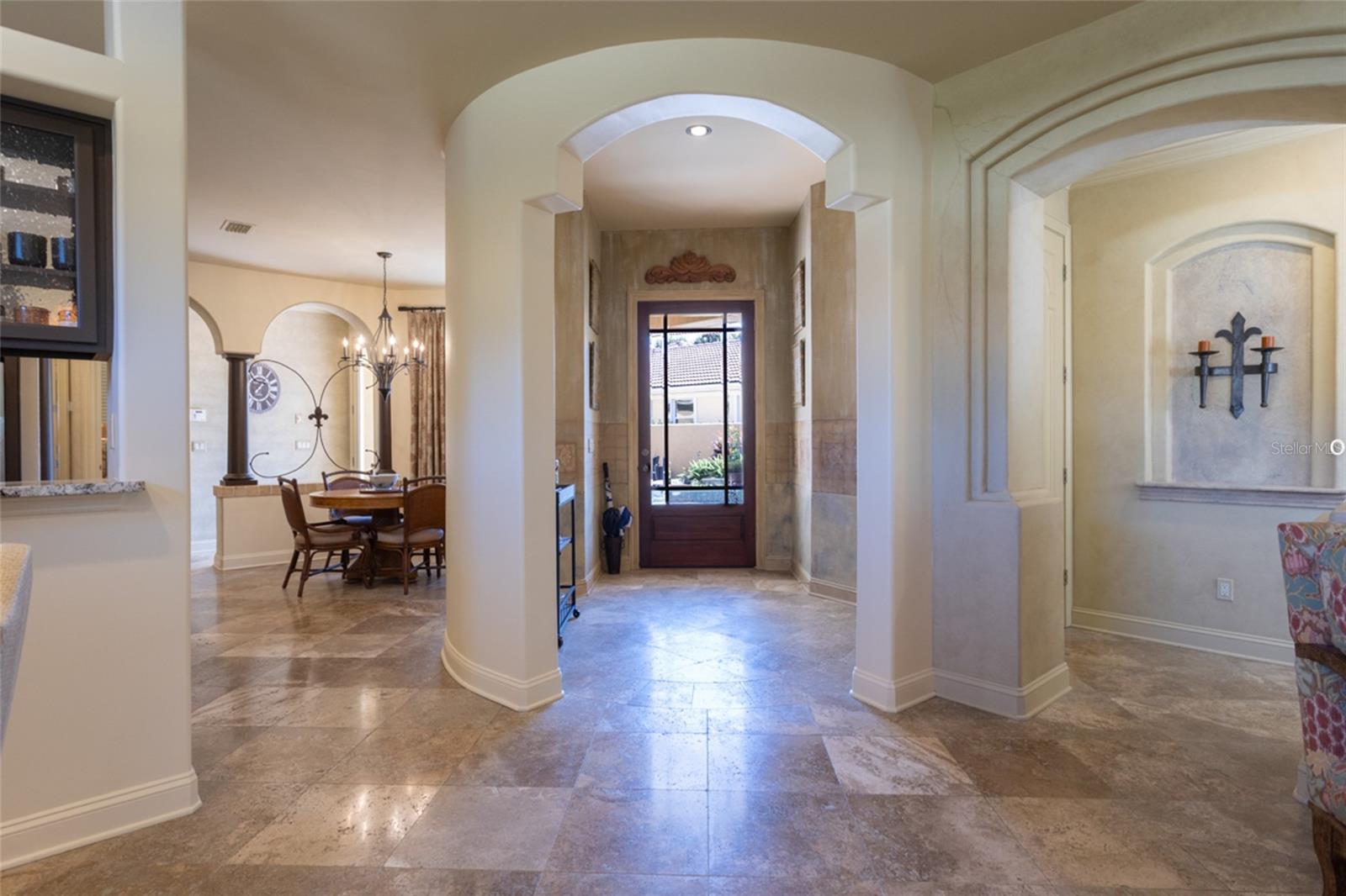 Welcome to your private coastal retreat. Nestled just steps from the Atlantic Ocean, this beautifully maintained single-level residence offers a seamless blend of indoor and outdoor living. A spacious courtyard entry sets the tone, featuring a heated pool surrounded by tropical landscaping. Guests will love their private suite in the pool courtyard, offering both comfort and seclusion. Inside the home, the open sunlit floor plan showcases soaring vaulted ceilings, travertine flooring, and an inviting living space designed for comfort and style. The newly upgraded kitchen shines with granite countertops, stainless steel appliances, and beautifully refreshed cabinetry. The primary suite is a true retreat, featuring engineered wood floors, a luxurious spa-like bathroom with a stand-alone soaking tub, and an extended private sitting area- ideal for an office, exercise room, or a quiet reading space with its own slider to the lanai. A separate air-conditioned storage room adds practicality to the home's thoughtful design. Enjoy Florida's indoor-outdoor lifestyle with a screened lanai offering "picture frame" views of the tranquil lake and golf course, and an additional open brick paver patio shaded by majestic oaks—perfect for watching sunsets or relaxing around a fire pit on cool evenings. This home is move-in ready with recent updates including a second air conditioning unit in 2021, a water heater (2024), and a tiled roof (2019). Additional features include hurricane shutters, and impact glass. The HOA maintains landscape, irrigation, tree-trimming and pest control. Best of all this home includes a transferable Hammock Beach social membership—a $15, 000 value—offered at no cost to the buyer. With its perfect blend of luxury, privacy, and proximity to the ocean, this exceptional home truly has it all. Don't miss the chance to own this rare blend of coastal elegance, modern updates, and Florida charm. Schedule your private tour today!