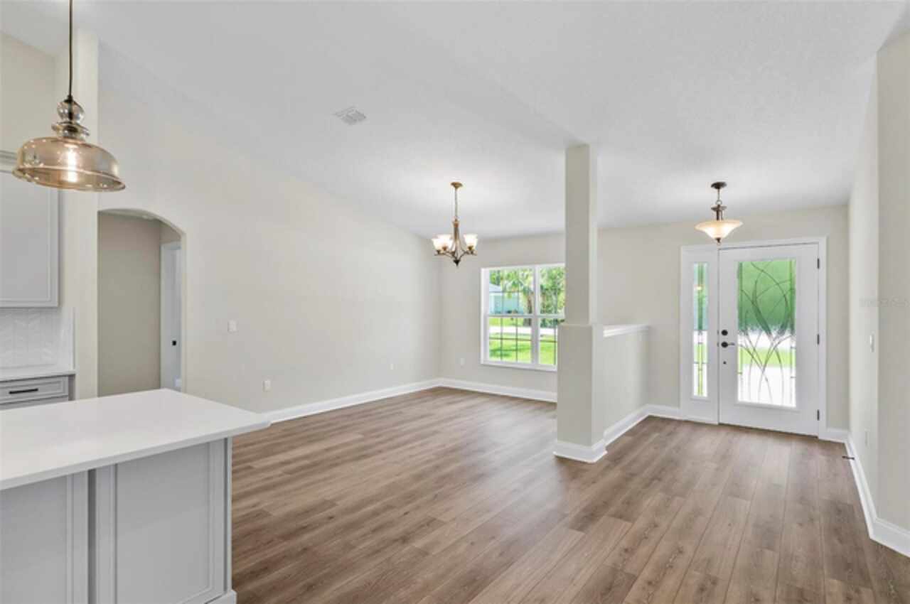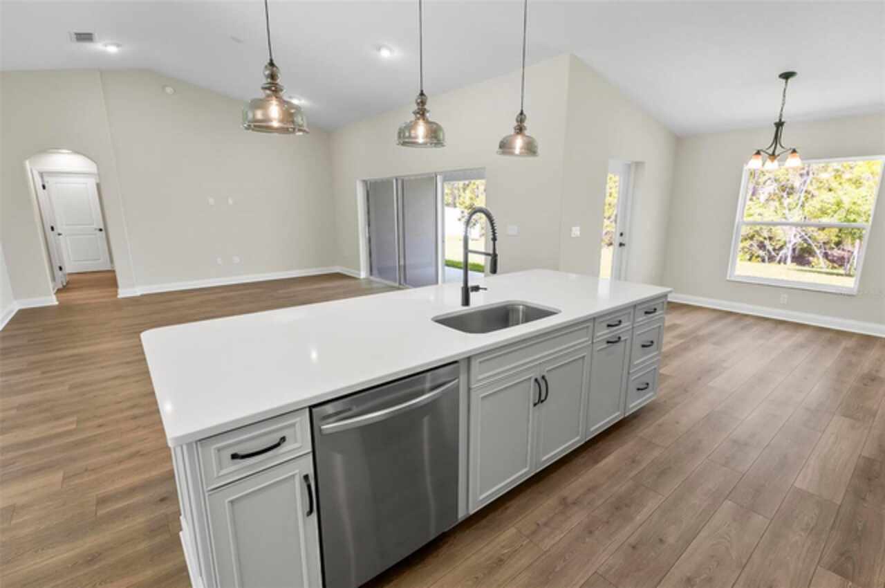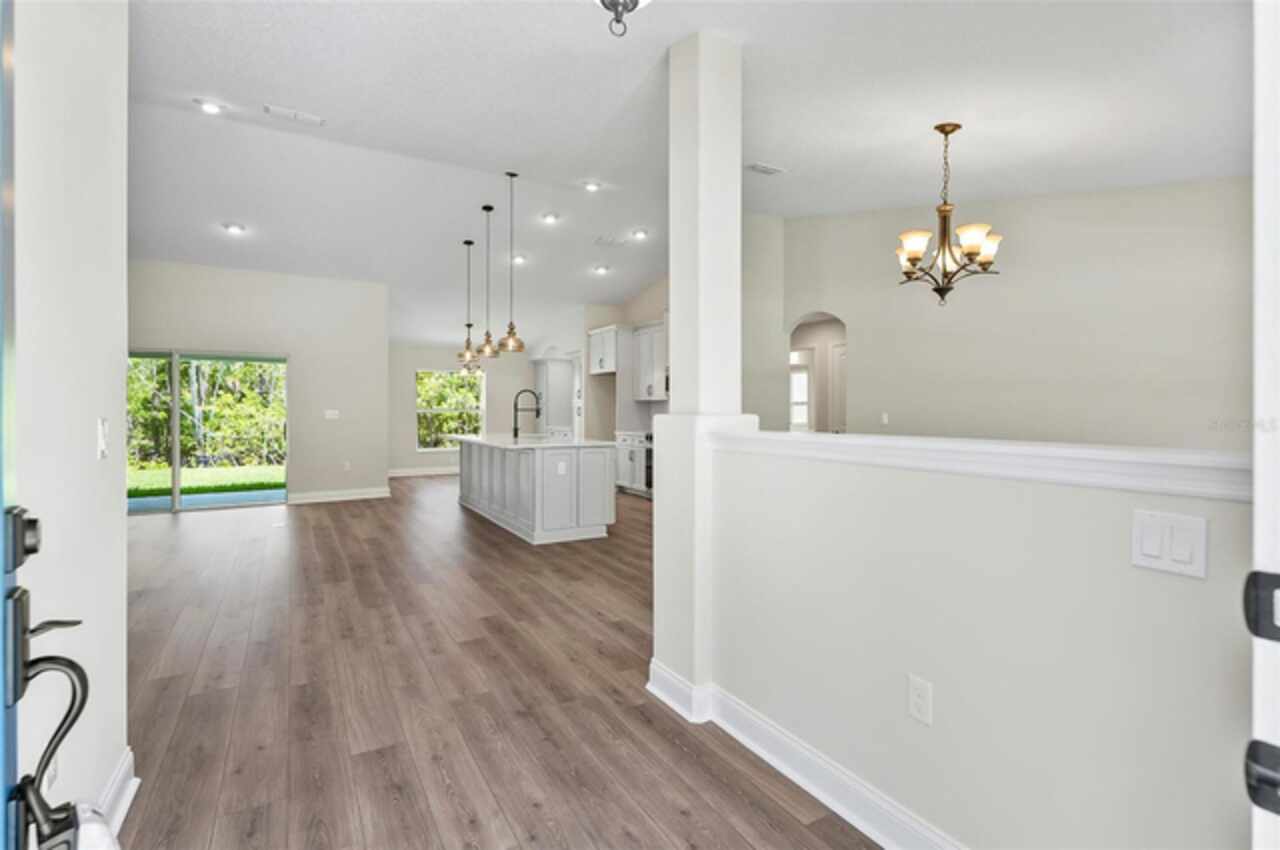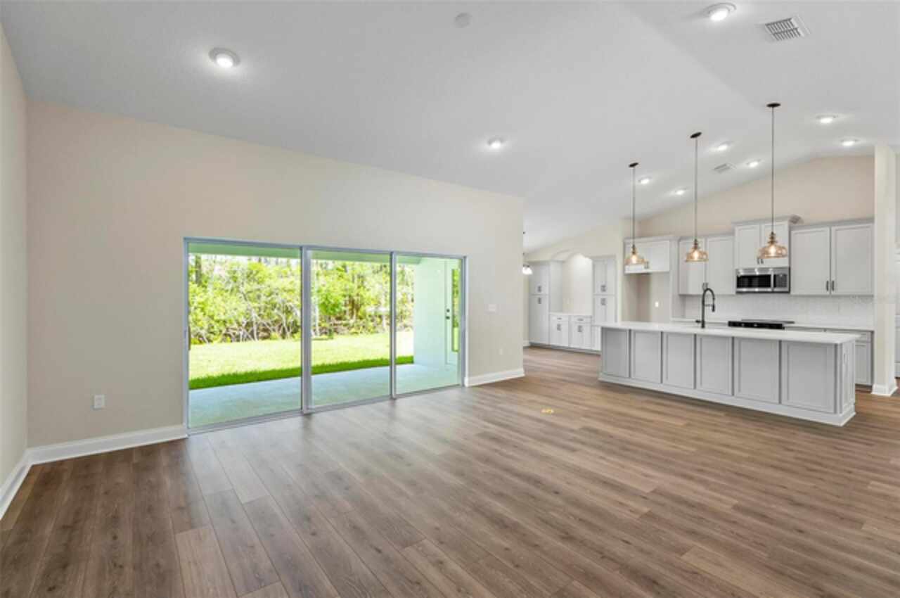 Bring All Offers! Welcome to the enchanting Willow model, a home that beckons with its warm embrace and thoughtful design. As you step inside, you'll be greeted by a spacious open floor plan adorned with arched entryways and Luxury RevWood seamlessly flowing through the main living areas and into the versatile den/flex room. For the culinary enthusiast, the kitchen is a true masterpiece, featuring quartz countertops, pendant lighting casting a gentle glow over the island bar, designer backsplash, and stainless steel appliances . Stylish hardware accents and 42" cabinets adorned with crown molding extend into the adjacent cafe, creating a perfect blend of functionality and elegance. The private owner's suite is a sanctuary of luxury, showcasing a recessed ceiling detail, two oversized walk-in closets for ample storage, a dual sink vanity offering convenience, and a generously sized walk-in shower for a spa-like experience. Step outside through the expanded sliding glass doors onto the lanai, where you can savor the beauty of your backyard with upgraded floritam sod and large 3 car garage. Closing costs paid up to $5000.