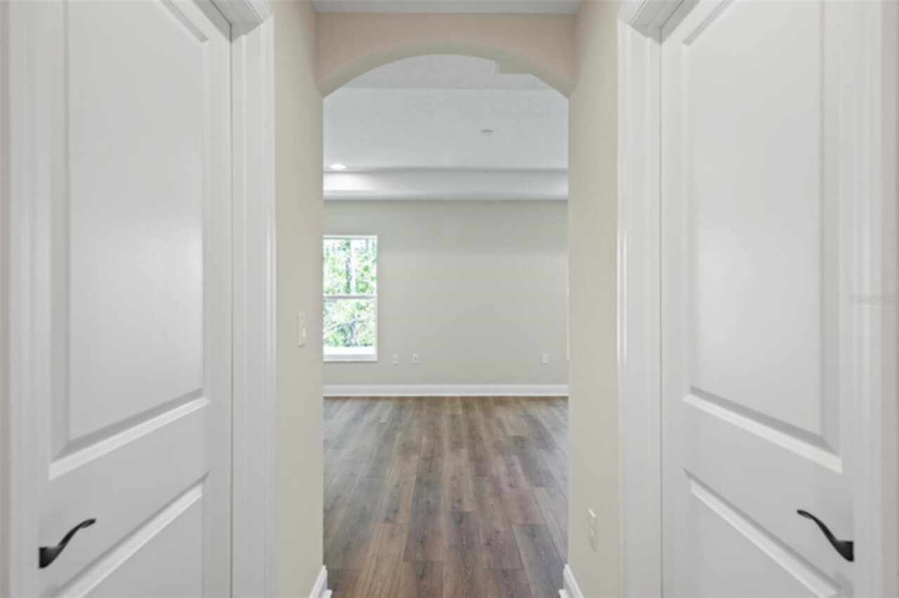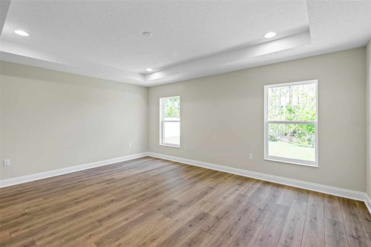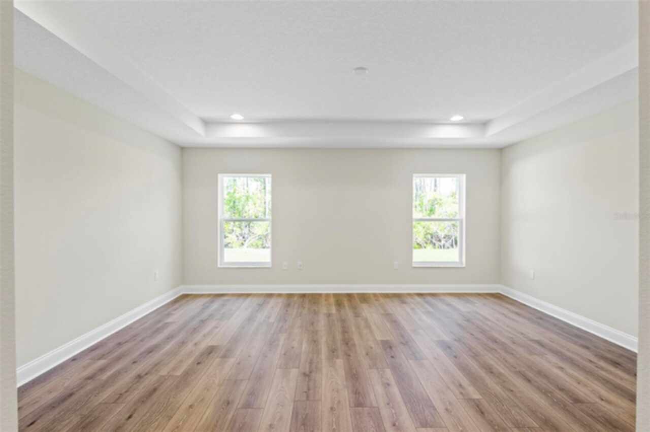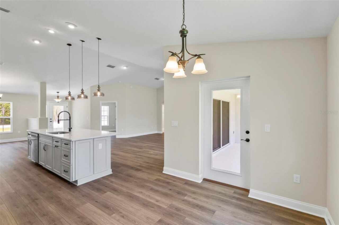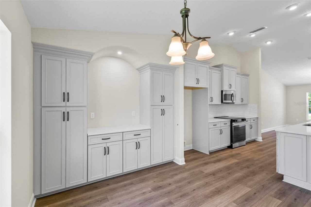 Bring All Offers! Welcome to the enchanting Willow model, a home that beckons with its warm embrace and thoughtful design. As you step inside, you'll be greeted by a spacious open floor plan adorned with arched entryways and Luxury RevWood seamlessly flowing through the main living areas and into the versatile den/flex room. For the culinary enthusiast, the kitchen is a true masterpiece, featuring quartz countertops, pendant lighting casting a gentle glow over the island bar, designer backsplash, and stainless steel appliances . Stylish hardware accents and 42" cabinets adorned with crown molding extend into the adjacent cafe, creating a perfect blend of functionality and elegance. The private owner's suite is a sanctuary of luxury, showcasing a recessed ceiling detail, two oversized walk-in closets for ample storage, a dual sink vanity offering convenience, and a generously sized walk-in shower for a spa-like experience. Step outside through the expanded sliding glass doors onto the lanai, where you can savor the beauty of your backyard with upgraded floritam sod and large 3 car garage. Closing costs paid up to $5000.