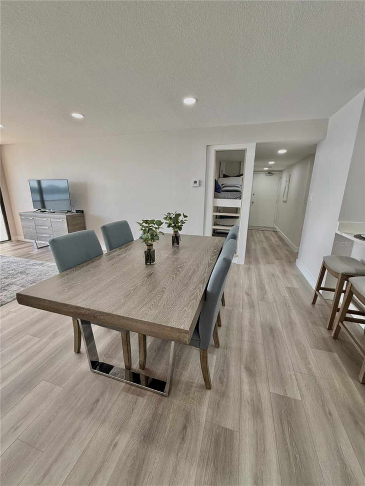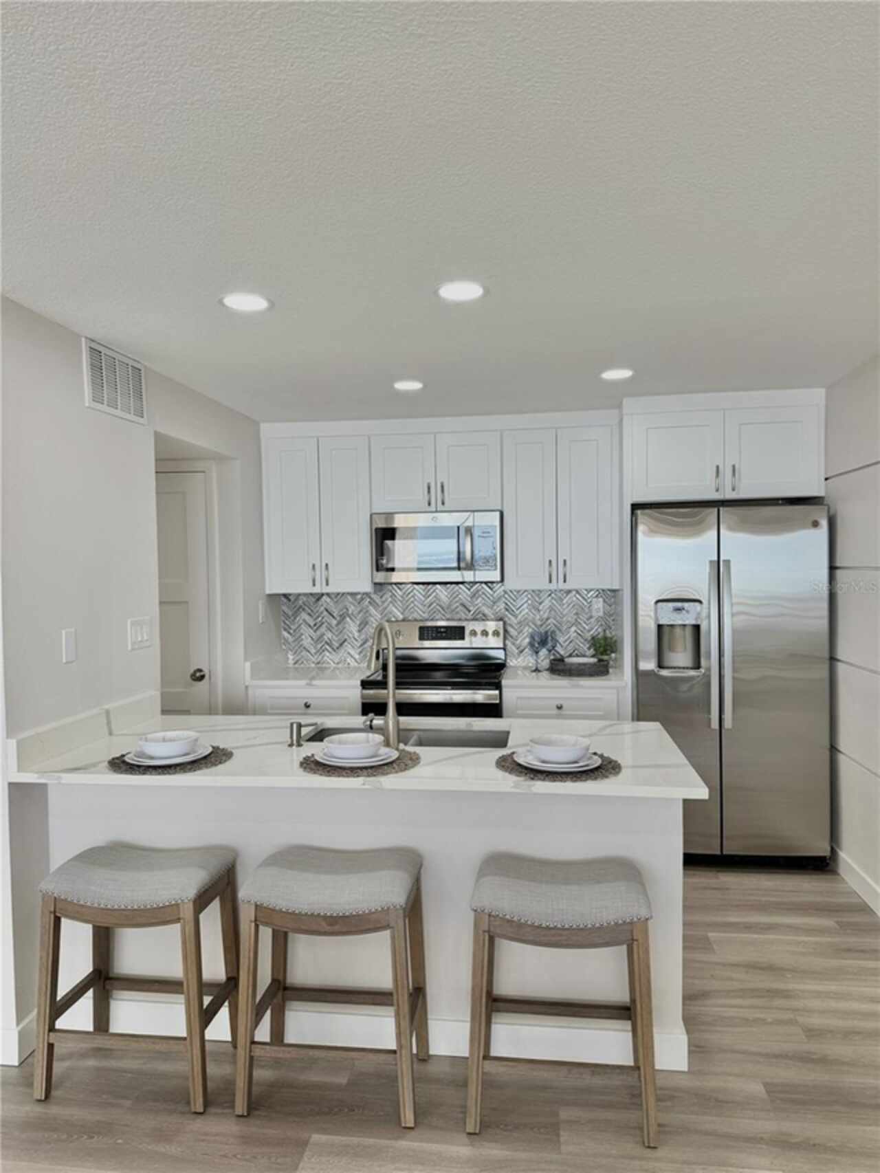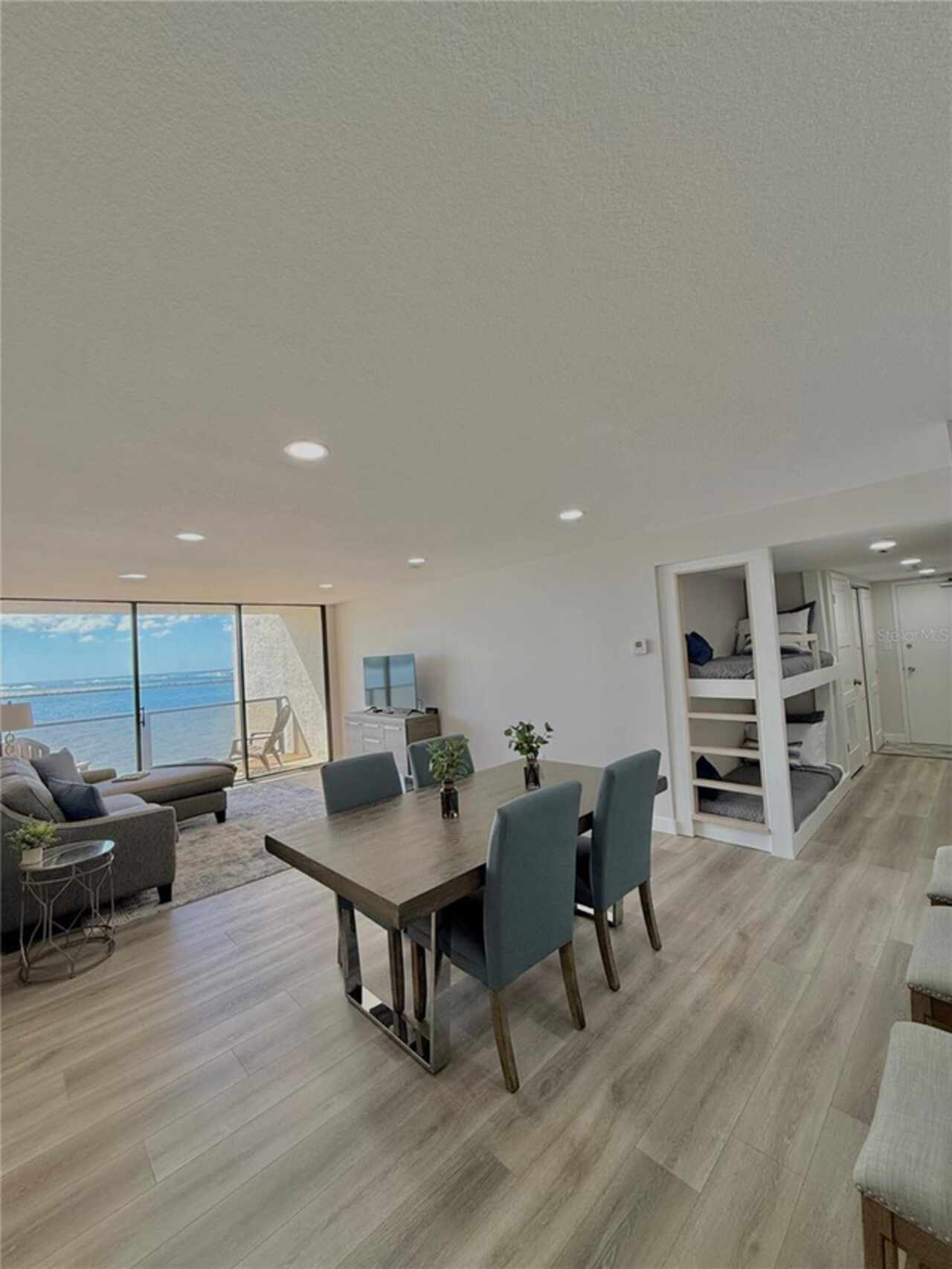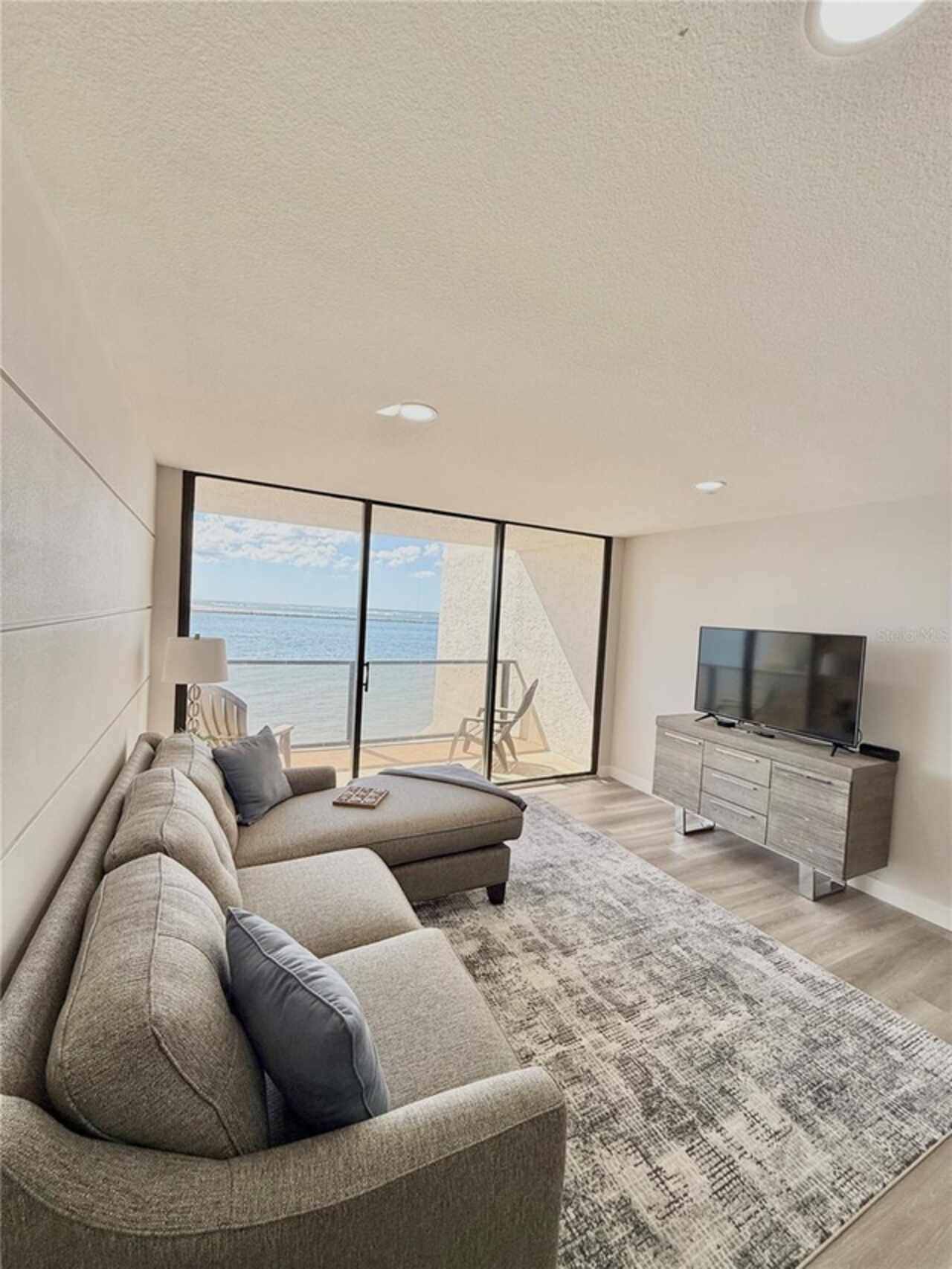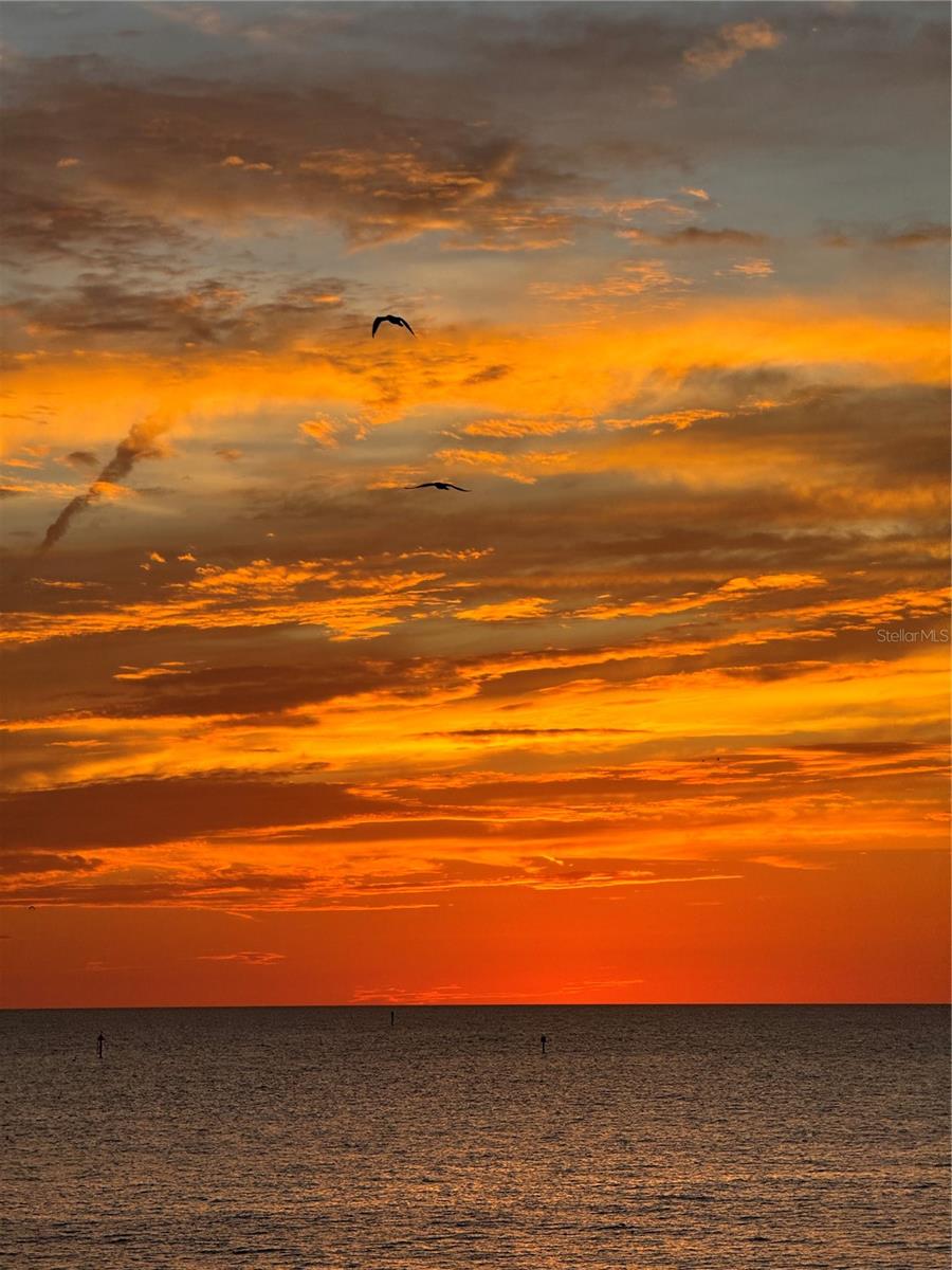 Under contract-accepting backup offers. Amazingly Breathtaking! is the only way to describe the panoramic views of this gorgeous waterfront condo. From the South & West Magnificent Gulf Of Mexico, Sand Key Shoreline and Clearwater Pass, you will spend your time enjoying the picturesque view watching the pirate ships and boaters passing through on their way out to the Gulf. Nestled on the powdery sand of South Clearwater Beach, this 2-bedroom 2 bath Beachfront condo has been updated and exquisitely designed with brand new furnishings. This home features brand new flooring, new ceilings, new lighting, new kitchen cabinets, new quartz countertops, new quartz kitchen sink, new appliances, new closets, new washer and dryer, new bathrooms, new AC, new doors, new paint, new furniture and our favorite, new precious bunk beds for very special guests. A perfect home for relieving stress after a hard day at the beach. Listen and watch the waves crash right below your balcony. You'll see dolphins, manatees, pirate ships, and so much more. The amenities include 24-hour security guards, a private garage parking space, shuffleboard, bike storage, a beautiful pool area and well-equipped fitness center, complete with sauna. A dynamic local scene offers an array of dining, shopping, and entertainment options, all within easy reach. This beachfront home offers a perfect blend of comfort, convenience, and luxury.