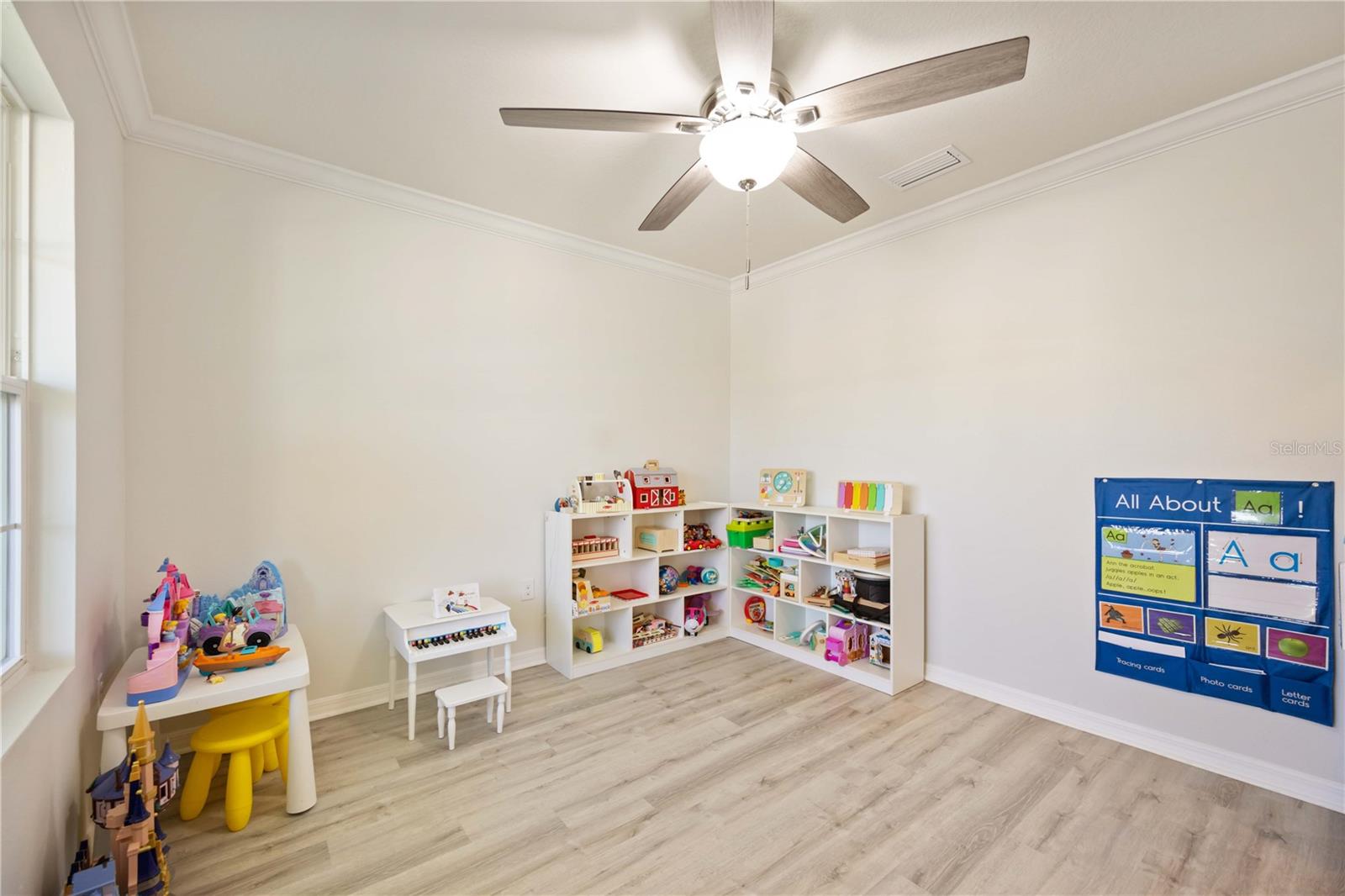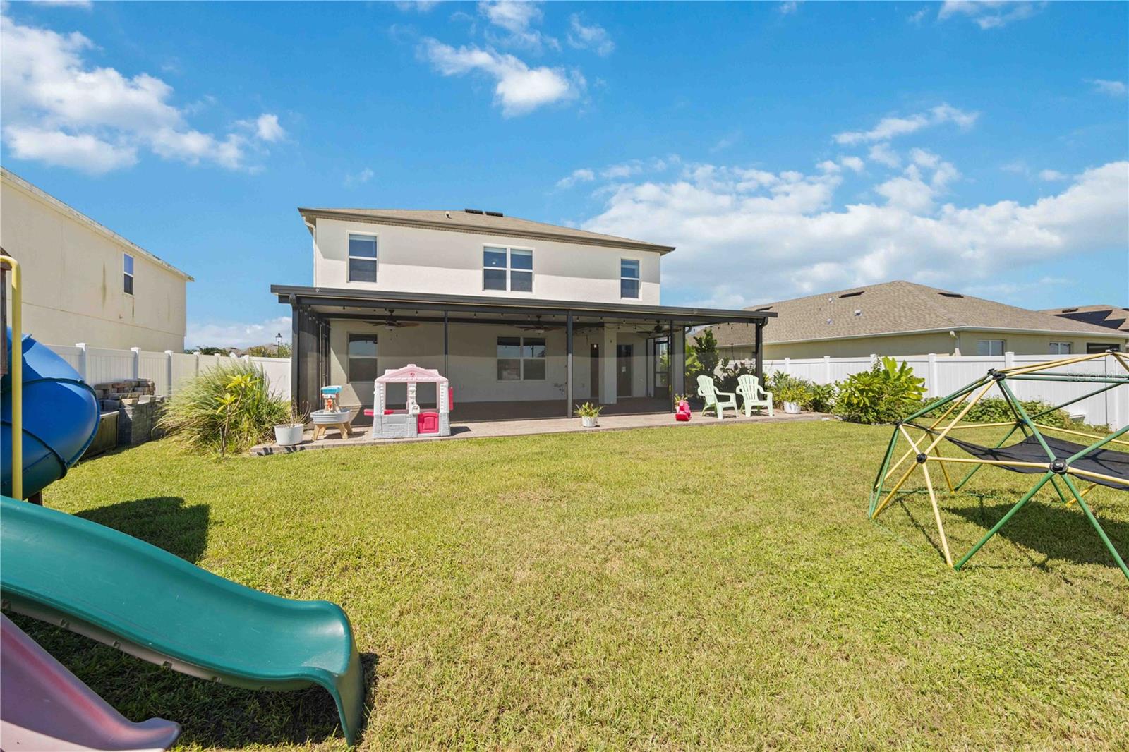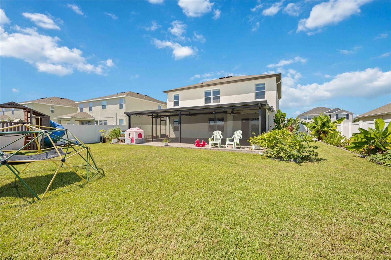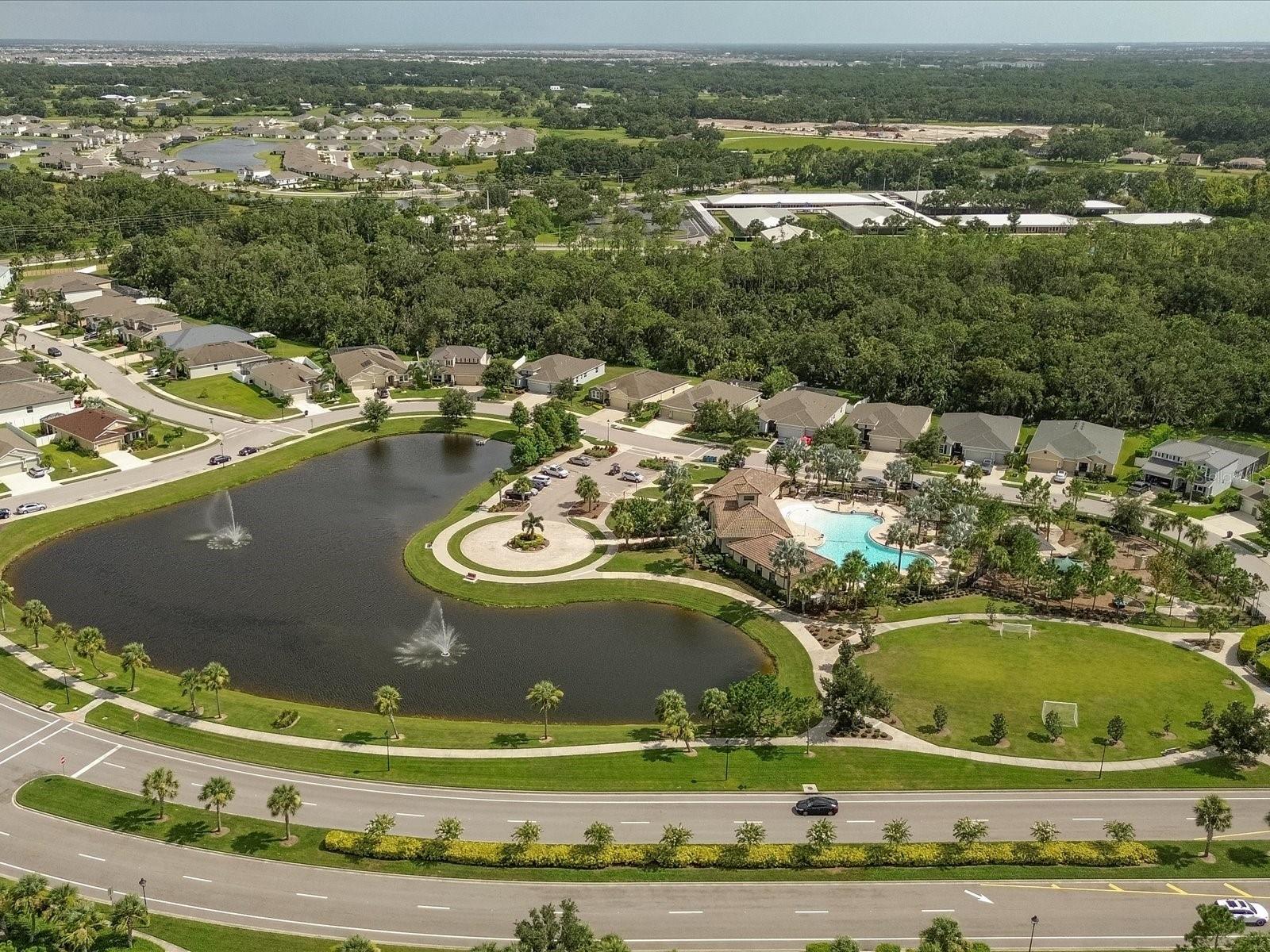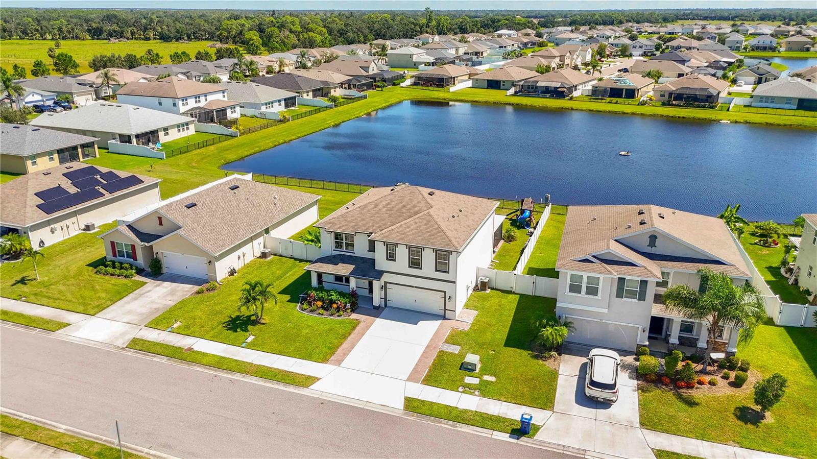 Welcome to your dream home in the peaceful, gated community of Del Tierra, offering NO CDD fees and LOW HOA! This stunning 5-bedroom, 3-bath home features a flex/game room, loft, and open-concept design, all set on a block-on-block construction with a beautiful fountain and large pond view. With over 2, 590 sq. ft. of living space and a huge fully fenced backyard, this property is perfect for entertaining or simply relaxing. Enjoy your oversized covered lanai complete with three ceiling fans...while taking in breathtaking Florida sunrises. Recent Updates Include: Fresh interior and exterior paint. New kitchen cabinets and a newer dishwasher. New toilets and exhaust fans in all bathrooms. Hyper filter, and new coils for improved air quality. 30-amp breaker for generator hookup. Inside, you’ll be welcomed with style! Crown molding on the first floor with luxury vinyl flooring throughout, NO CARPET, and a thoughtfully designed open kitchen featuring stainless steel appliances, granite countertops, a tile backsplash, and new cabinetry. A flex/game room sits just off the entry, while a guest bedroom and full bath provide convenience on the main level. Upstairs, the oversized master suite boasts dual vanities with granite countertops, a stand-up shower, and two separate walk-in closets. A great-sized laundry room is located on the second floor. Three additional bedrooms, a full bath, and a loft complete the second floor. Outside, you’ll appreciate rain gutters, an extended paver driveway for extra parking, and a charming front covered porch, which is the perfect spot to unwind and enjoy spectacular sunsets. Reclaimed water Irrigation on the front and side of the home. Minutes to SR-64, I-75, and Ft. Hamer Bridge. Close to Gene Witt Elementary (bike ride away). Nearby shopping includes Costco and many more! Residents of Del Tierra enjoy access to a resort-style pool, fitness center, and gated entry, all while being surrounded by nature and tranquility. This home offers it all...stylish design, tasteful upgrades, and a prime location. Don’t miss your chance to make it yours!