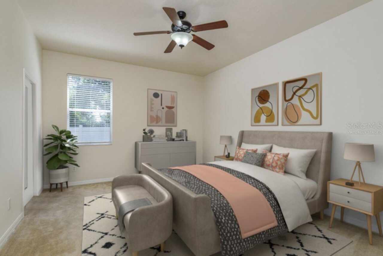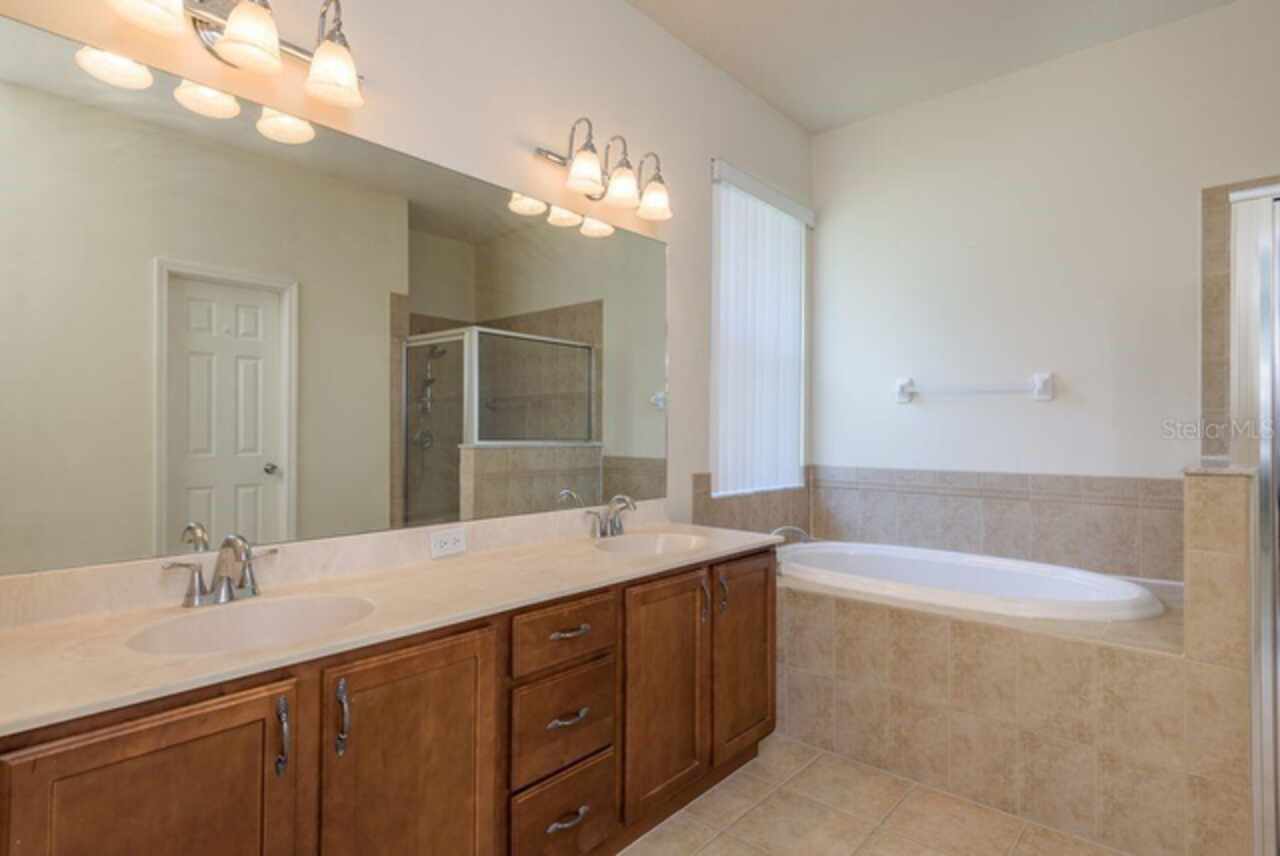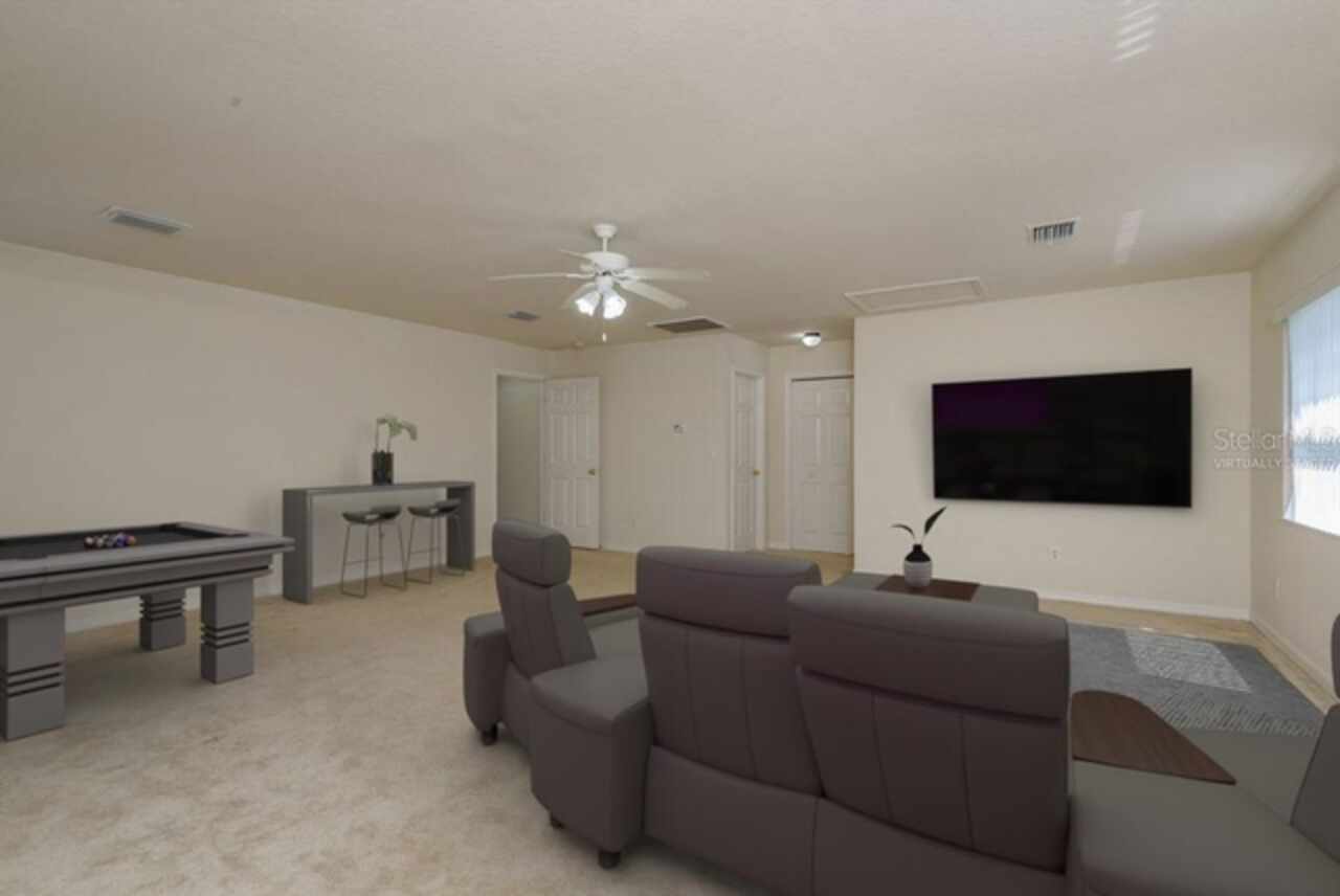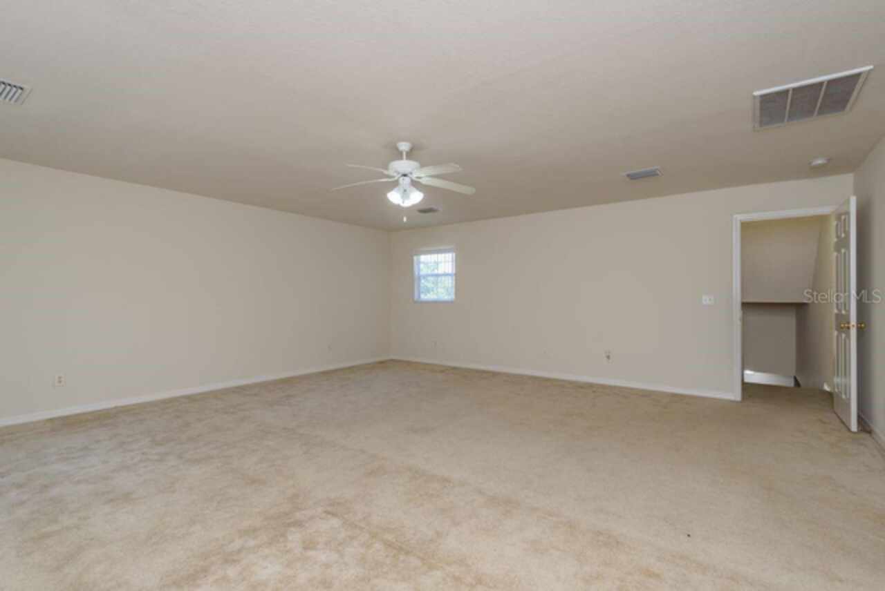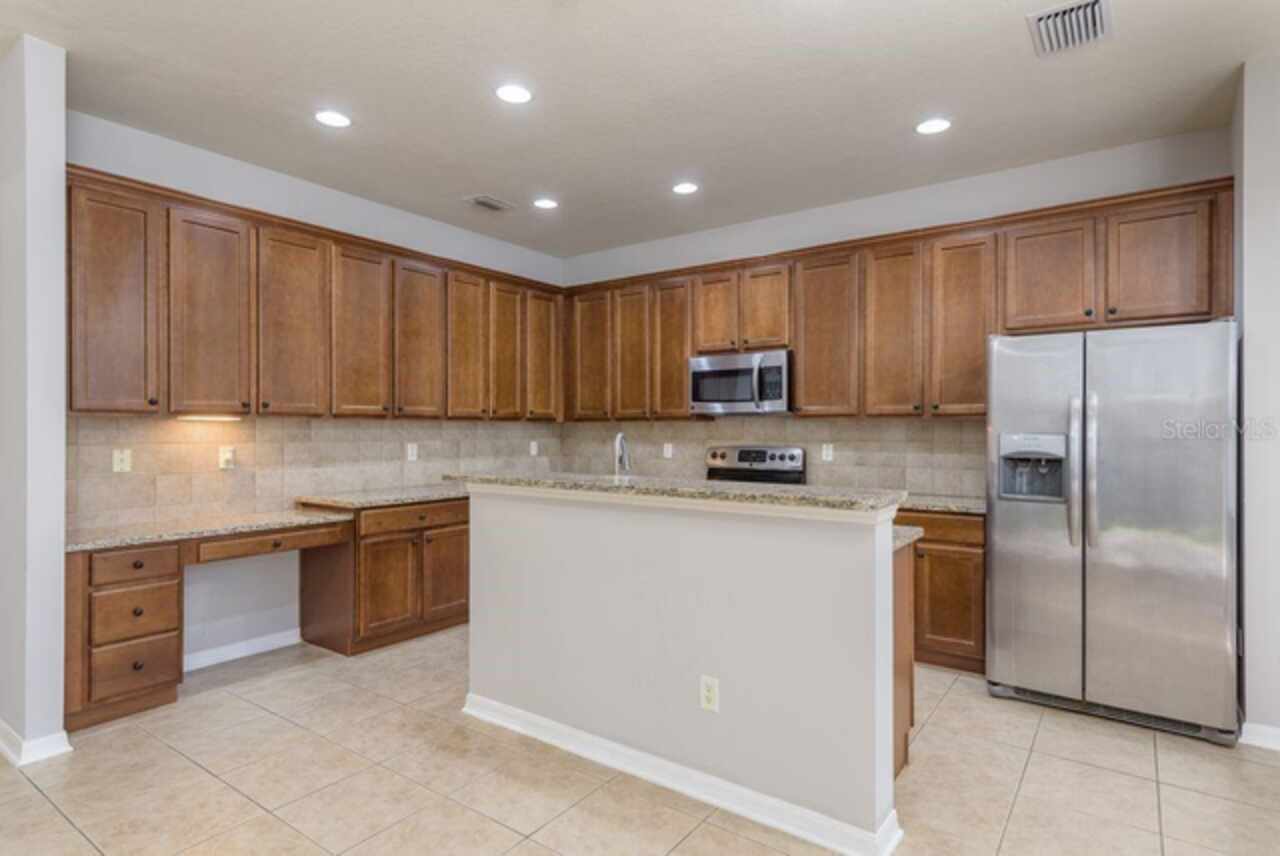 One or more photo(s) has been virtually staged. Welcome to Your Spacious Florida Retreat in Brookfield Estates! This beautifully maintained 4-bedroom, 3-bath home offers a perfect blend of comfort and functionality. Step inside to discover a light-filled interior with soaring ceilings, tile flooring in main living areas, and neutral paint throughout. The formal living and dining rooms greet you with elegance and flow effortlessly into the expansive kitchen—featuring GRANITE COUNTERTOPS, STAINLESS STEEL APPLIANCES, rich WOOD CABINETRY, and a LARGE BREAKFAST BAR, perfect for gatherings. The kitchen overlooks the inviting living room, ideal for entertaining or relaxing nights in. A split-bedroom floor plan provides privacy, with the oversized primary suite offering a TRAY CEILING, DUAL VANITIES, a SOAKING TUB, SEPARATE SHOWER, and a LARGE WALK-IN CLOSET. The massive yet versatile family room can serve as a 5TH BEDROOM, ENTERTAINMENT SPACE, or an ENORMOUS MAN CAVE, providing endless options for customization. The property also features an OVERSIZED GARAGE, perfect for all your toys and additional storage. Three additional bedrooms have plenty of flexibility for guests, a home office, or playroom. Enjoy indoor-outdoor living with glass doors leading to the backyard—ready for your personal touch! The INSIDE LAUNDRY ROOM includes built-in shelving. Located on a quiet street with mature landscaping, this home is just minutes from shopping, dining, parks, and top-rated schools. Don't miss this opportunity to own a move-in ready home in a desirable WESLEY CHAPEL community—schedule your private tour today! 13-month PREMIUM HOME WARRANTY will be provided by the Listing Agent from Choice Home Warranty valued at $660.