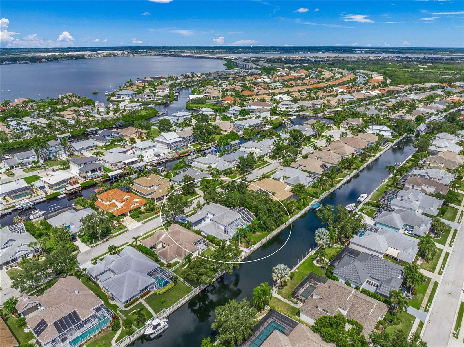 Don't miss this expansive two-story FRESHWATER CANAL FRONT home on an OVER SIZED LOT in the sought after BOATING community of the Inlets at Riverdale. Boaters, dock your boat(s) right out back with OVER 100 FEET OF CANAL FRONTAGE! Electricity and water at the dock - the only thing missing is your boat! You will certainly be welcomed home on picturesque Blue Marlin Drive; a charming CUL DE SAC street with sidewalks and gas lit lamp posts. Curb appeal meets practicality with a large porte-cochere providing additional covered parking and shelter from sun & rain. The tranquil outdoor oasis overlooking the canal features a HEATED 44 foot LAP POOL and SPA, outdoor shower, and covered lanai area. New pebble tec surface and tile installation was completed in 2023 along with new pool deck pavers. Pool equipment includes a Hayward gas heater (2023), Hayward pool pump (2023) and new filter (2025). Roof (2017). This well designed light and bright floor plan w/ soaring ceilings offers tropical canal views throughout the home. The centrally located kitchen has LG stainless steel appliances, quartz countertops, under cabinet LED lighting, breakfast bar, & generous cabinet space. Enjoy your coffee while taking in mature landscaping & nature views from the kitchen's breakfast area. This OVERSIZED LOT (14, 810 SF) provides additional space and privacy to the east. Picture perfect water views meet the eye upon entering the owner's suite through double doors. The first floor owner's suite layout provides space for a comfortable seating area. Dual walk in closets, private water closet, Jacuzzi soaking tub, walk in shower & split vanities w/make up vanity seating provide a well thought out retreat. The office/den with built in desk and book cases is conveniently located next to the owner's suite. There is an air conditioned bonus room (w/water views!) off the back of the garage that current owner's enjoyed as an exercise room. Make this bonus room space what you want it to be! Upstairs, an open balcony overlooks the main living area below. Here on the second floor you will find a large loft perfect for a media or game room. Off of the loft area are three bedrooms and two well appointed full bathrooms. One of the bedrooms has its own ensuite bathroom and the other two bedrooms share a Jack-and-Jill bathroom. Also off of the loft is a very special balcony with stunning views overlooking the canal and pool/spa oasis below. The balcony is another of the property's vantage points to relax and enjoy beautiful surroundings. There is plenty of space for storage, jet skis and other toys in this 3 car tandem garage with utility sink. Plenty closet space including under stairs storage. The laundry room has built in overhead cabinets. Additional home improvements include NEW Rheem water heater (September 2025), new 1st floor HVAC (2024), exterior painted 2024, new back flow devices (2024). This beautifully maintained picturesque waterfront boating community offers tennis, pickleball, social clubs, playground area, canoe & kayak launch, and nature trails. The location is centrally located with close proximity to I-75, major airports, shopping, fine dining, downtown Bradenton Riverwalk & beautiful gulf coast beaches. Experience the boating lifestyle at The Inlets; a premier boating community with direct canal access to the Manatee River & Gulf of America. Explore marinas, restaurants, islands, & beautiful coast line by land or sea! Reasonable HOA fees & NO CDD FEES!