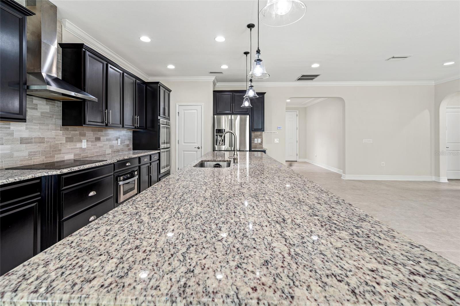 Welcome to this beautifully upgraded 4-bedroom, 3-bathroom CalAtlantic Andover model located in the highly sought-after gated neighborhood within Seven Oaks. Boasting resort-style amenities, this vibrant community offers something for everyone — from tennis and pickleball courts to a sparkling resort pool, lap pool, splash pad, clubhouse, playgrounds, parks, and year-round neighborhood events. All with low HOA dues of just $133/year! Sitting on one of the larger lots in the community and spanning 3, 825 square feet under roof, this spacious home features an open-concept layout with a 3-car garage, fenced backyard, and fresh interior paint throughout. Inside, you're greeted by a formal dining room (flexible as a sitting room or den) and a custom accent wood wall that adds warmth and character. The heart of the home is the oversized kitchen—a dream for entertainers and home chefs alike. Highlights include a new cooktop, 11-foot island, abundant cabinetry, farmhouse/apron sink, built-in double ovens, walk-in pantry, stainless steel range hood, upgraded pendant lighting, and an inviting eat-in dining area that flows seamlessly into the large living room. The first floor offers a private guest suite with a full bath, perfect for visitors or multi-generational living. Upstairs, the master suite features walk-in closets, a spa-like bath with garden tub, upgraded tile, and his-and-hers vanities. Two additional bedrooms, a full bathroom, and a spacious loft—easily convertible to a 5th bedroom per builder plans—complete the second floor. Located just minutes from I-275, top-rated schools, hospitals, shopping, and dining, this home offers comfort, convenience, and community all in one. Don't miss the opportunity to live in one of the area's most amenity-rich neighborhoods. Schedule your private showing today! $1, 848.66 in CDD fees are included in the property taxes.