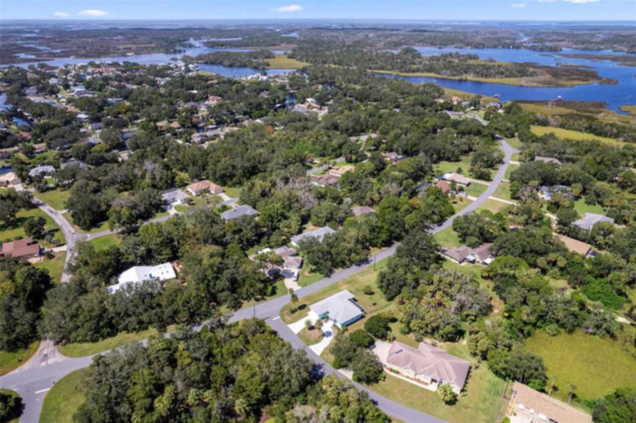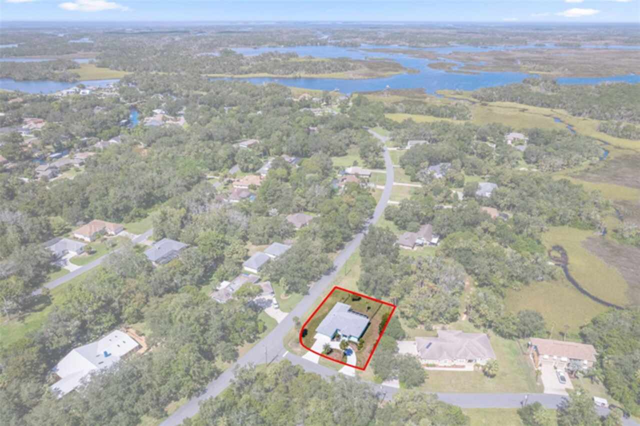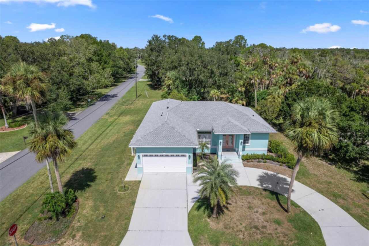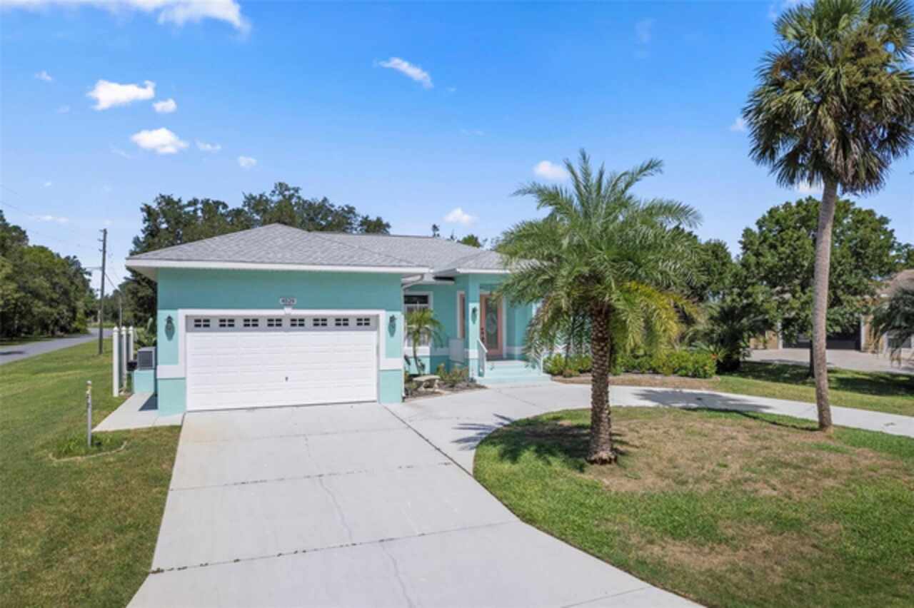 Welcome to Your Tropical Oasis! Step into paradise with this stunning 3-bedroom, 2-bath home nestled in the heart of Riverhaven Village, a charming waterfront community that exudes old Florida charm. From the moment you arrive, you'll be captivated by the lush palm trees & meticulously landscaped corner lot, with a nice circular driveway, creating an inviting ambiance that sets this home apart. Best of all, this nicely elevated home has never flooded inside! As you approach the property, the coastal accented French doors & vibrant exterior paint is reminiscent of Key West. Prepare to be impressed by a perfect floor plan that caters to both relaxation and entertainment. High ceilings soar throughout, creating an airy, open feel that invites light and warmth into every corner. The heart of the home features a gorgeous kitchen that is truly a chef's delight, boasting sleek granite countertops, a convenient eat-in bar, and a cozy nook perfect for casual dining. With both a spacious living room & family room, you'll have plenty of room to host friends & family. A bay window & sliders flow across the back of the home offering incredible views of the fully fenced backyard & fill the space with natural light. Retreat to your luxurious master suite, featuring a double door entry & a slider that opens to the screened patio. Boasting two generous walk-in closets & a spa-like bathroom, which is complete with double sinks, tiled walk-in shower & a jetted tub for ultimate relaxation. The ample-sized guest bedrooms, offers plenty of flexibility for an office or craft space. The guest bathroom leads directly to the screened patio, a perfect access for your future pool. Every detail has been considered, from plantation shutters, coastal lighting & drapes to a garage with extra tall ceilings & additional ceiling storage -this home truly has it all! The community enhances your lifestyle offering secure storage for your boats, trailers, & RV’s, plus the optional social membership that grants you access to a fabulous clubhouse, an Olympic-sized pool, pickleball & tennis courts, social activities, & dog park. With a brand-new roof installed in 2022 & a new AC system from 2019, you can move in worry-free and start enjoying this home. Nestled in a picturesque community surrounded by lush state-owned conservation land, this stunning residence is a true sanctuary. Just 5 miles by boat from the Gulf of Mexico & minutes from the springs, local marinas & restaurants -your days can be filled with sun and seaside adventures. Don't miss the chance to call this home your own! Schedule your private showing today and step into a world of comfort, community, and coastal living. Your paradise awaits!